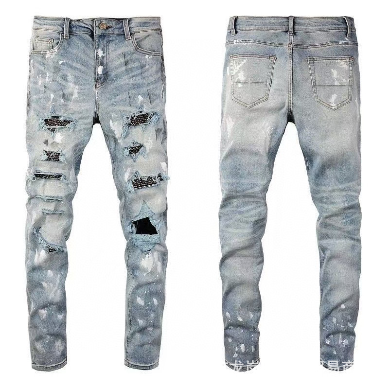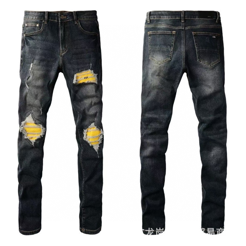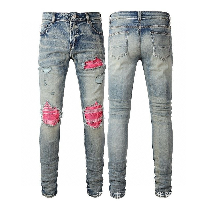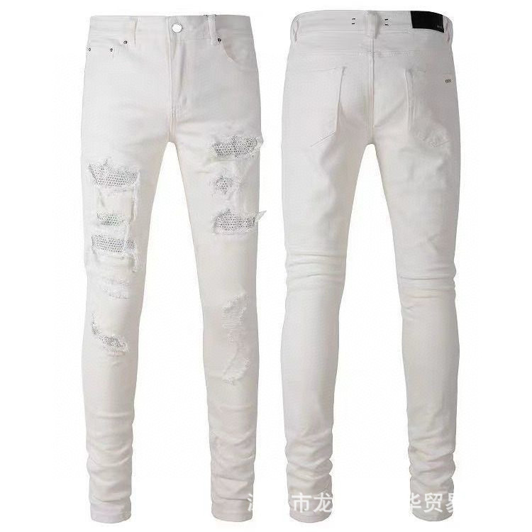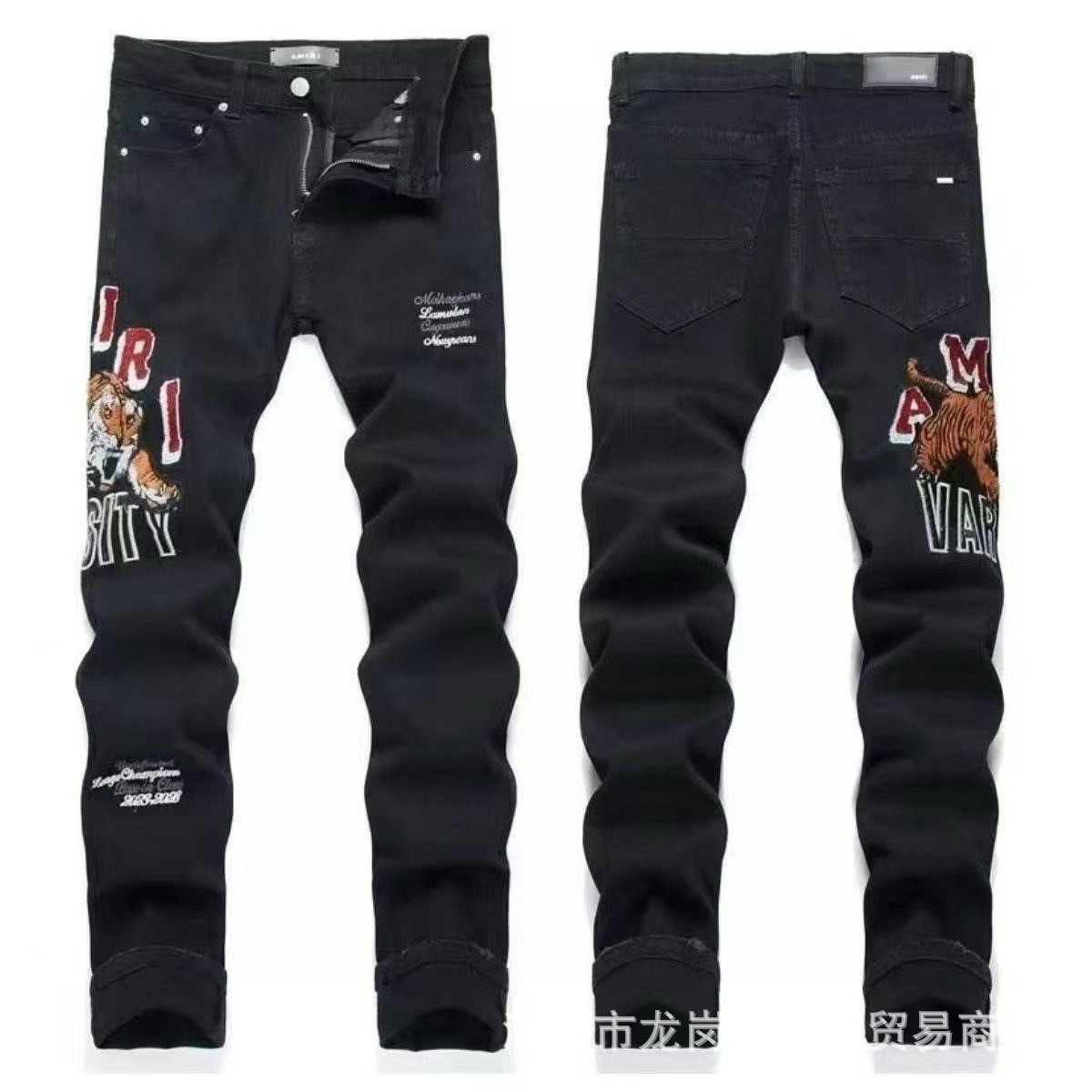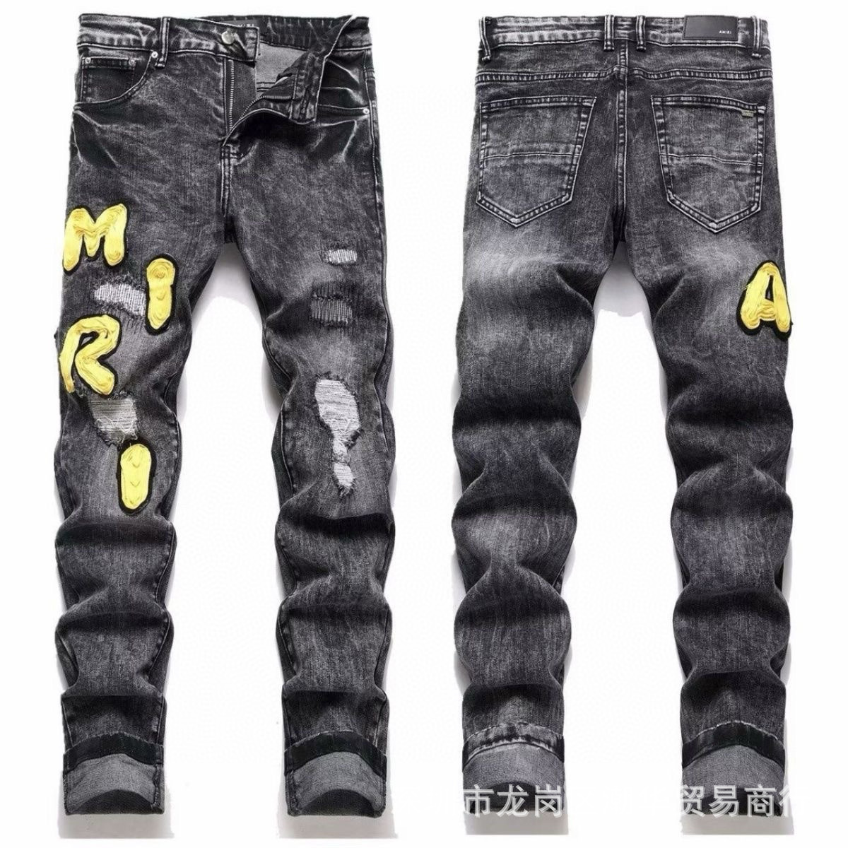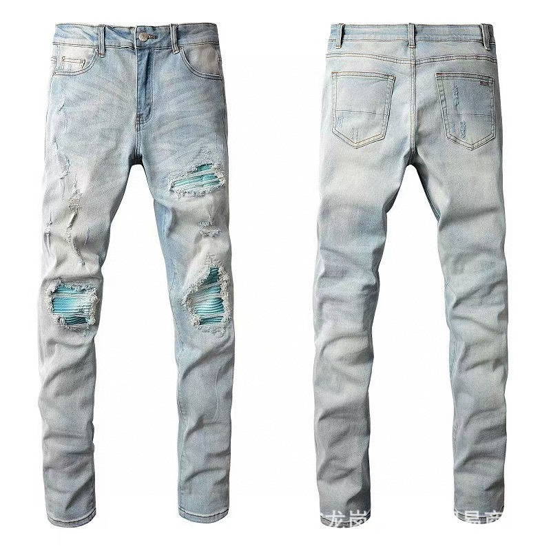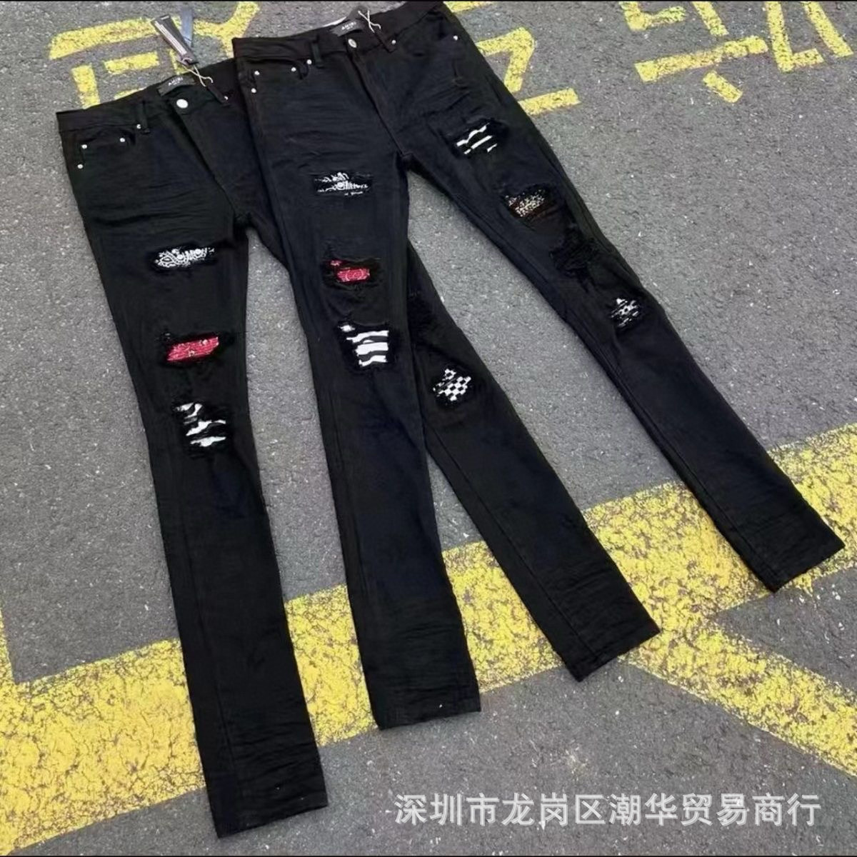 AM 대외 무역 남성용 찢어진 자수 청바지 오각별 트렌디 스트레치 슬림핏 바지 하이 엔드 캐주얼 남성 바지스토어 가기