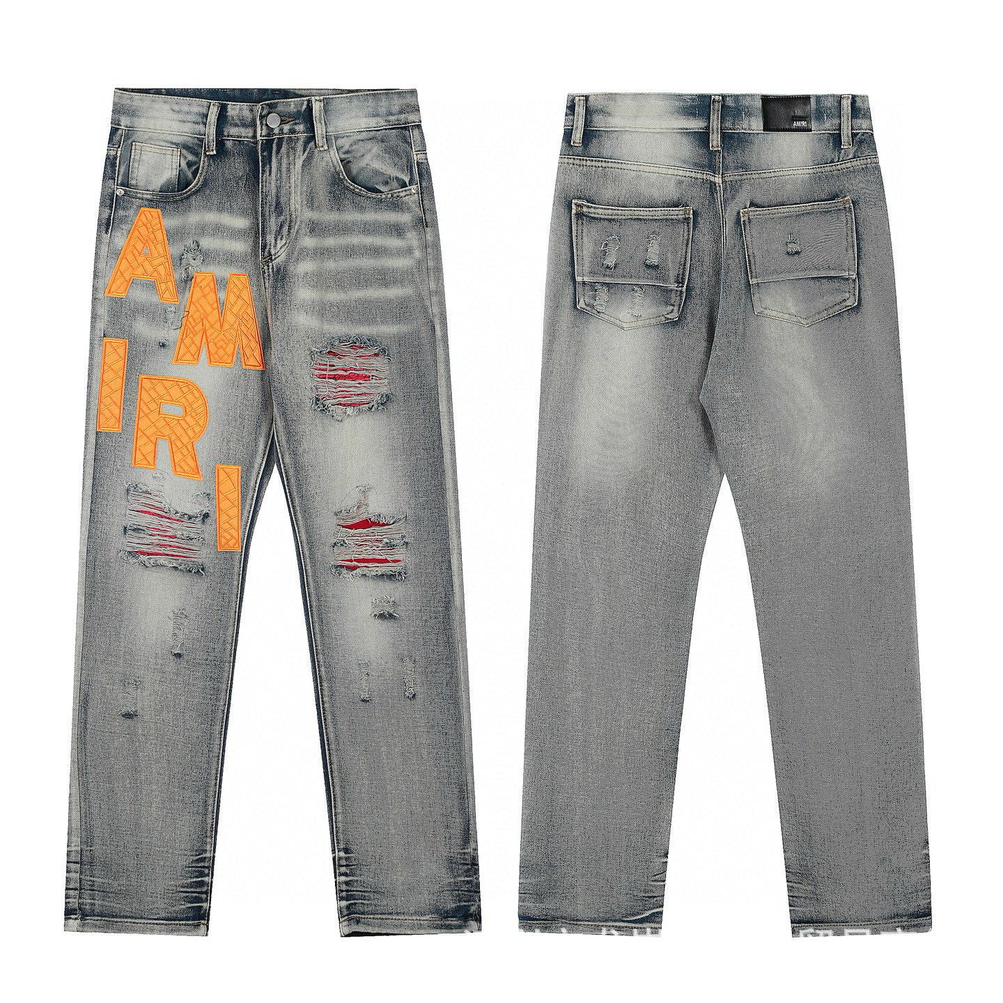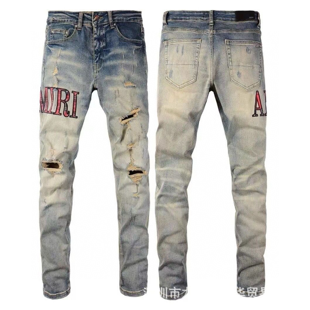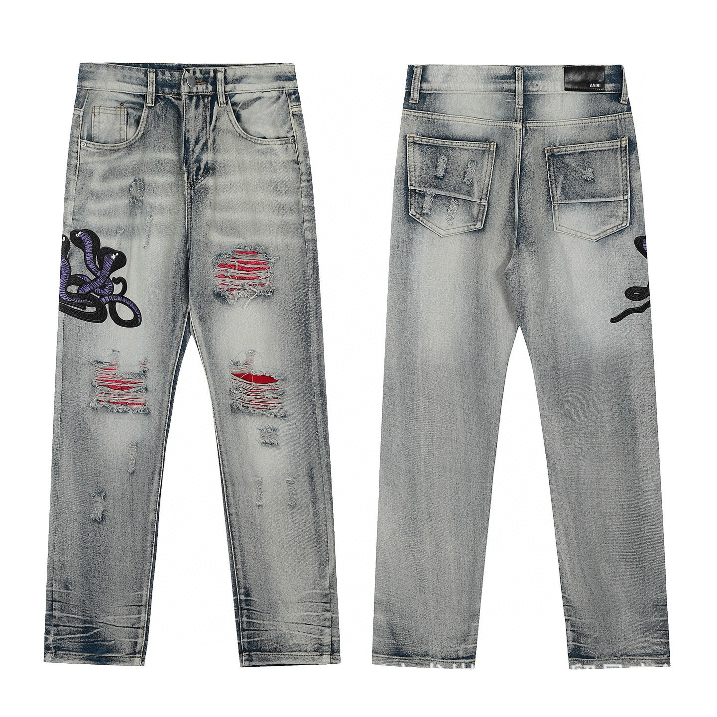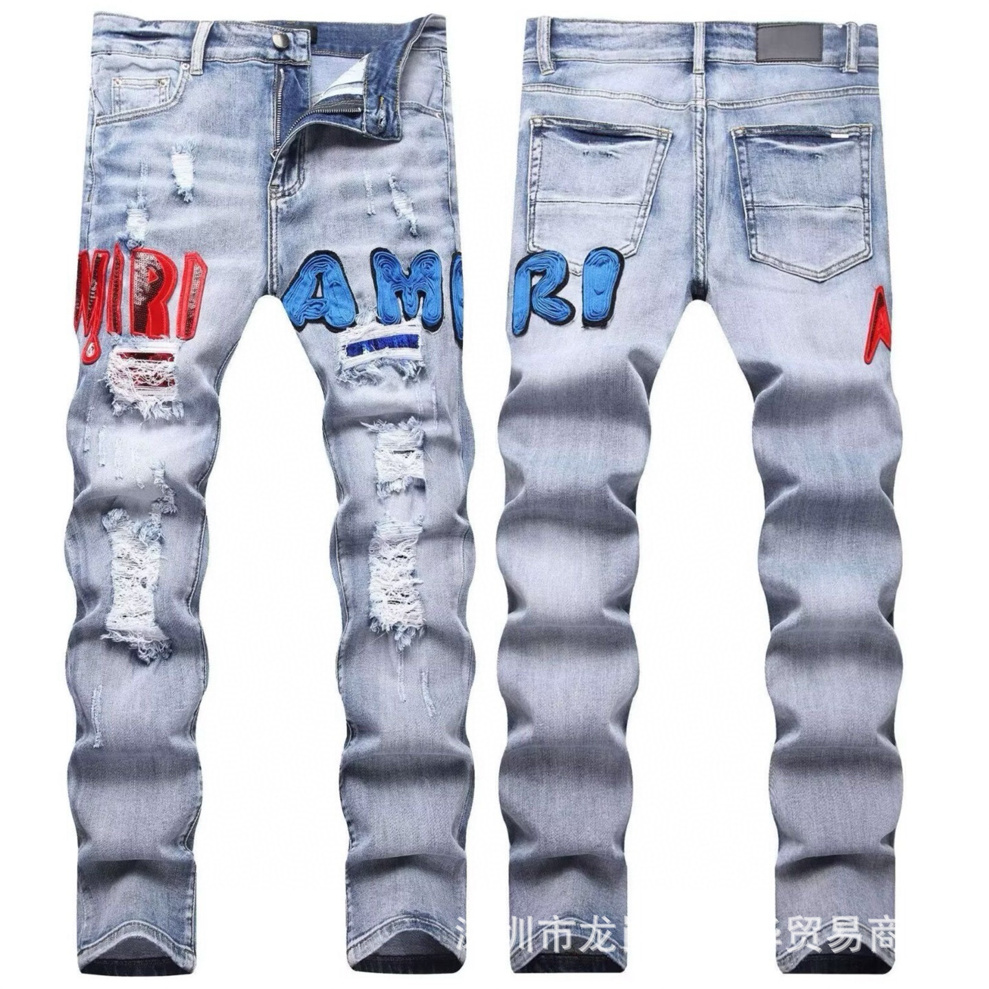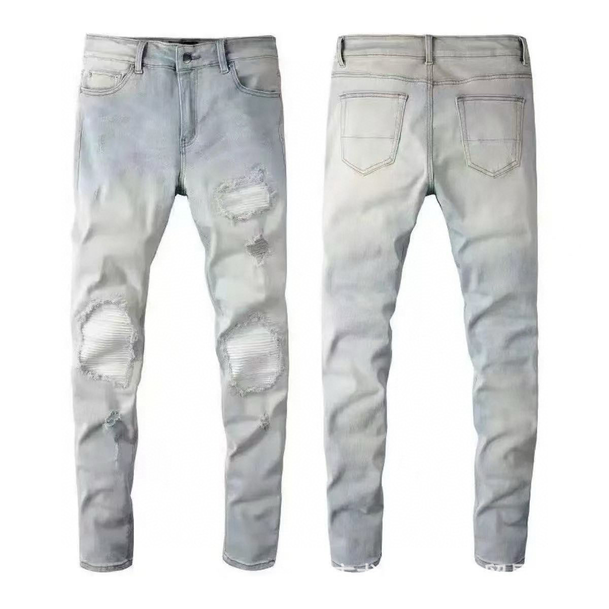 AM 대외 무역 남성용 찢어진 자수 청바지 오각별 트렌디 스트레치 슬림핏 바지 하이 엔드 캐주얼 남성 바지스토어 가기