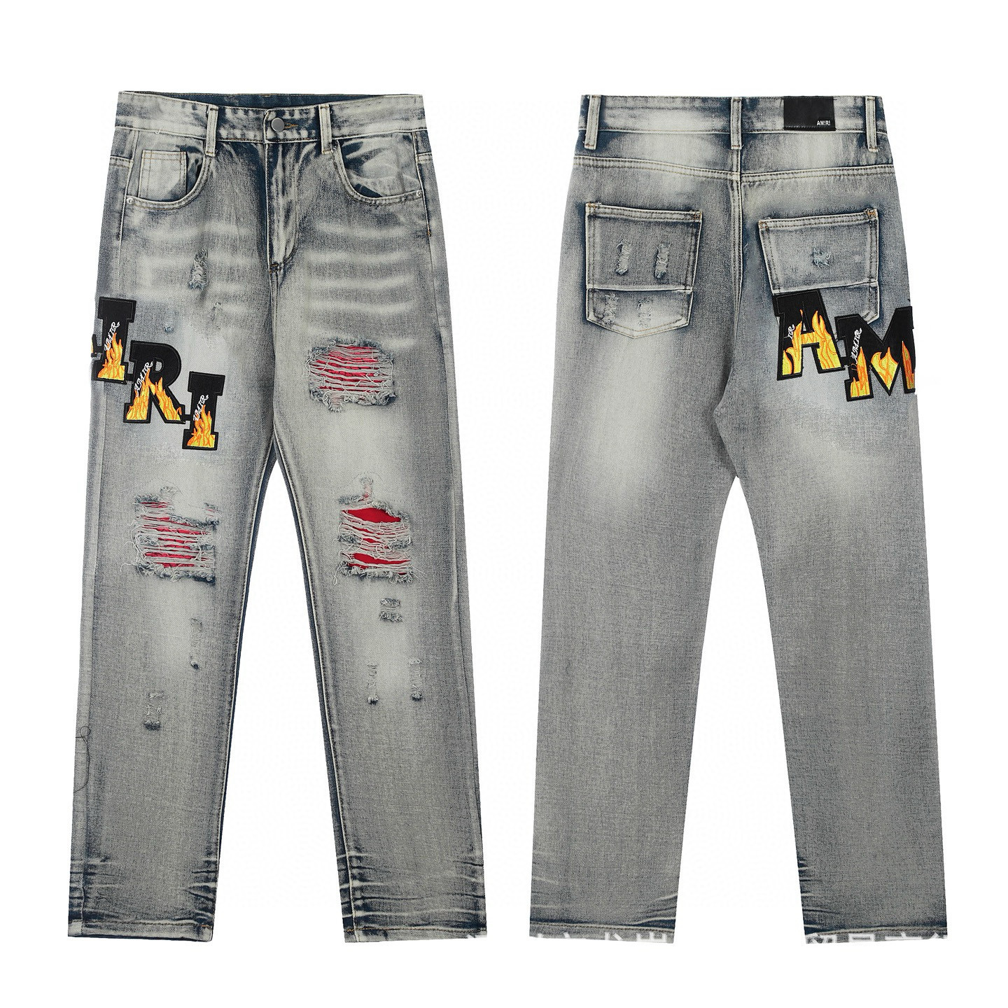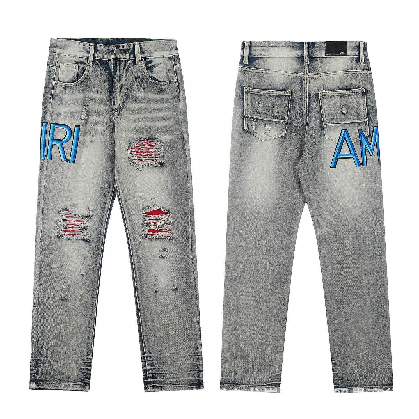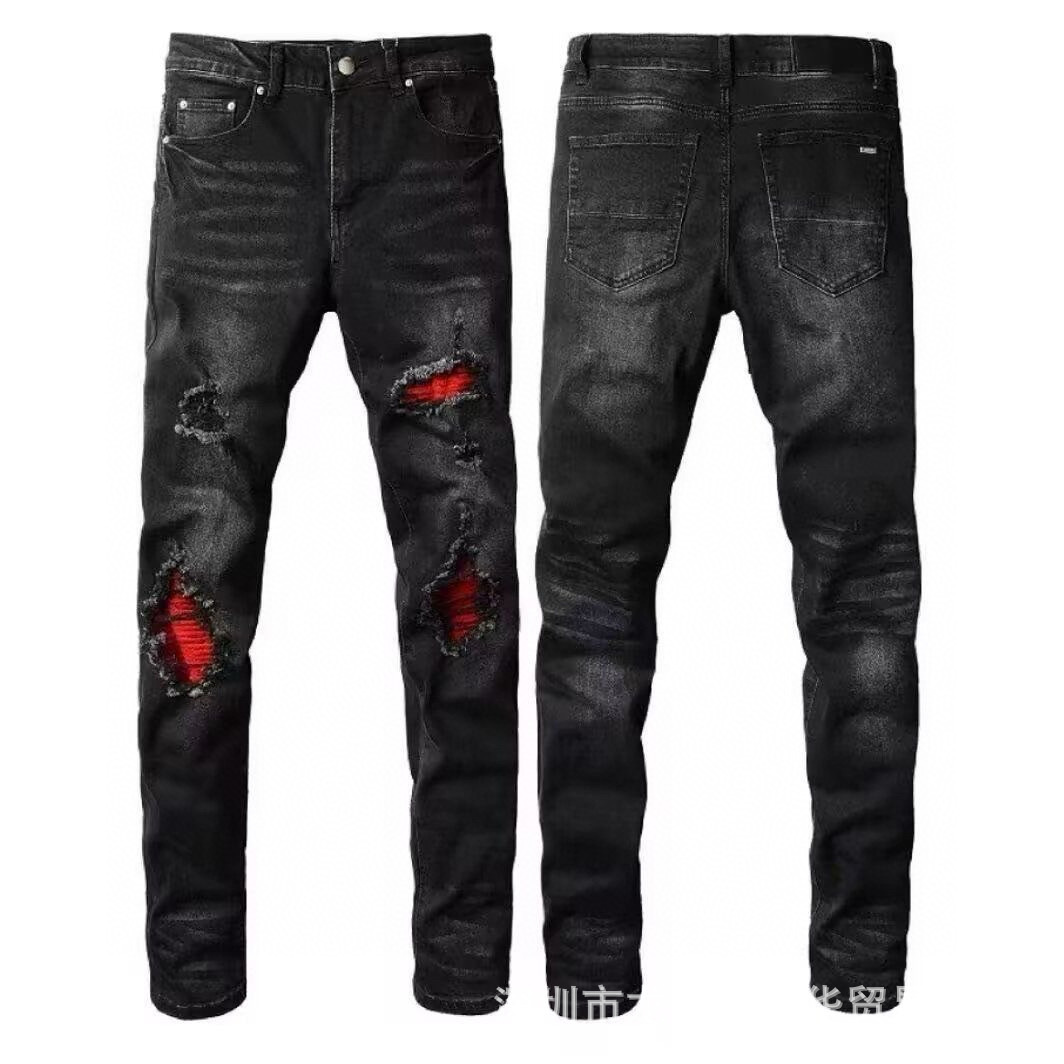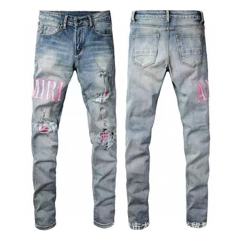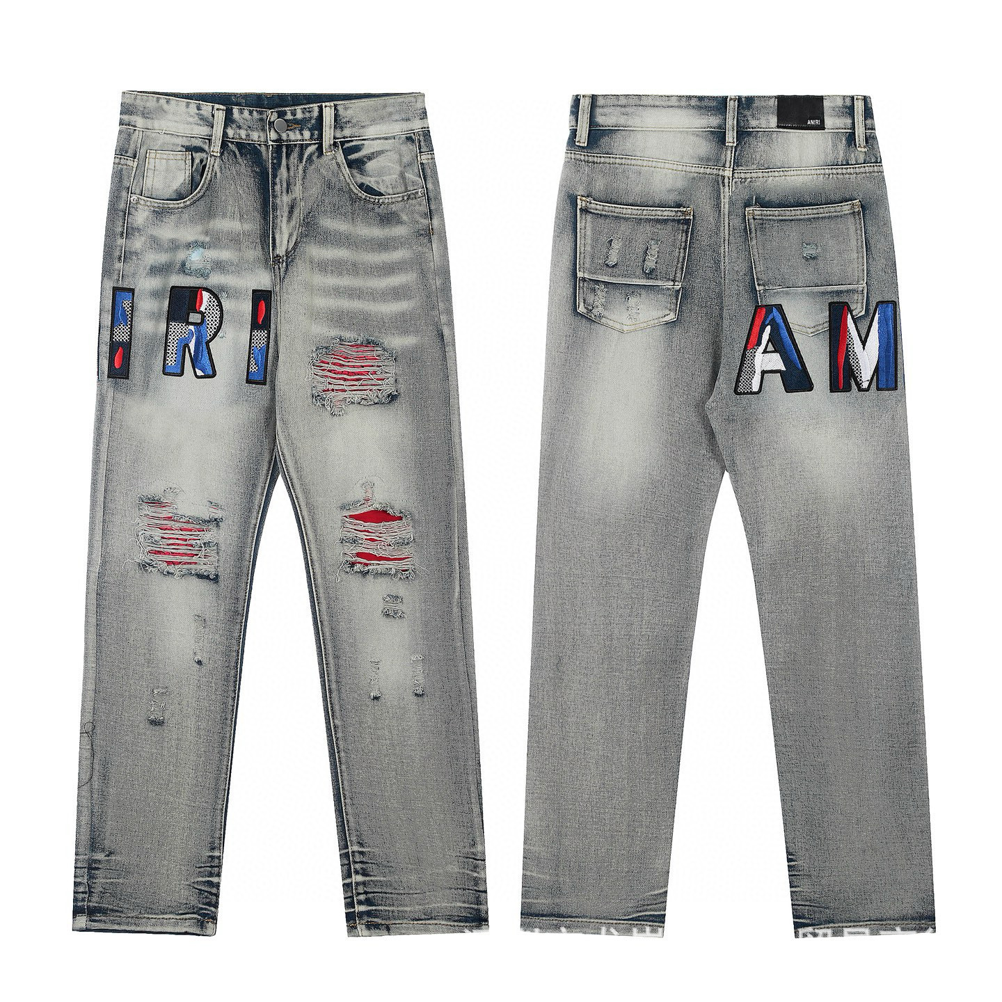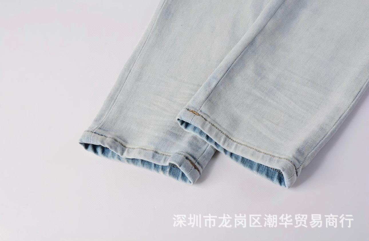 AM 대외 무역 남성용 찢어진 자수 청바지 오각별 트렌디 스트레치 슬림핏 바지 하이 엔드 캐주얼 남성 바지스토어 가기