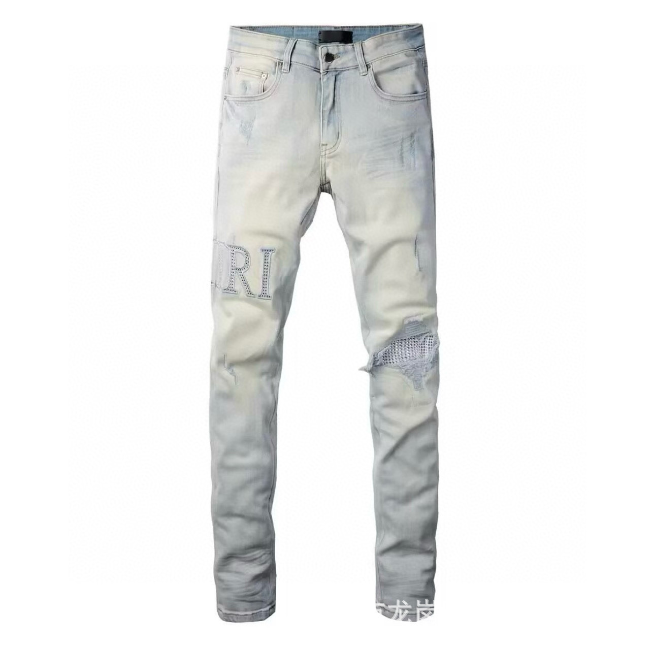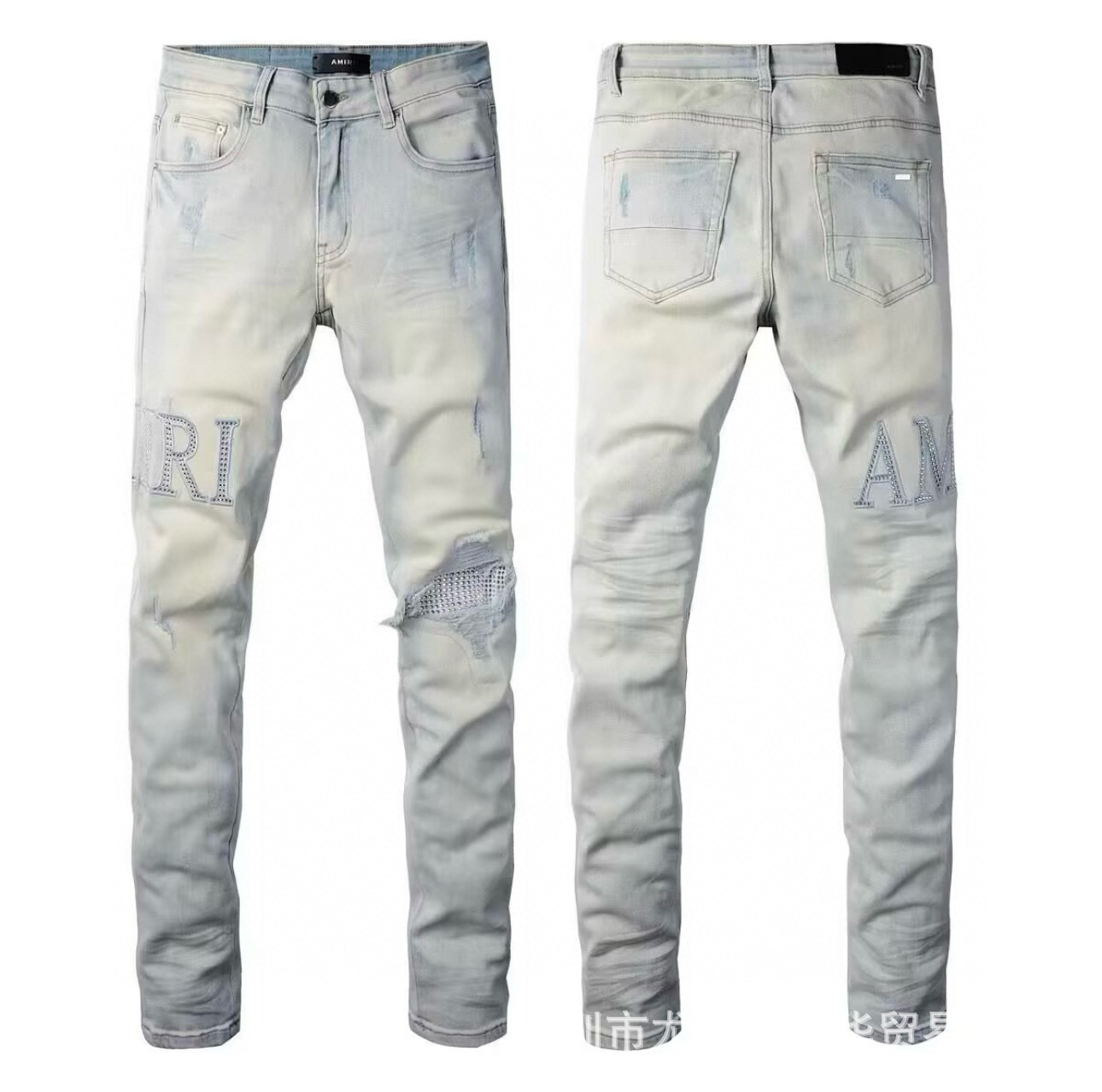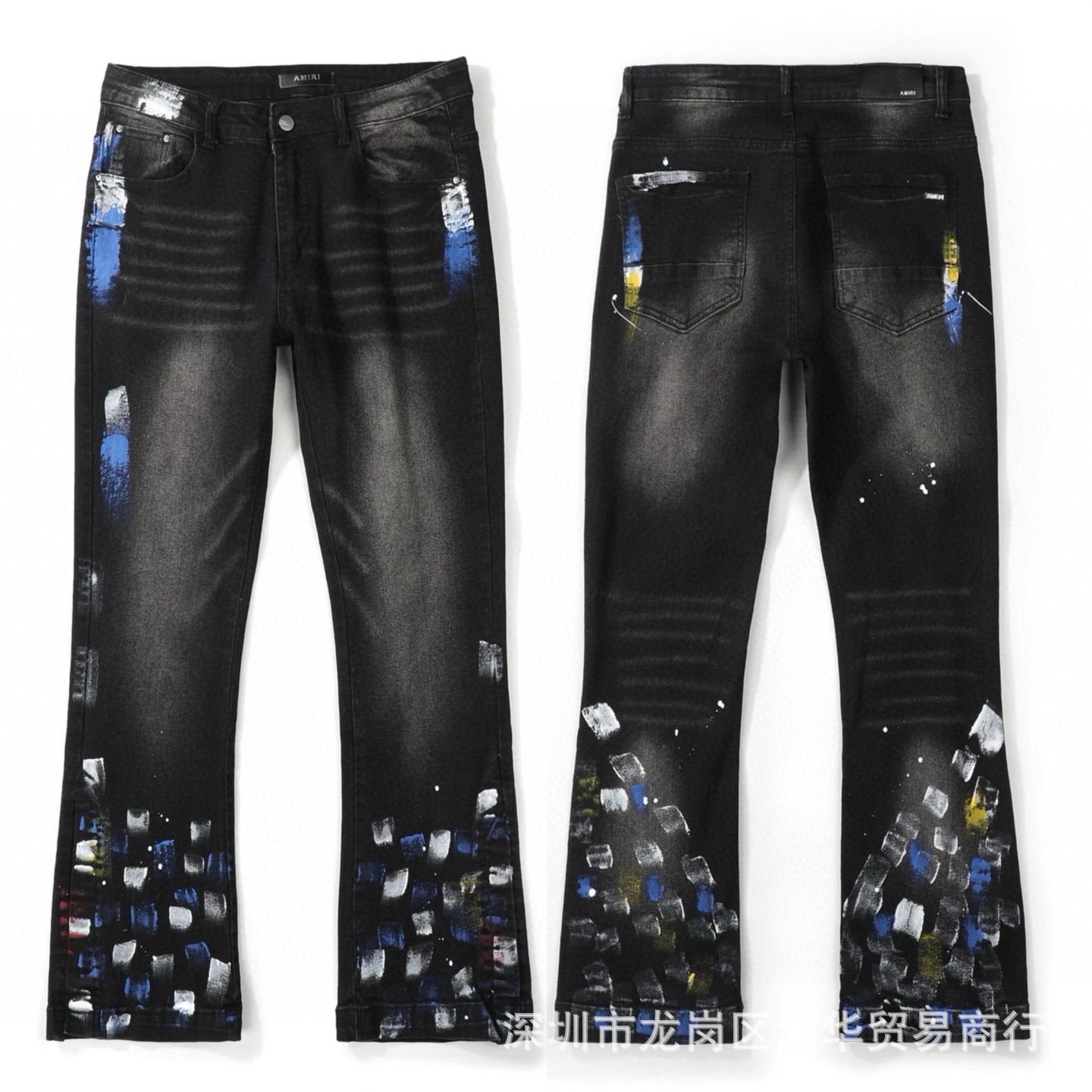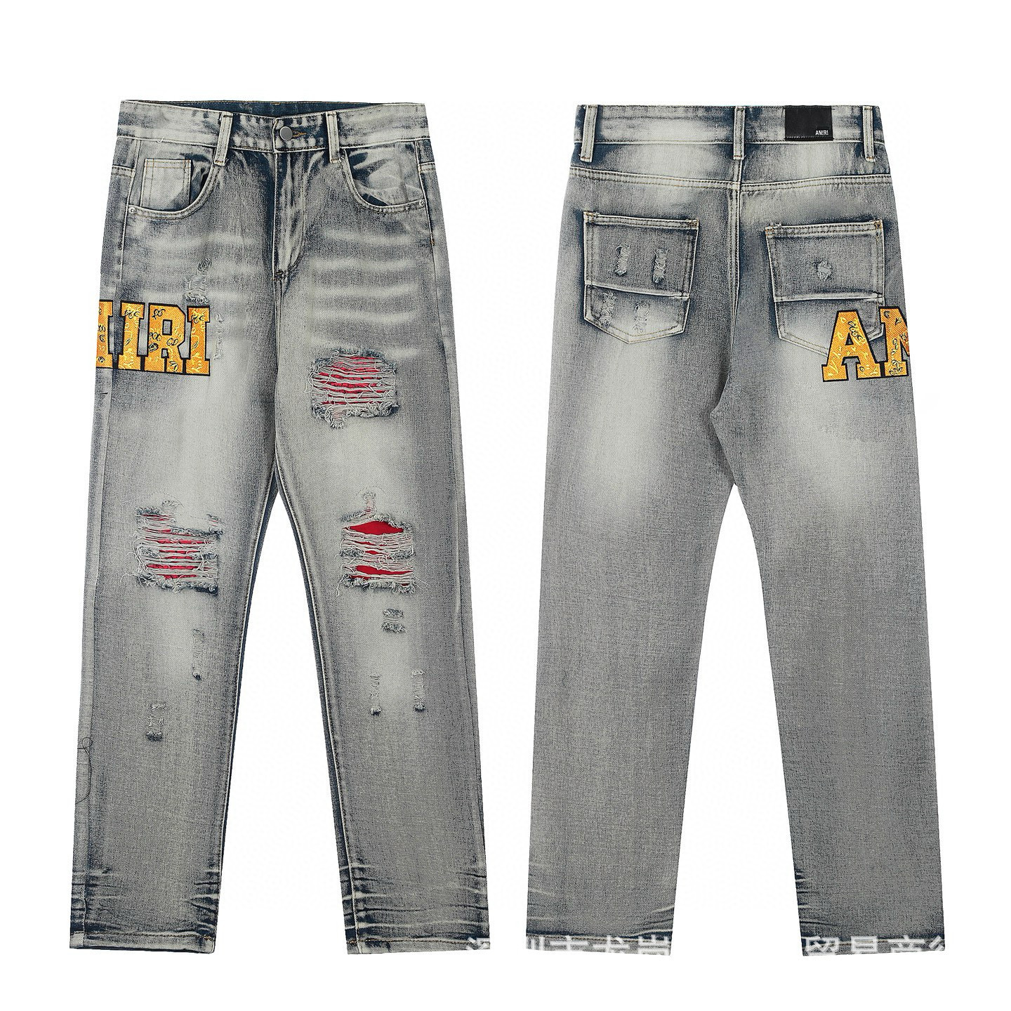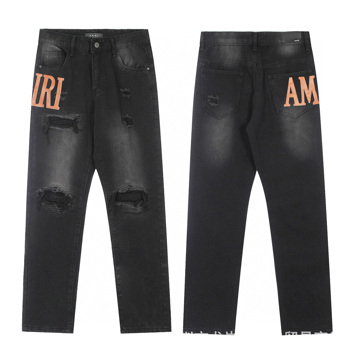 AM 대외 무역 남성용 찢어진 자수 청바지 오각별 트렌디 스트레치 슬림핏 바지 하이 엔드 캐주얼 남성 바지스토어 가기