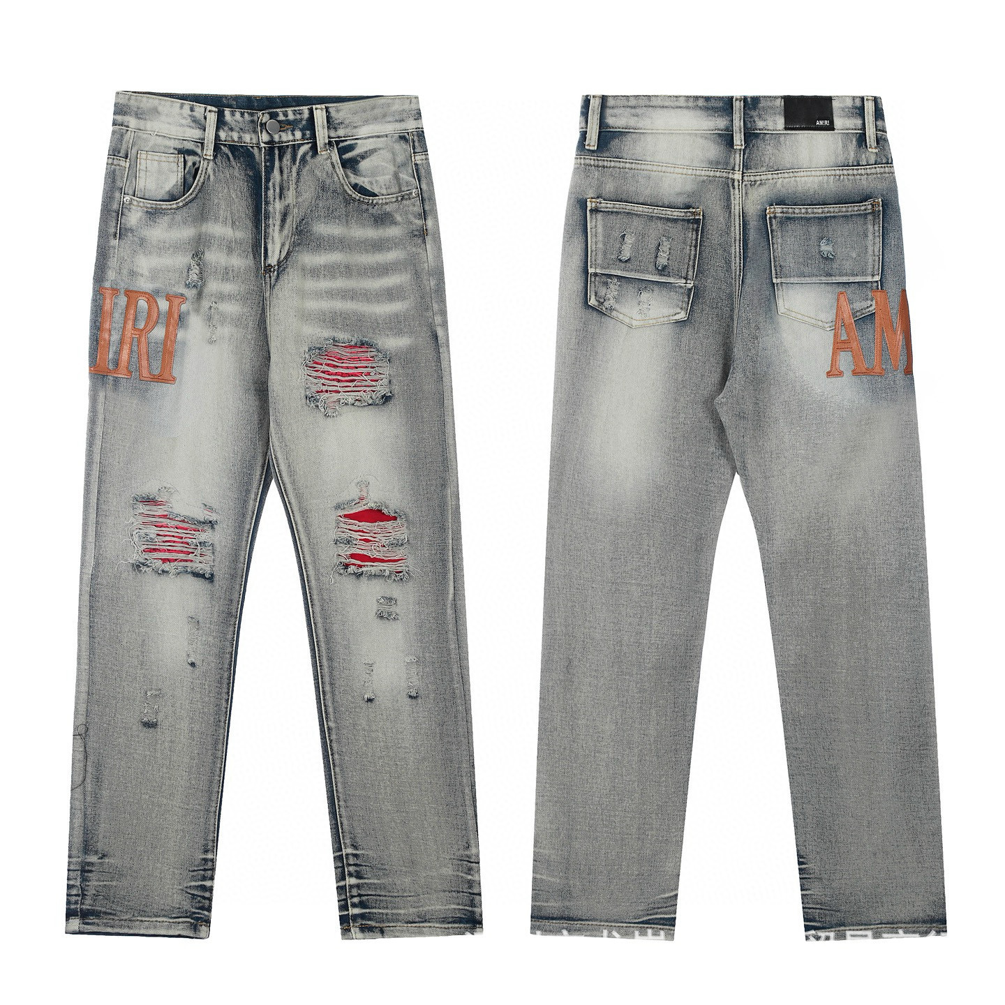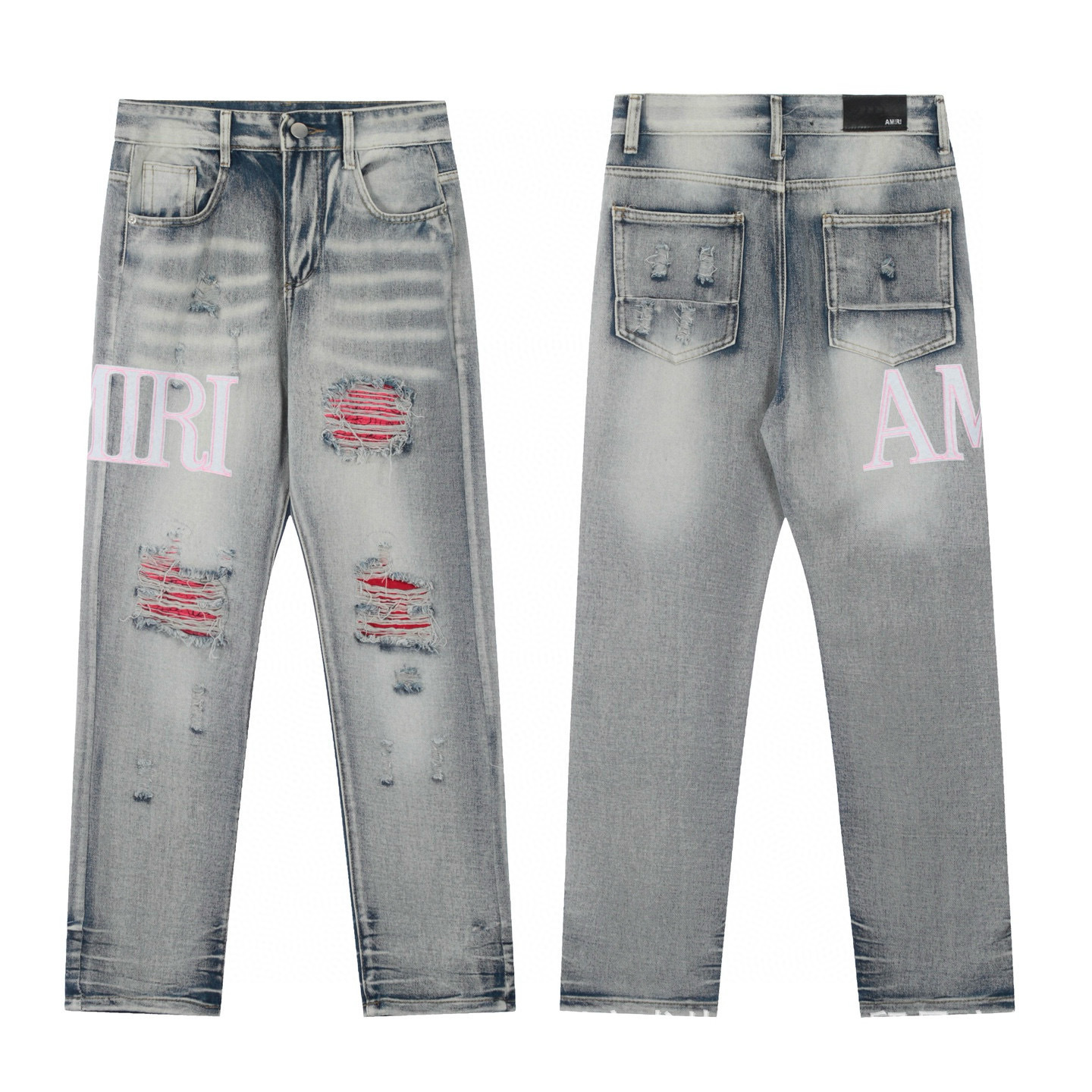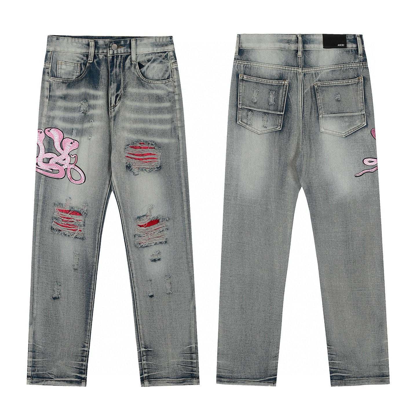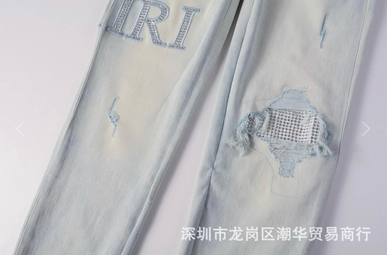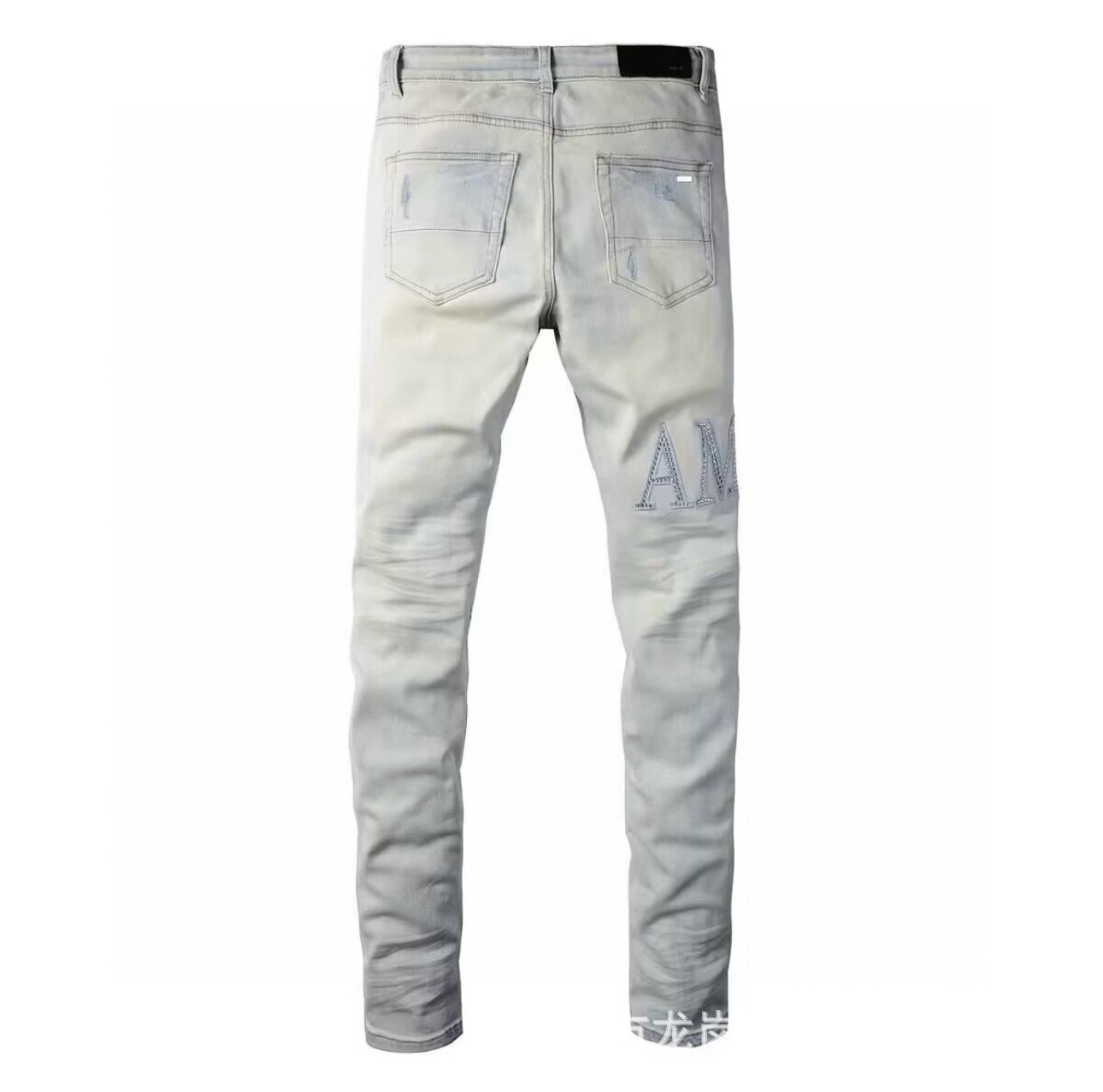 AM 대외 무역 남성용 찢어진 자수 청바지 오각별 트렌디 스트레치 슬림핏 바지 하이 엔드 캐주얼 남성 바지스토어 가기