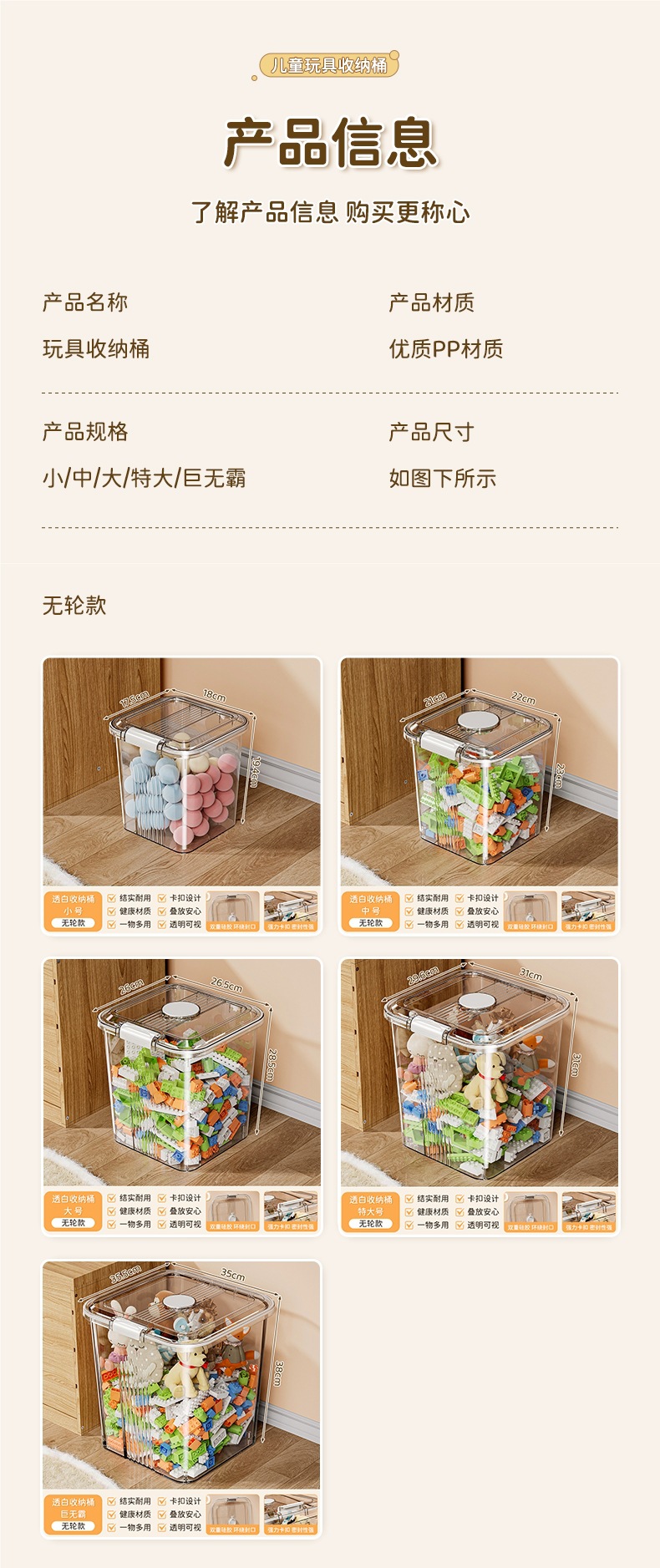 어린이 장난감 보관 상자 대용량 초대형 가정용 보관 버킷 인형 빌딩 블록 높은 스낵 보관 상자