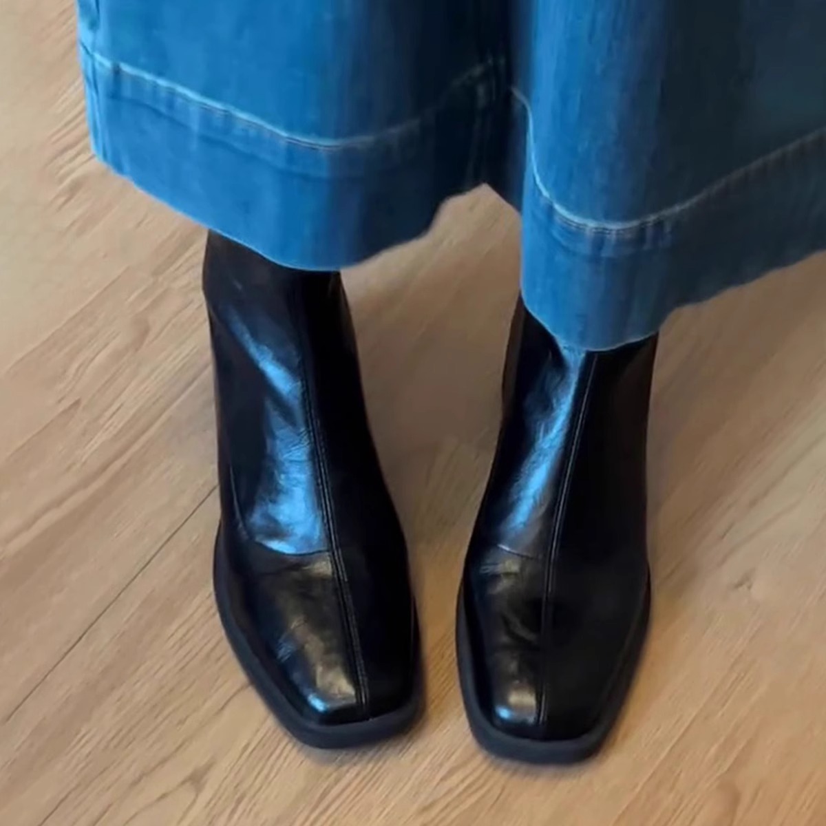 소가죽 버전 ~ 여성용 하이힐 숏부츠 2025 가을 겨울 신상 스퀘어토 마틴부츠 스몰 프렌치 두꺼운 굽 슬림부츠스토어 가기
