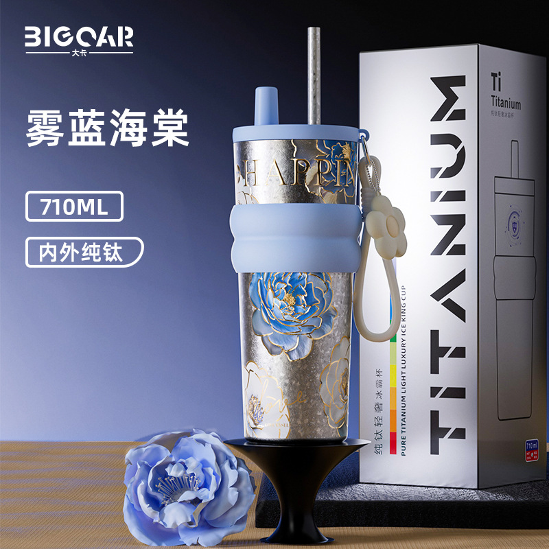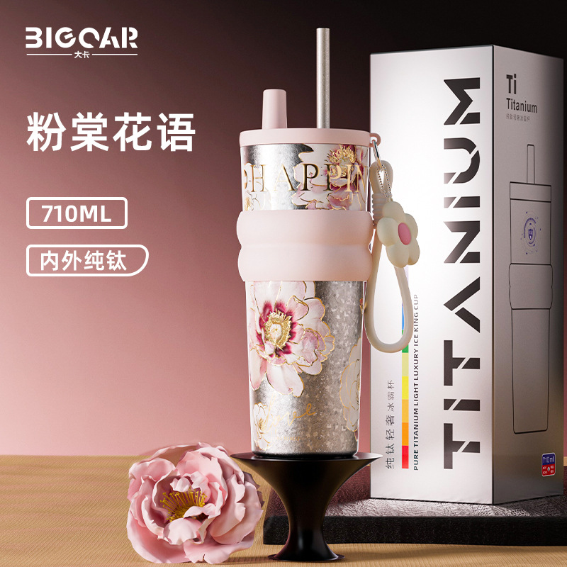 Bigcar 순수 티타늄 절연 컵 소녀 대용량 자동차 밀짚 컵 2025 새로운 하이 엔드 커피 컵