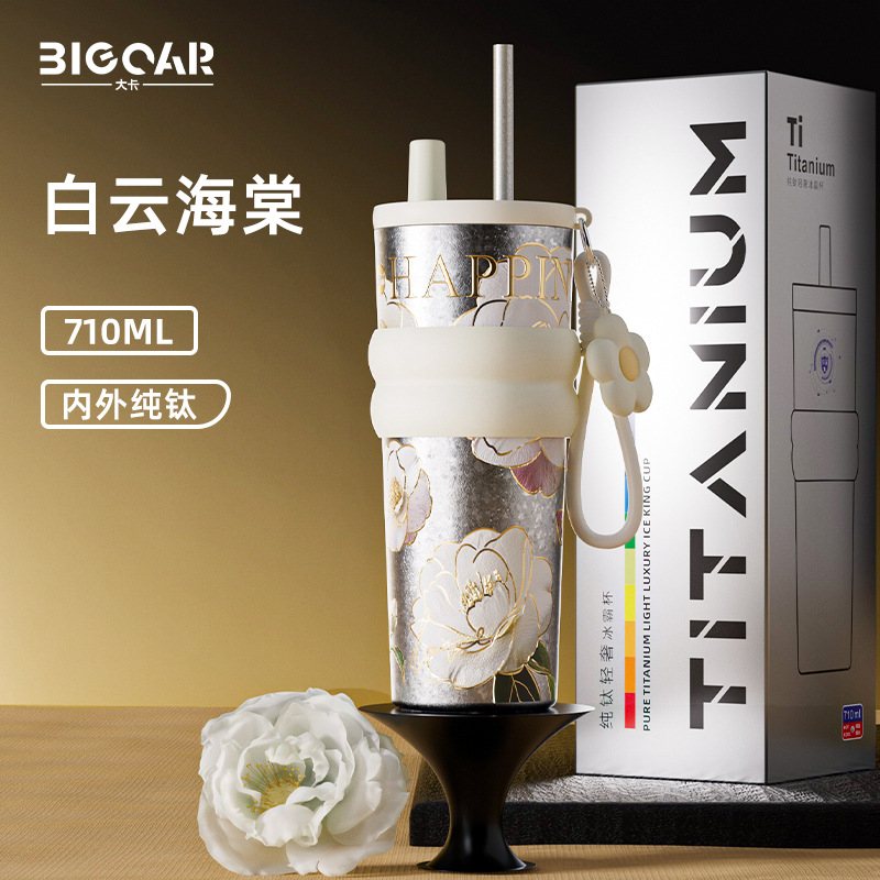 Bigcar 순수 티타늄 절연 컵 소녀 대용량 자동차 밀짚 컵 2025 새로운 하이 엔드 커피 컵스토어 가기