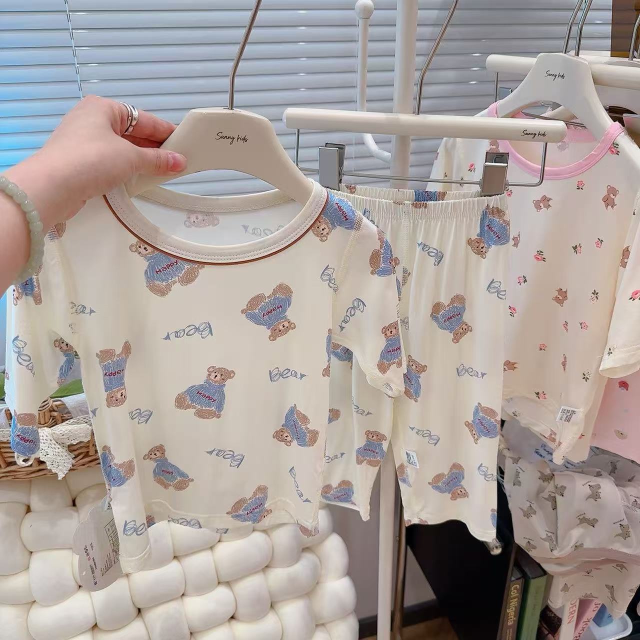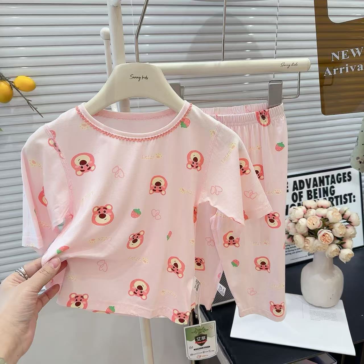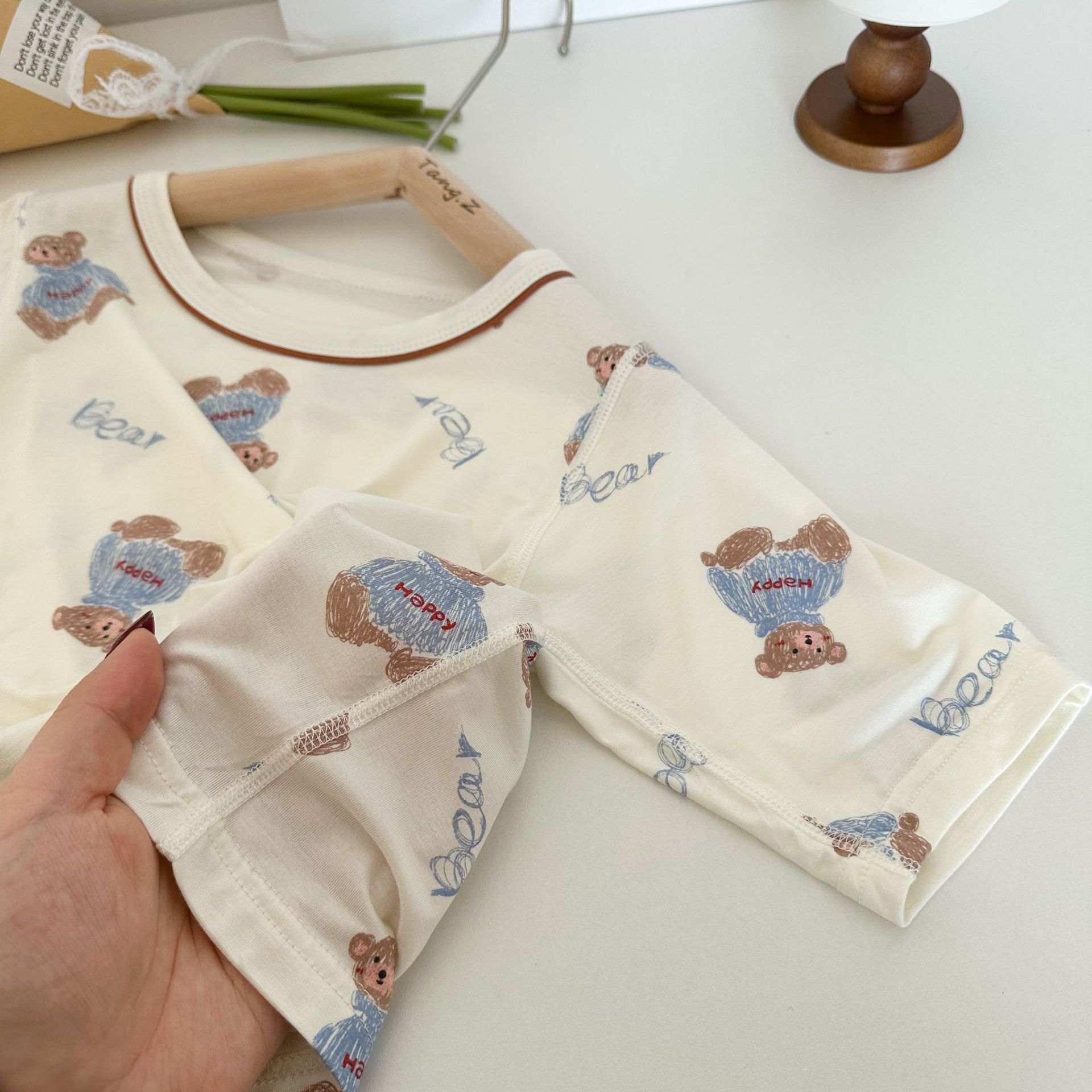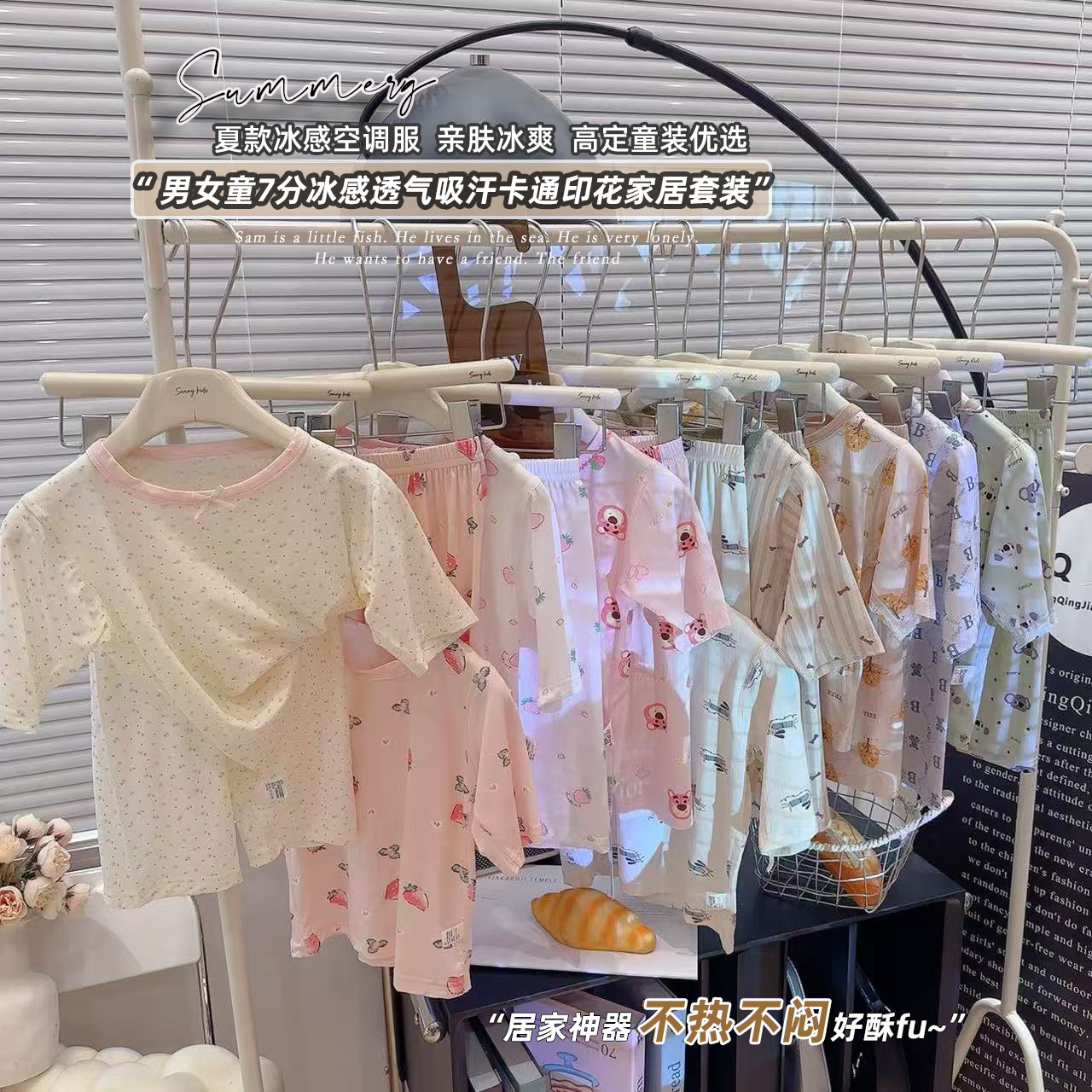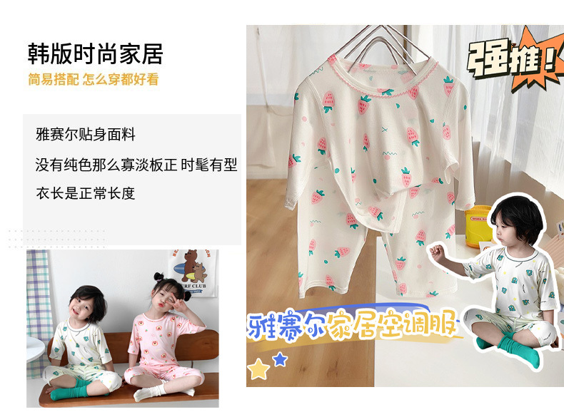 [맞춤형] 남아 및 여아용 아동용 7부 소매 여름 리오셀 에어컨 의류, 뼈없는 잠옷, 에코 실크 홈웨어스토어 가기