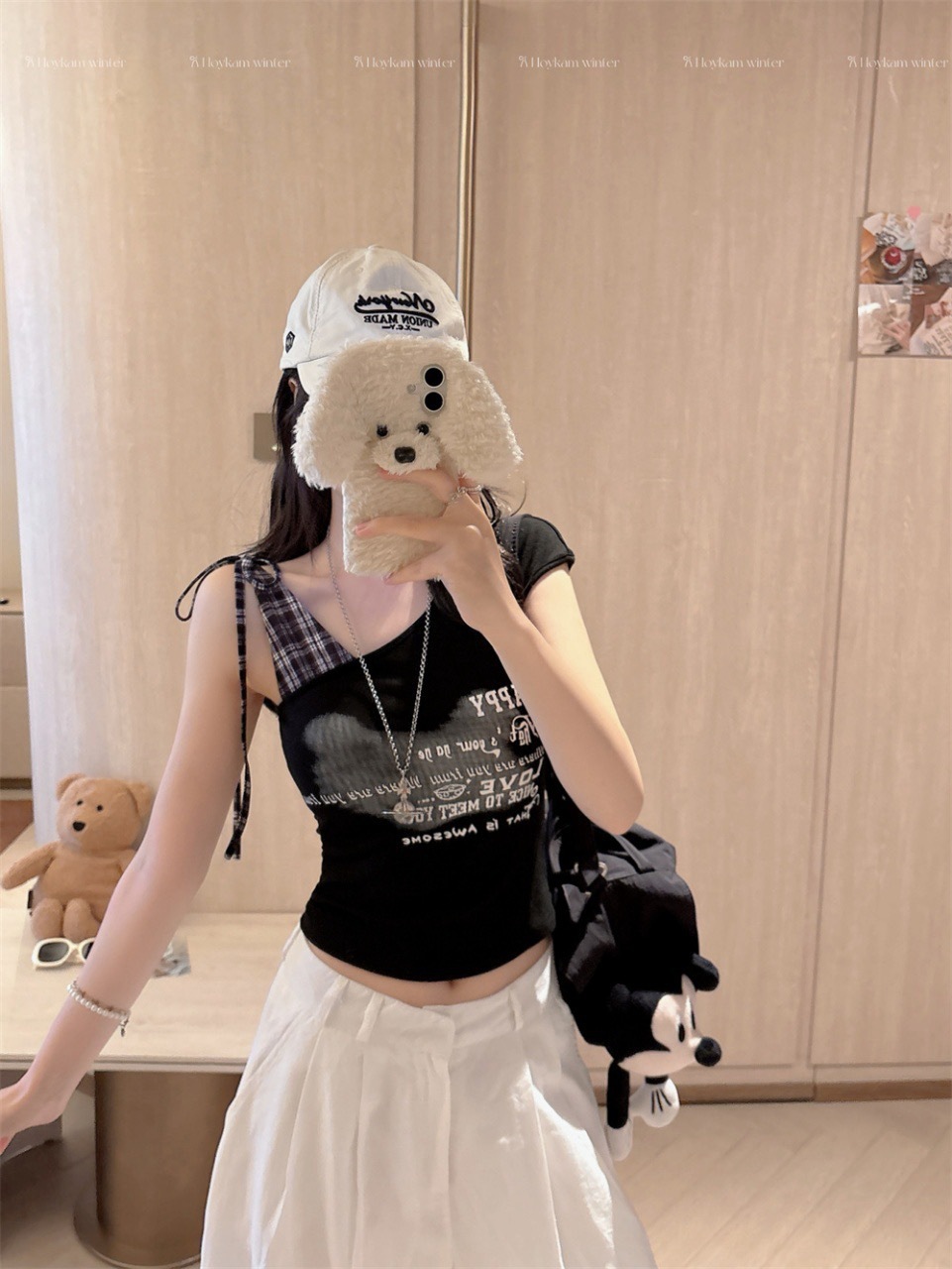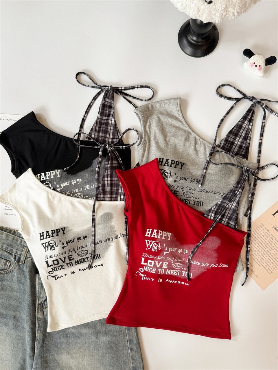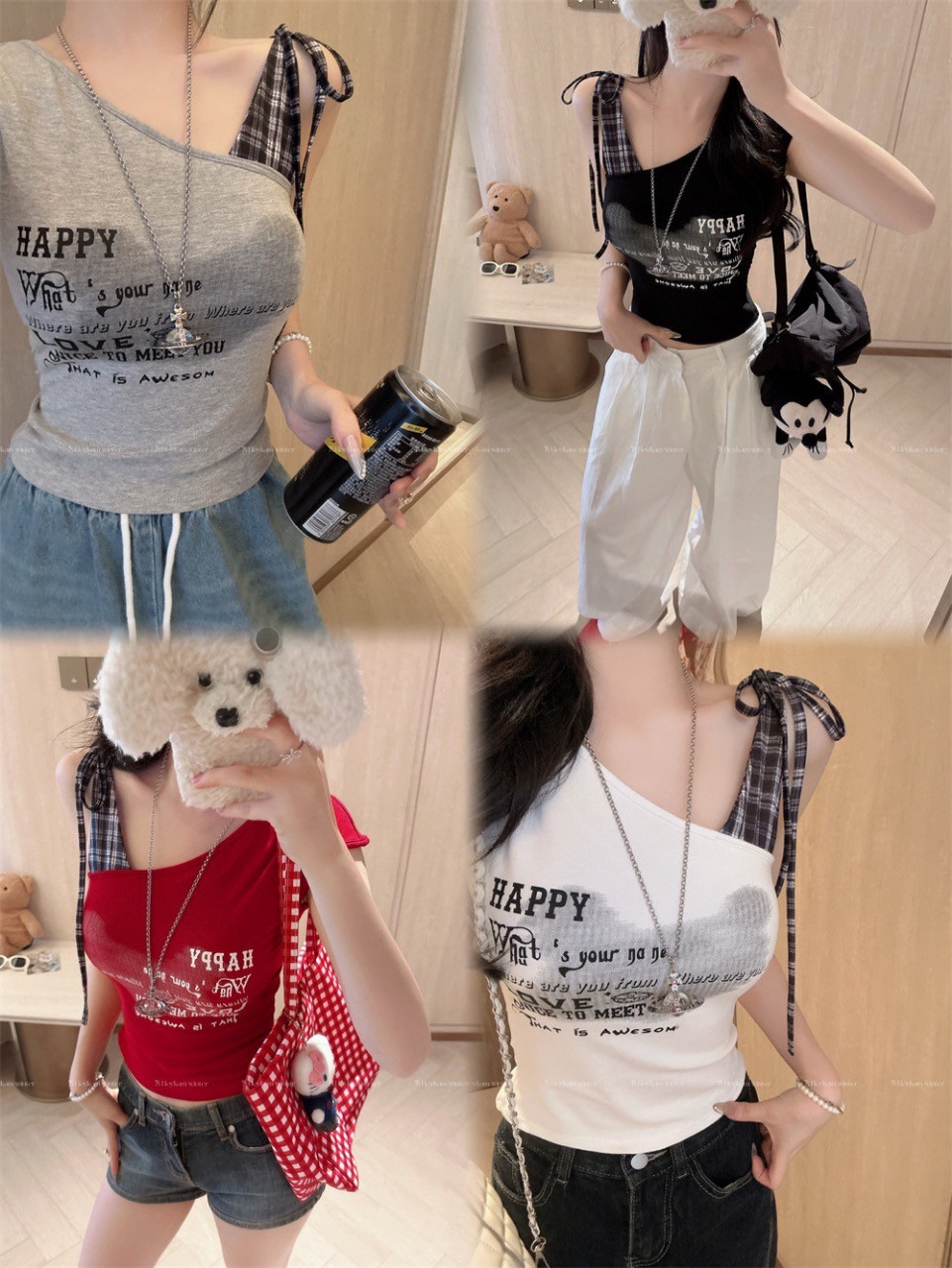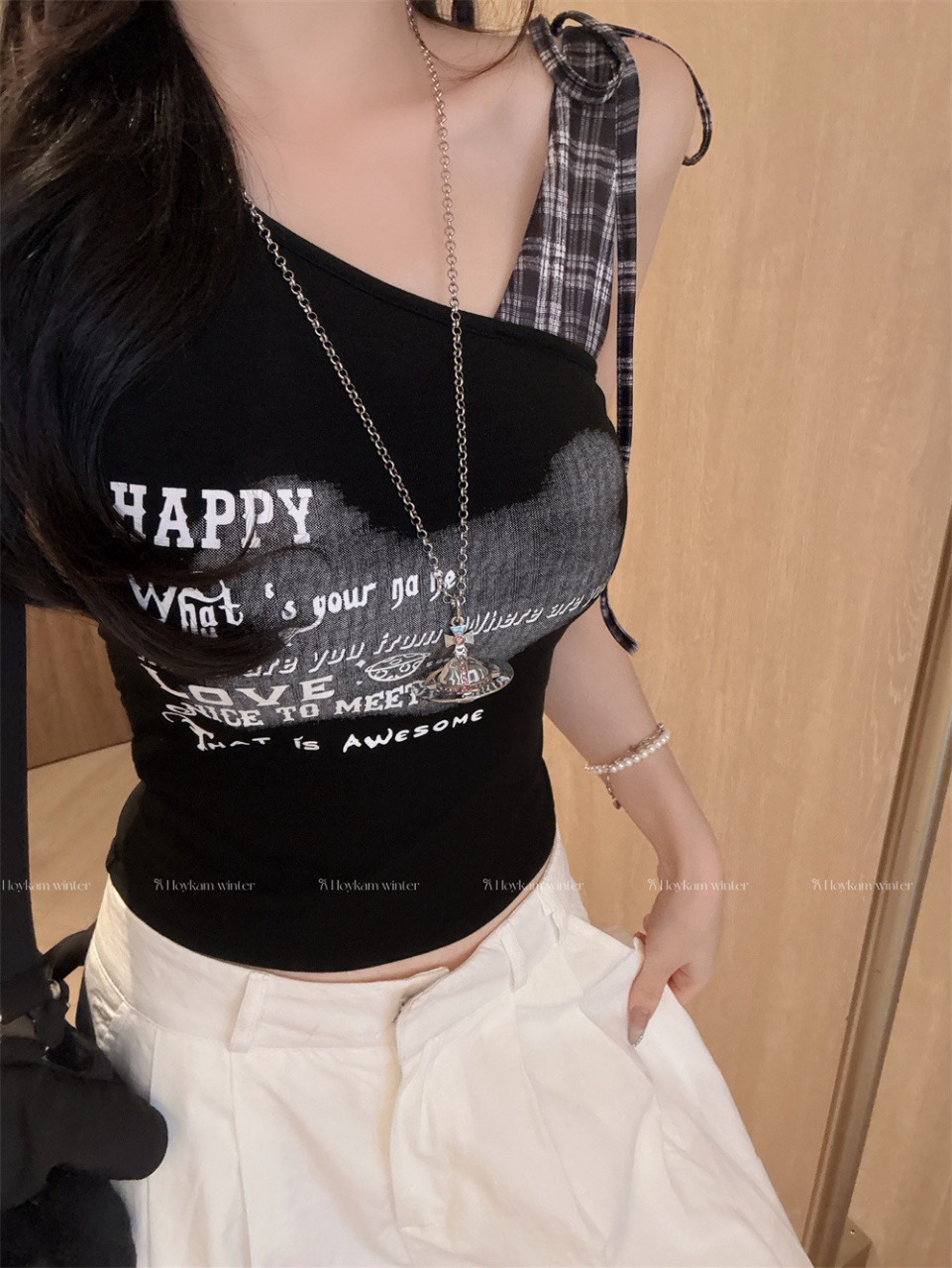5146 # 인모 레터 프린트 스플라이싱 핫걸의 아름다운 등 부분은 스트랩 조끼로 착용 가능하며 핫걸 탑으로도 착용 가능