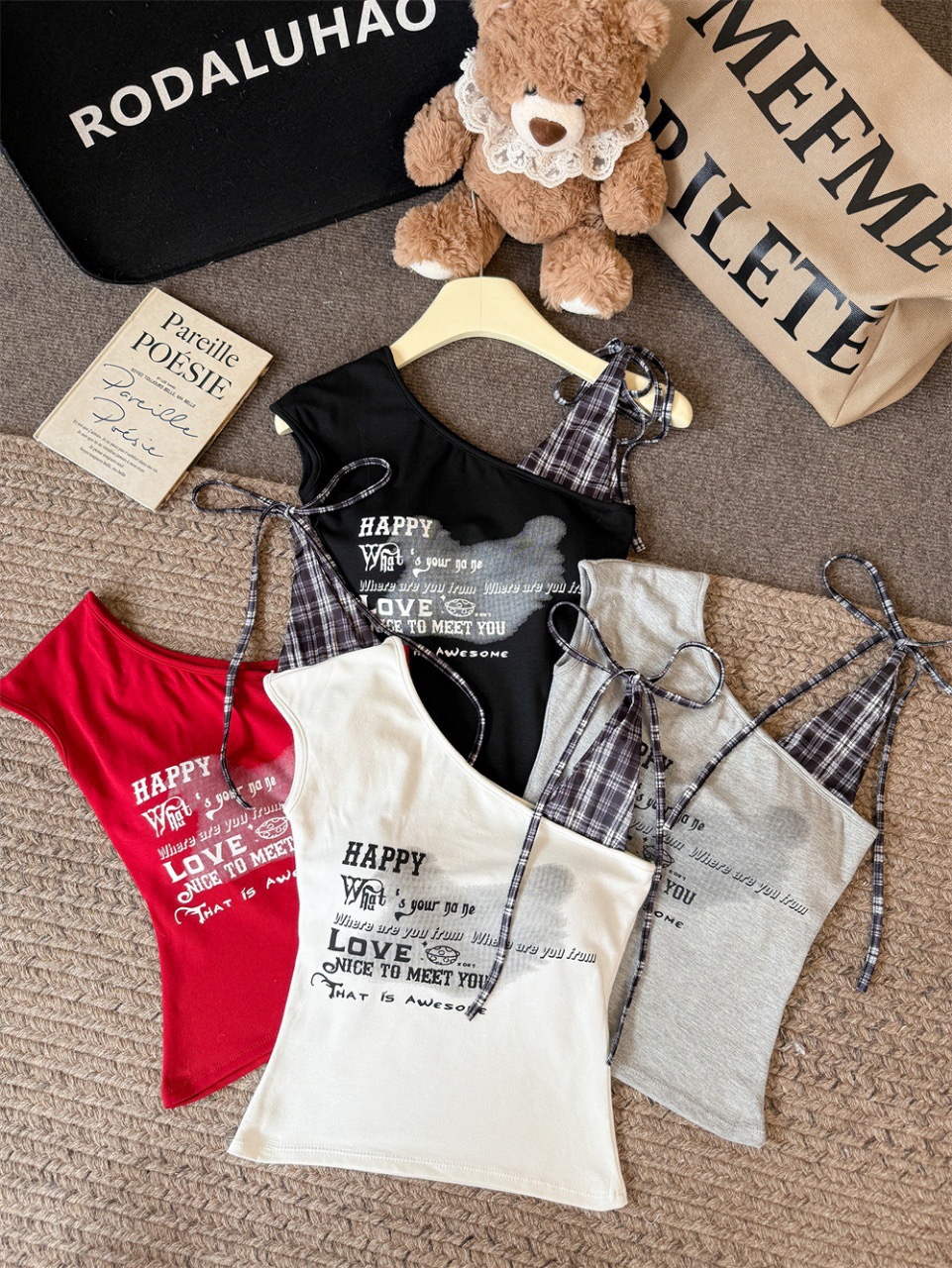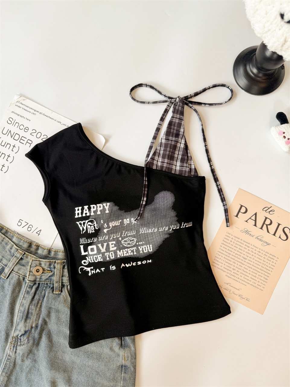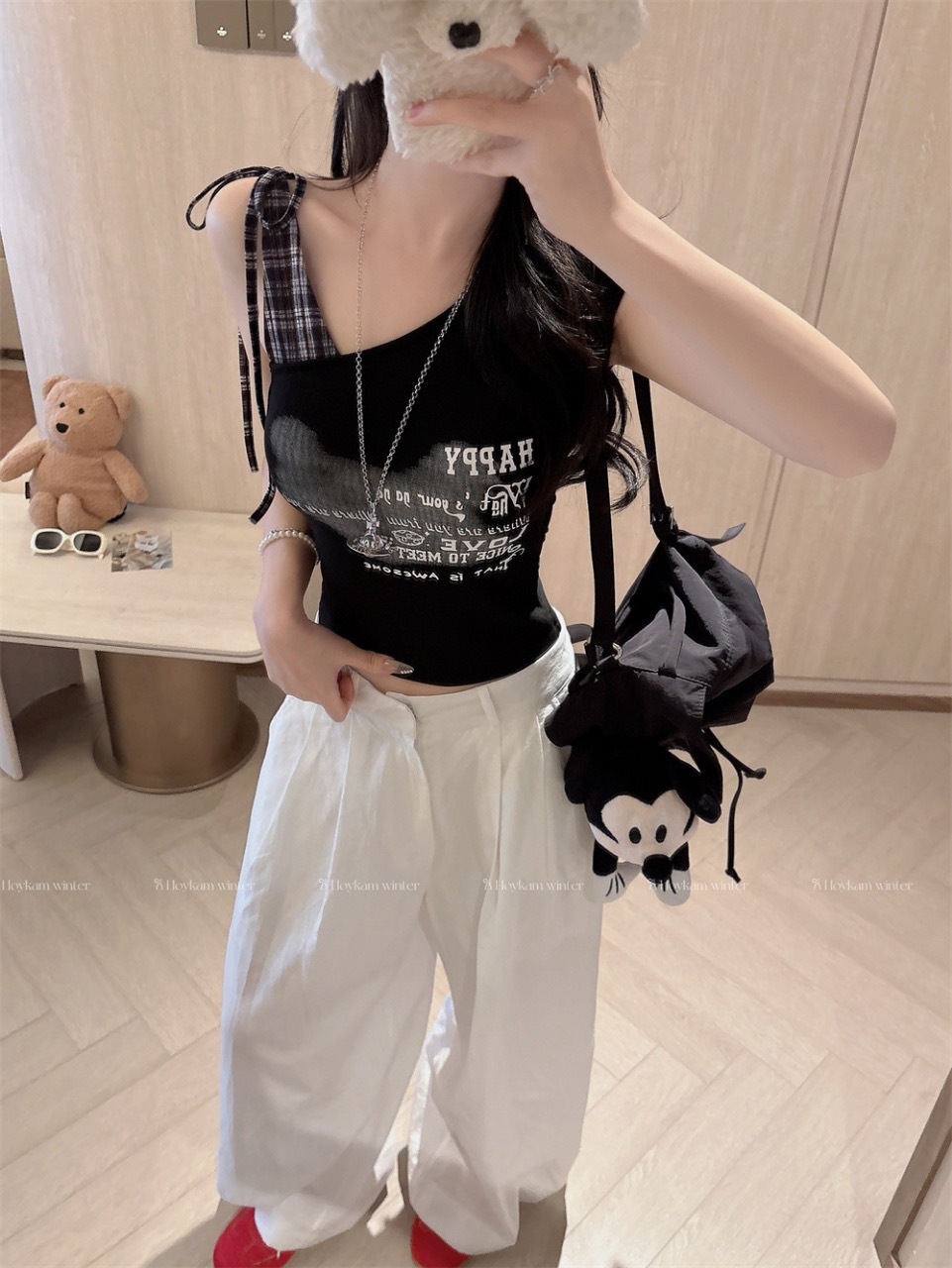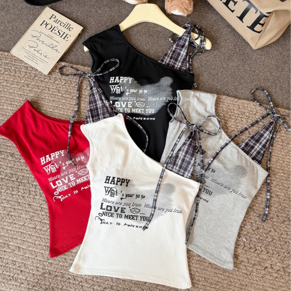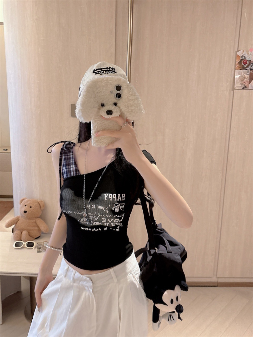 5146 # 인모 레터 프린트 스플라이싱 핫걸의 아름다운 등 부분은 스트랩 조끼로 착용 가능하며 핫걸 탑으로도 착용 가능