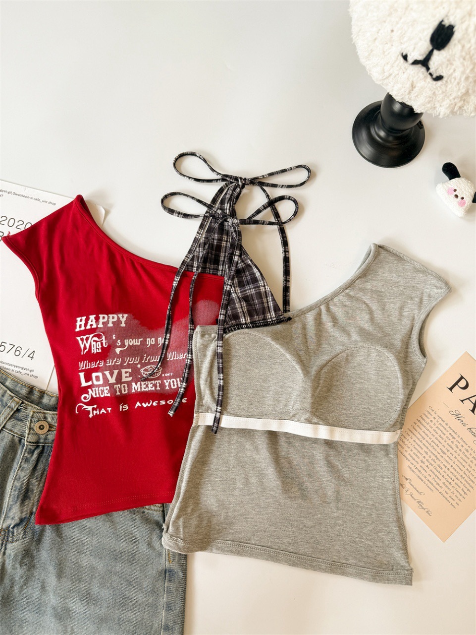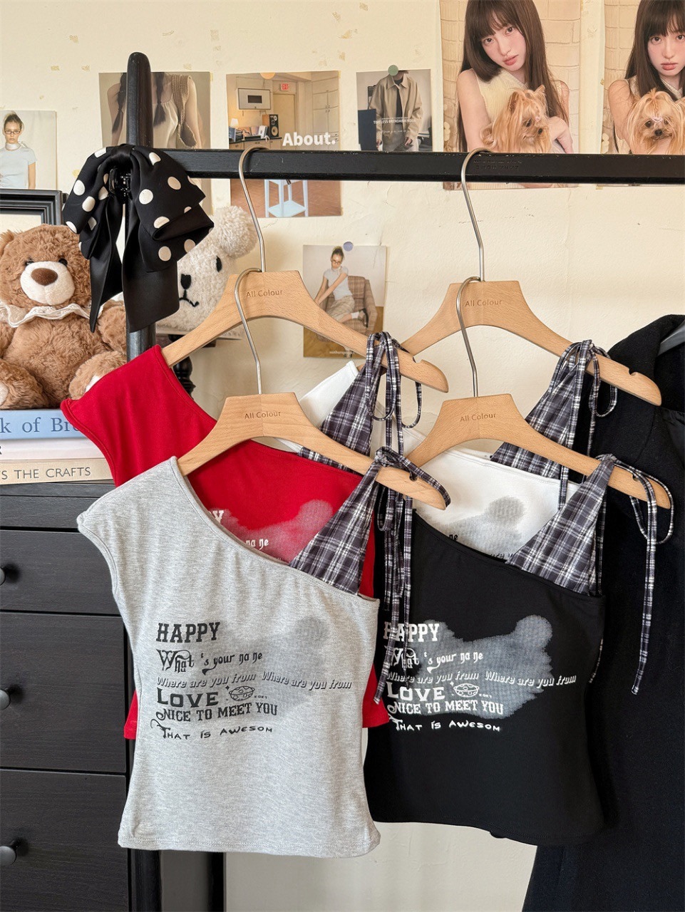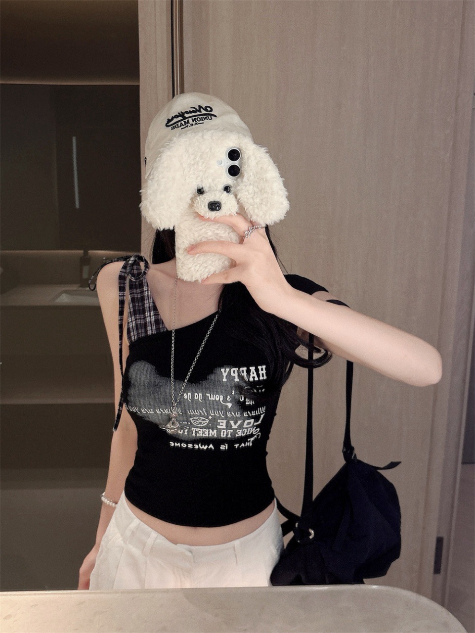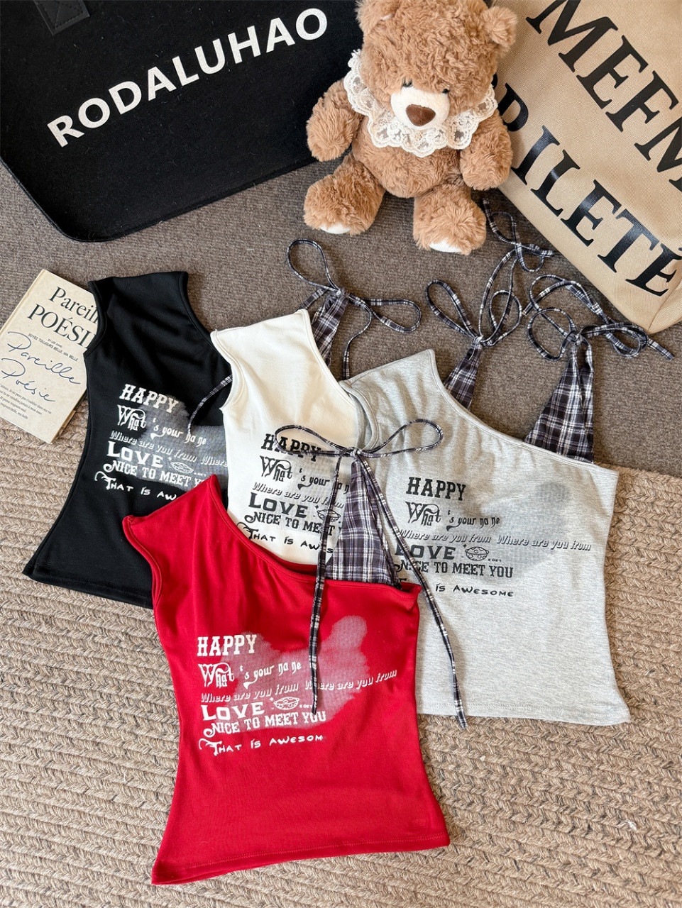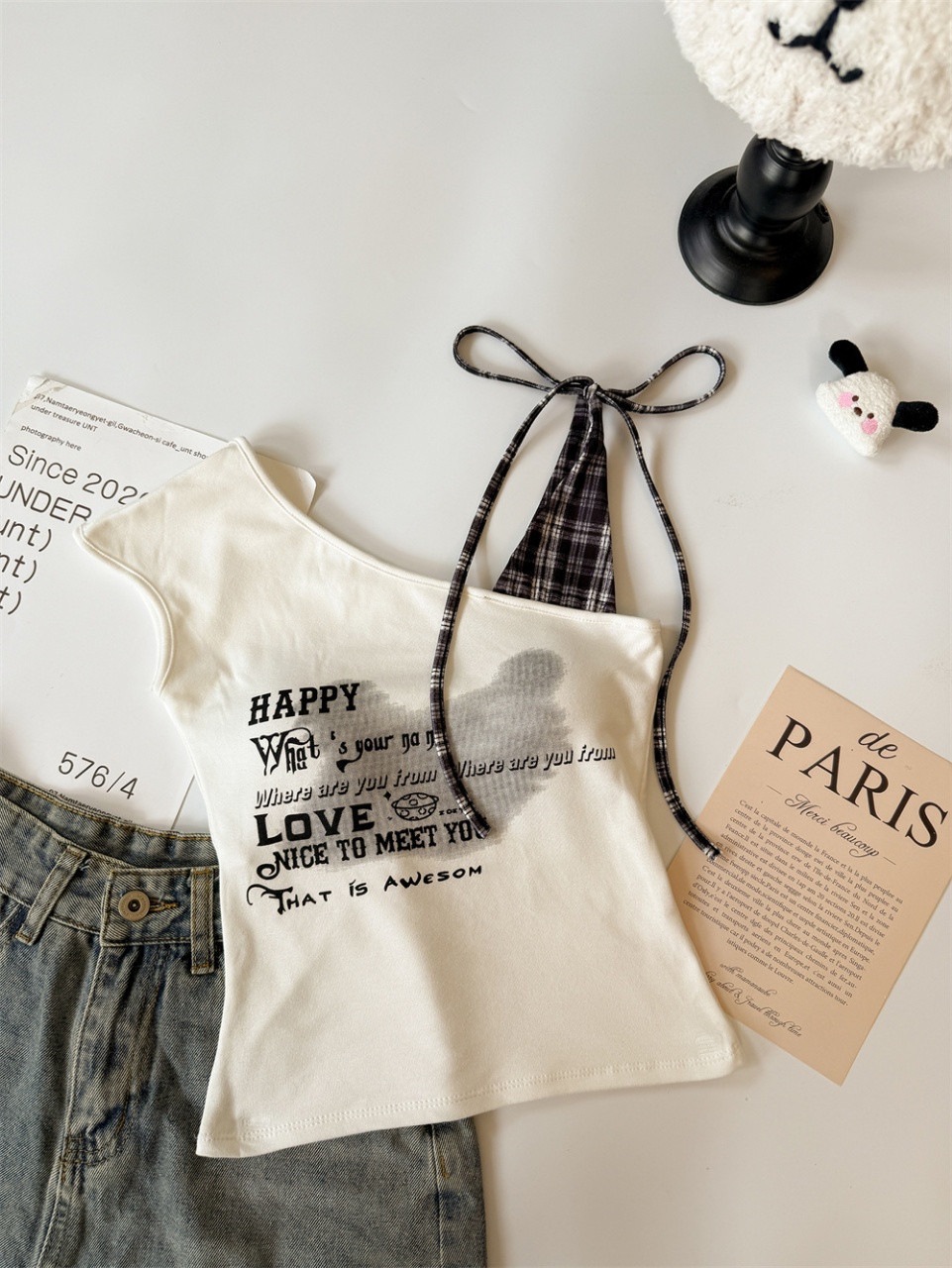 5146 # 인모 레터 프린트 스플라이싱 핫걸의 아름다운 등 부분은 스트랩 조끼로 착용 가능하며 핫걸 탑으로도 착용 가능