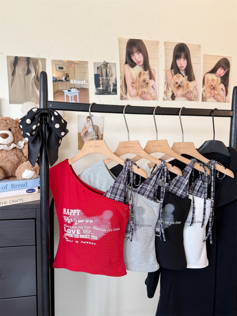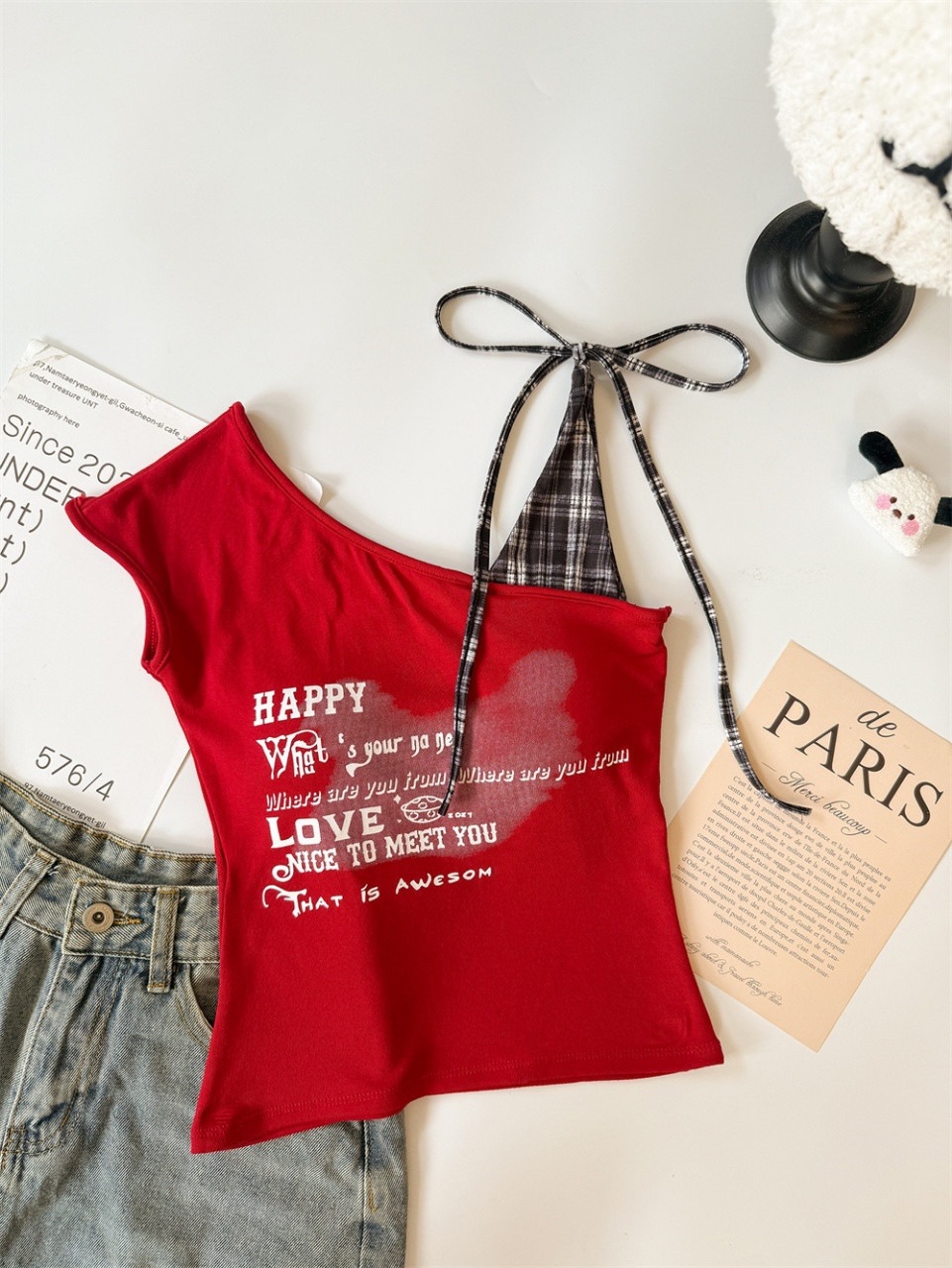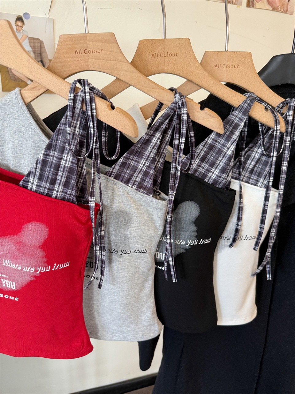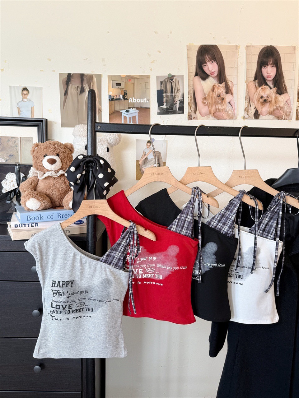 5146 # 인모 레터 프린트 스플라이싱 핫걸의 아름다운 등 부분은 스트랩 조끼로 착용 가능하며 핫걸 탑으로도 착용 가능