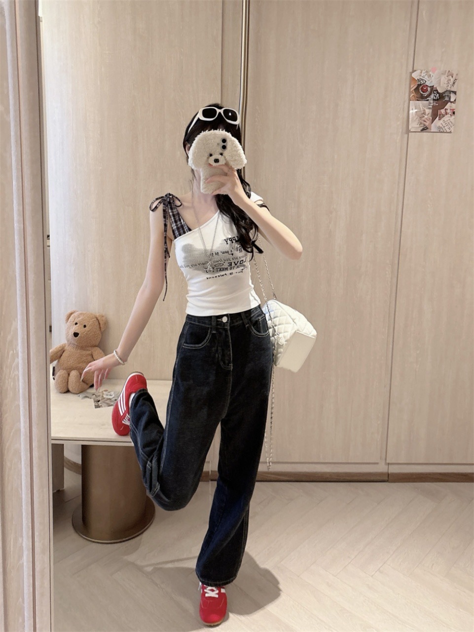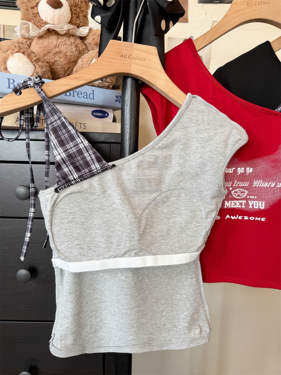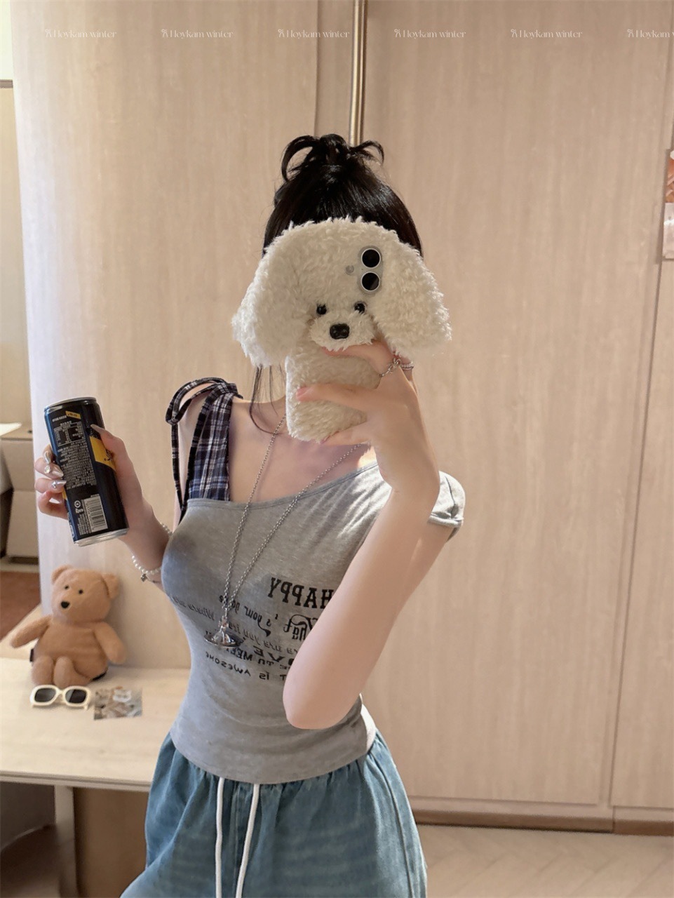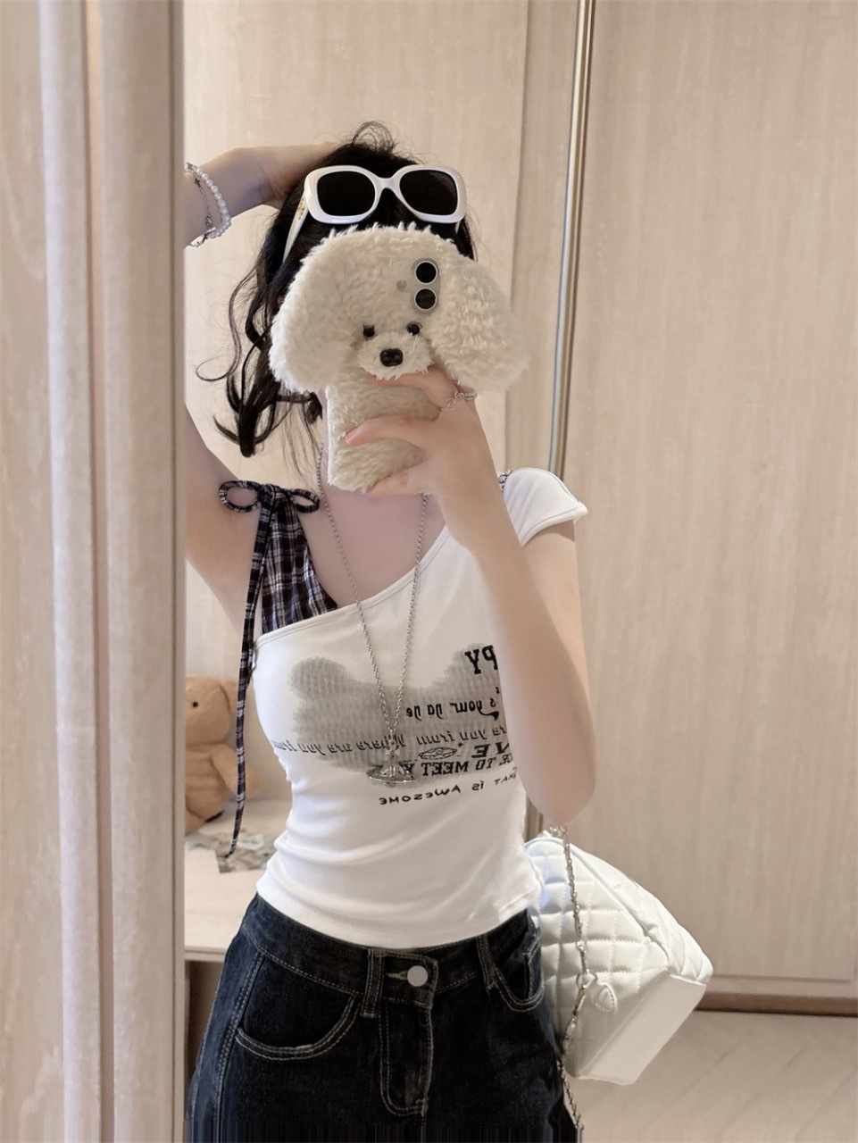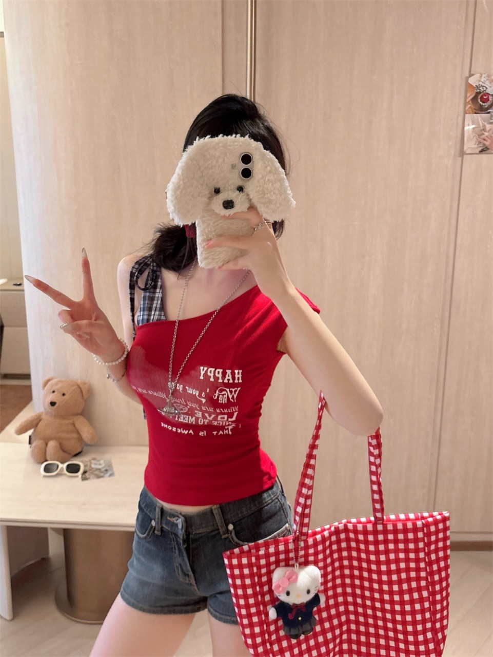 5146 # 인모 레터 프린트 스플라이싱 핫걸의 아름다운 등 부분은 스트랩 조끼로 착용 가능하며 핫걸 탑으로도 착용 가능