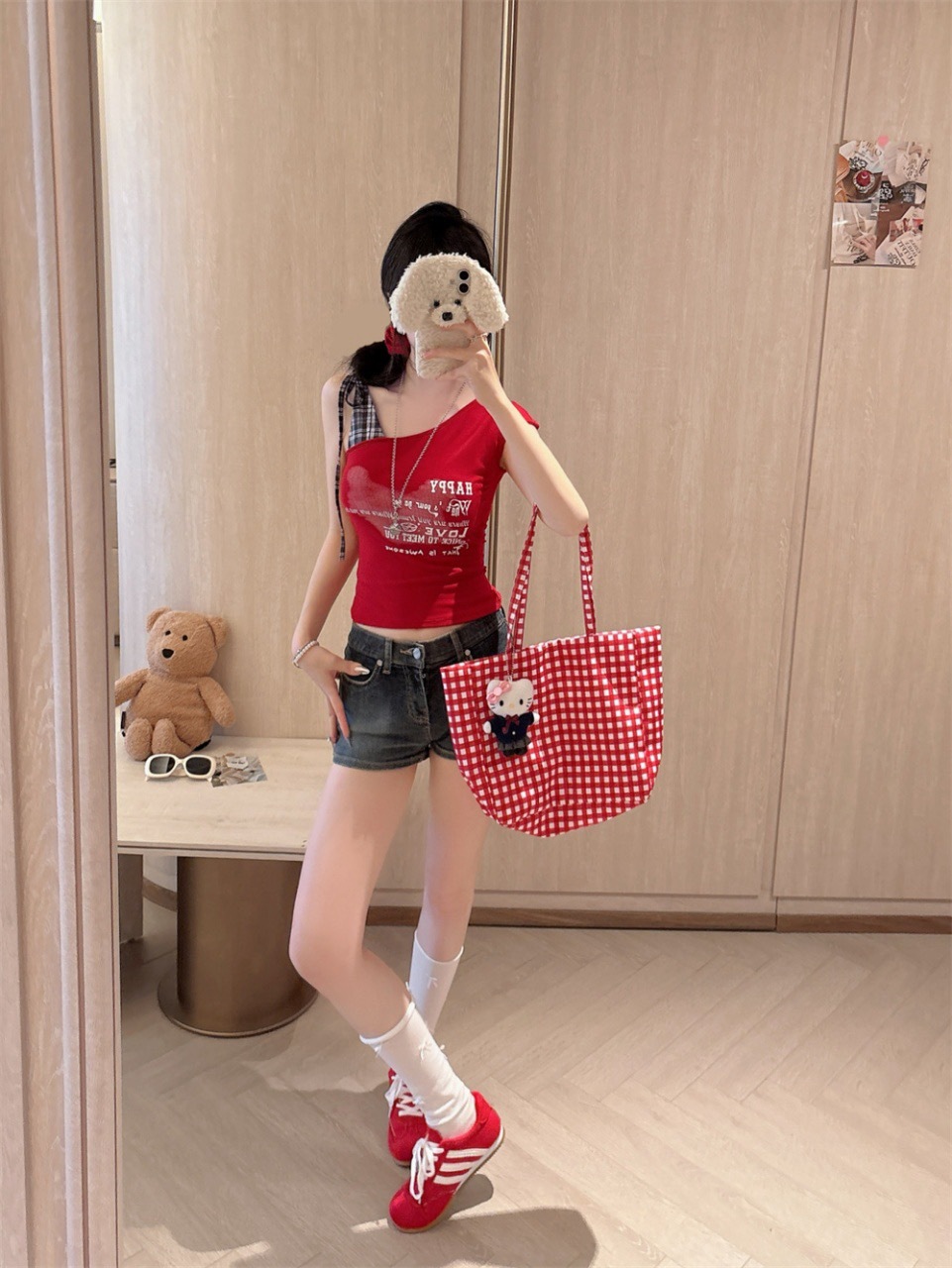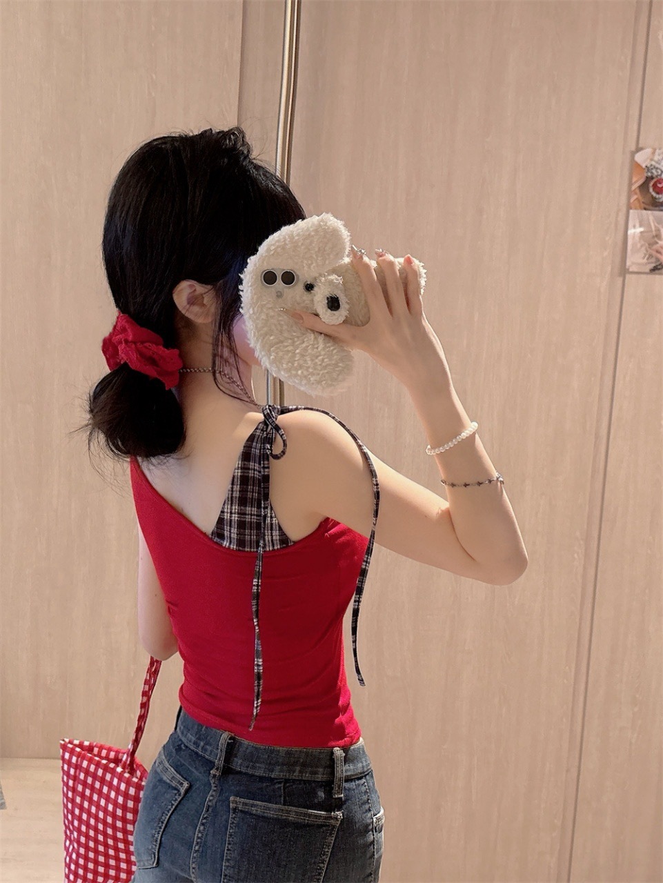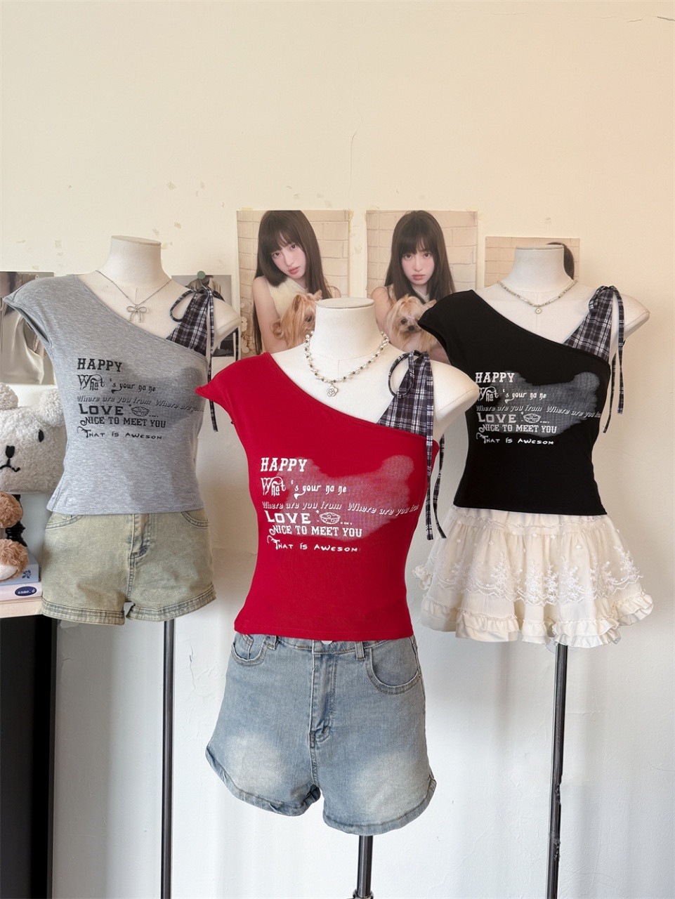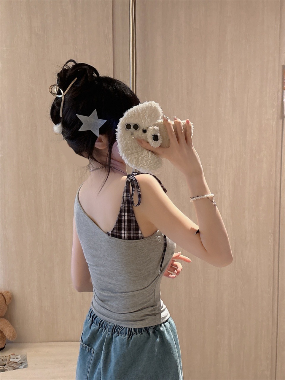 5146 # 인모 레터 프린트 스플라이싱 핫걸의 아름다운 등 부분은 스트랩 조끼로 착용 가능하며 핫걸 탑으로도 착용 가능