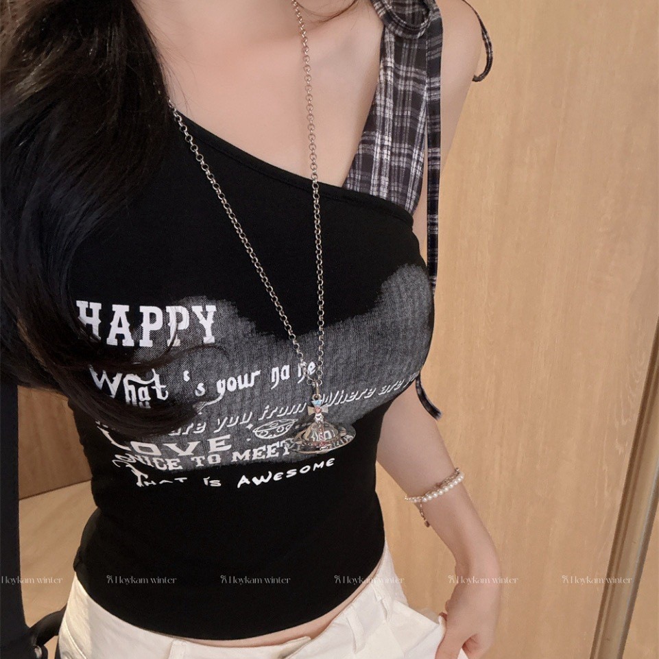 5146 # 인모 레터 프린트 스플라이싱 핫걸의 아름다운 등 부분은 스트랩 조끼로 착용 가능하며 핫걸 탑으로도 착용 가능스토어 가기