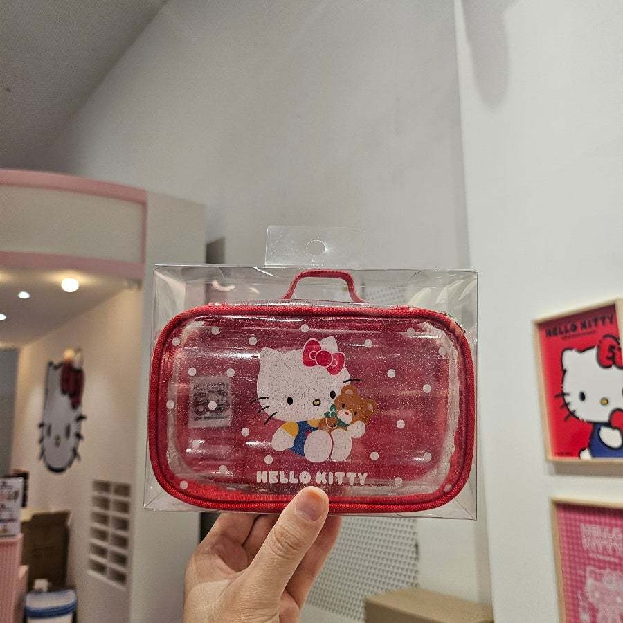 일본 만화 프린트 KT 고양이 수납 가방 대용량 투명 PVC 방수 화장품 가방 휴대용 세면도구 가방스토어 가기