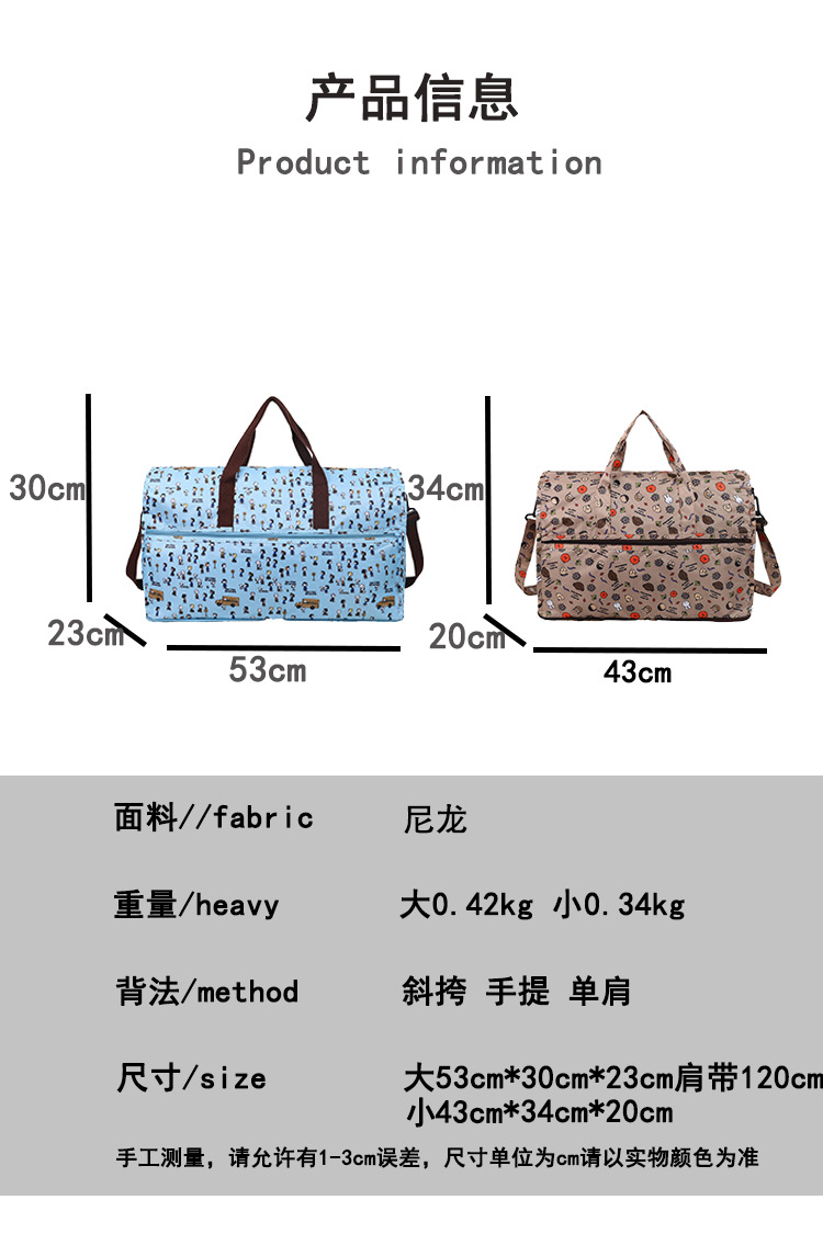 접이식 여행 가방 일본 새로운 귀여운 만화 인쇄 대용량 핸드백 캐주얼 휴대용 수하물 가방