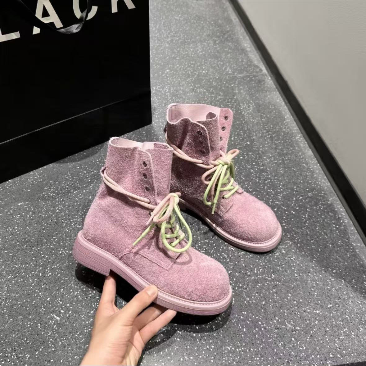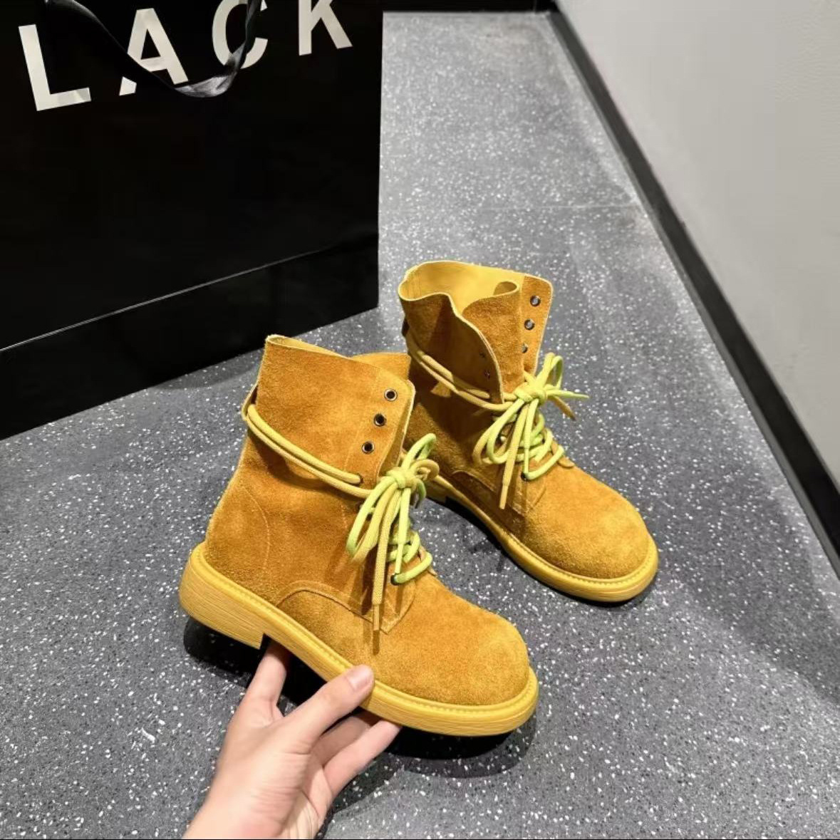 여성용 1층 소가죽 두꺼운 밑창 마틴 부츠, 패셔너블하고 다재다능한 새로운 영국 스타일 작업복, 여성용 야외 등산 오토바이 숏부츠스토어 가기