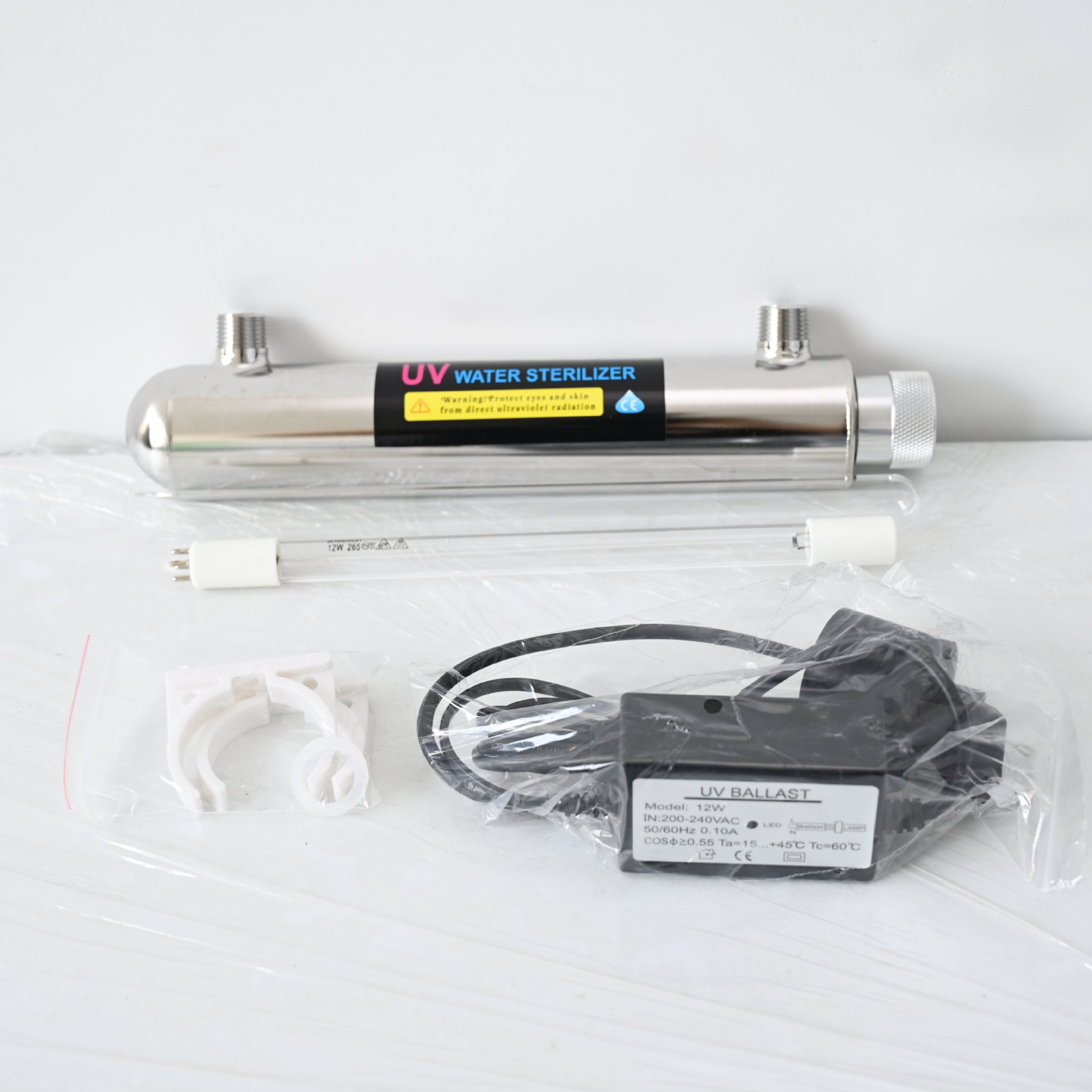 정수기 수처리 자동 판매기 220V12W 스테인레스 스틸 파이프라인 유형 UV 자외선 하수 소독 및 살균