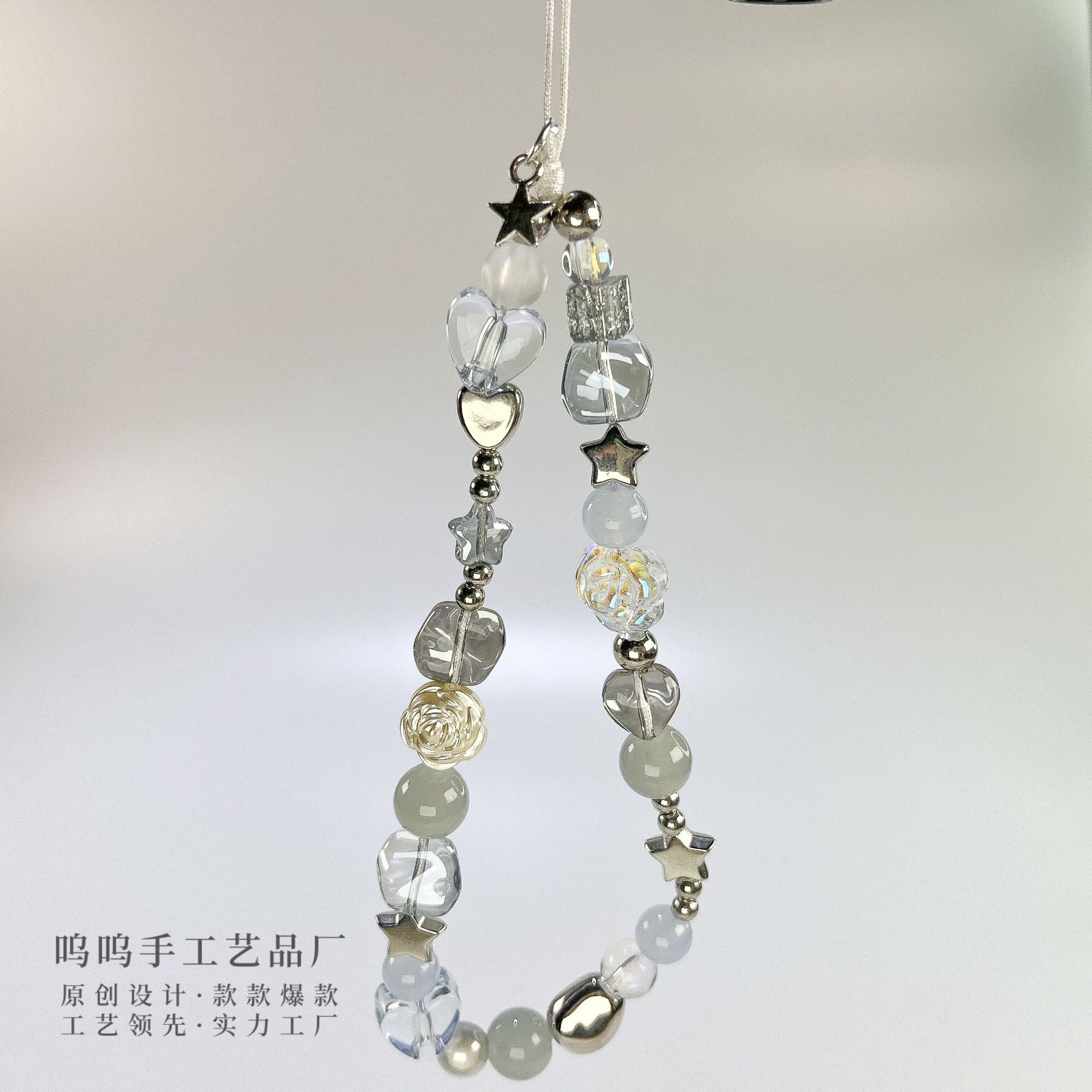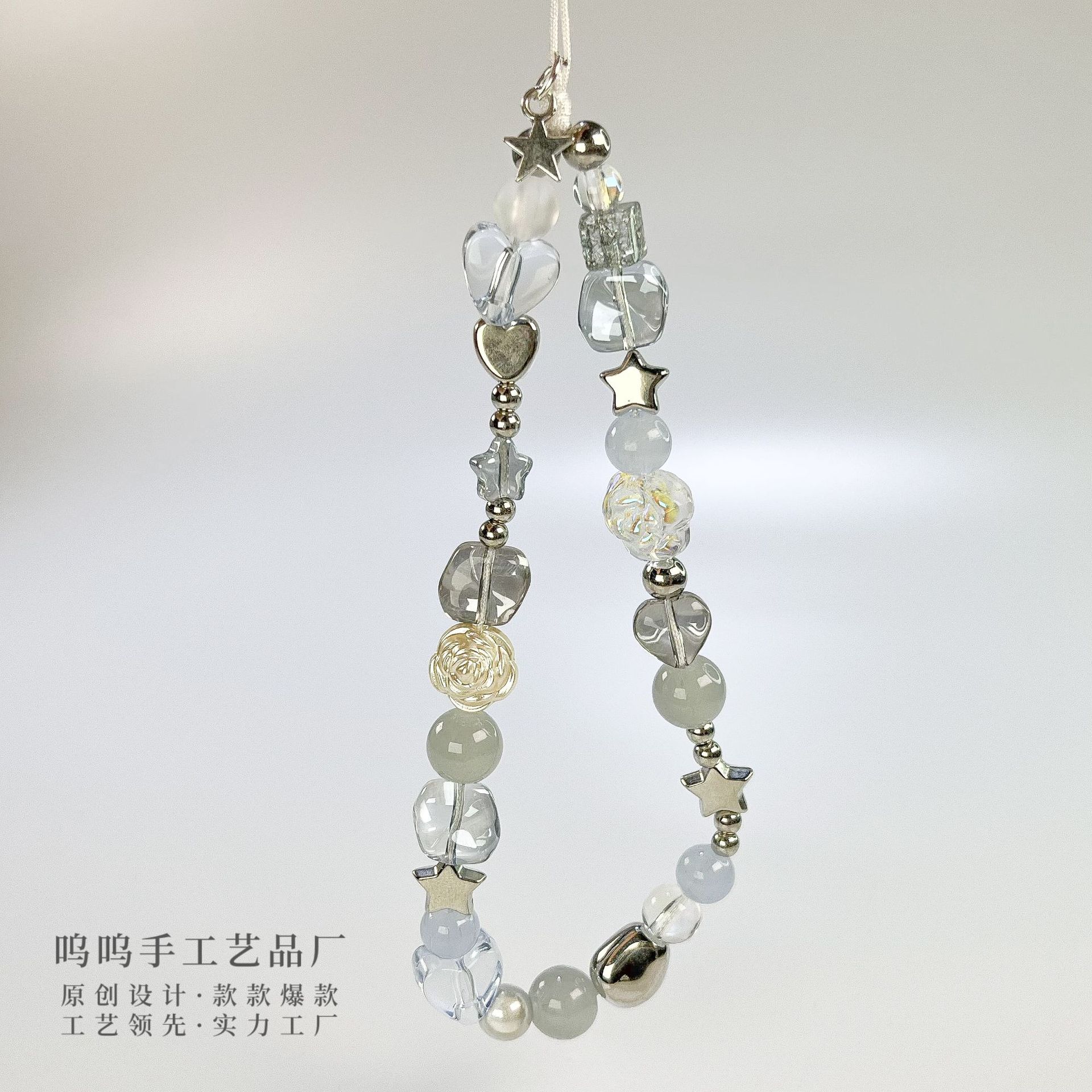 유럽과 미국의 인기 회색과 파란색 별이 빛나는 하늘 휴대폰 체인, 작고 신선한 DIY 카메라 체인 펜던트, 다재다능한 소녀 하트 휴대폰 체인스토어 가기