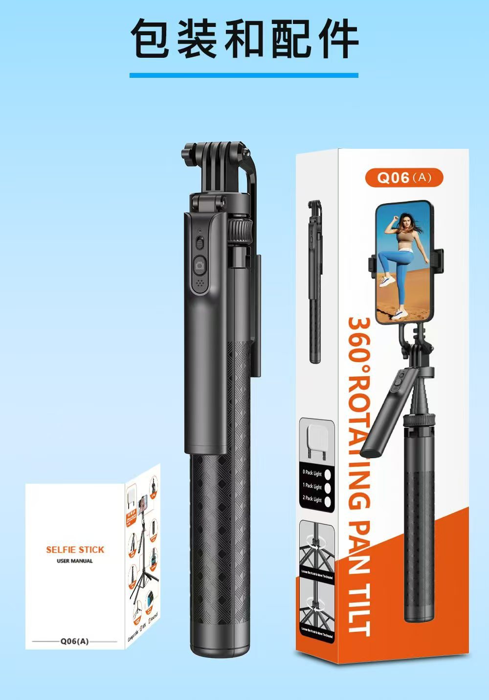 Q06 블루투스 셀카봉 1.8m 범용 플로어 스탠딩 삼각대 셀카 아티팩트 360도 회전 짐벌 휴대용 여행