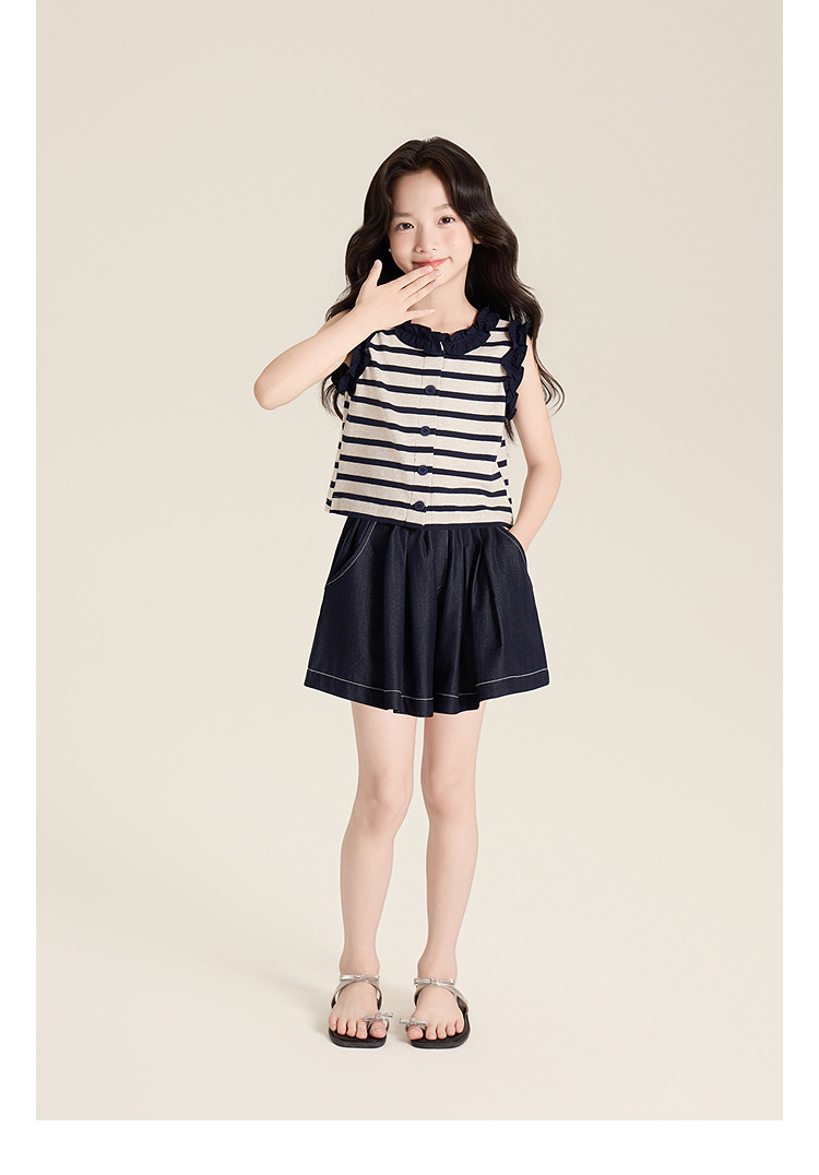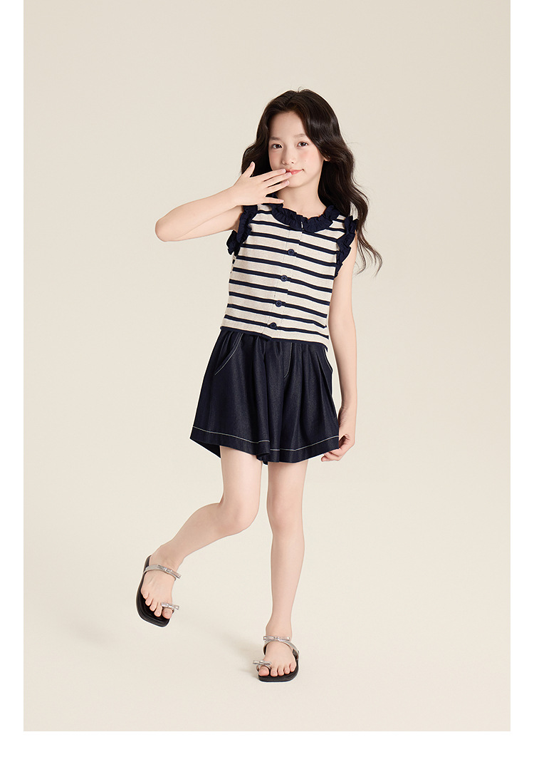 Amybaby 여자 바지 여름 2025 새로운 미국 복고풍 탄성 가볍고 통기성 캐주얼 데님 반바지