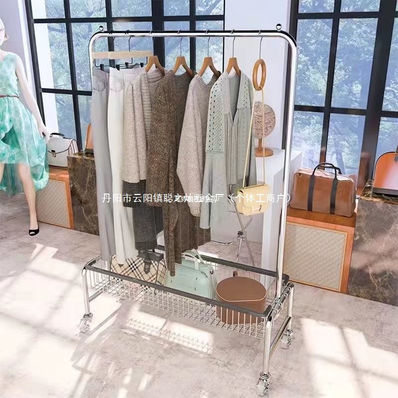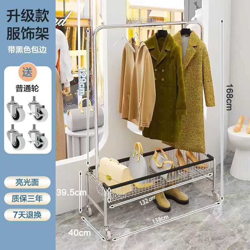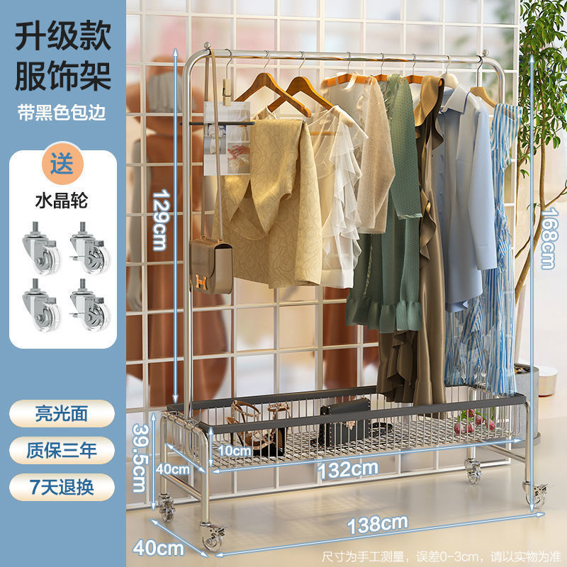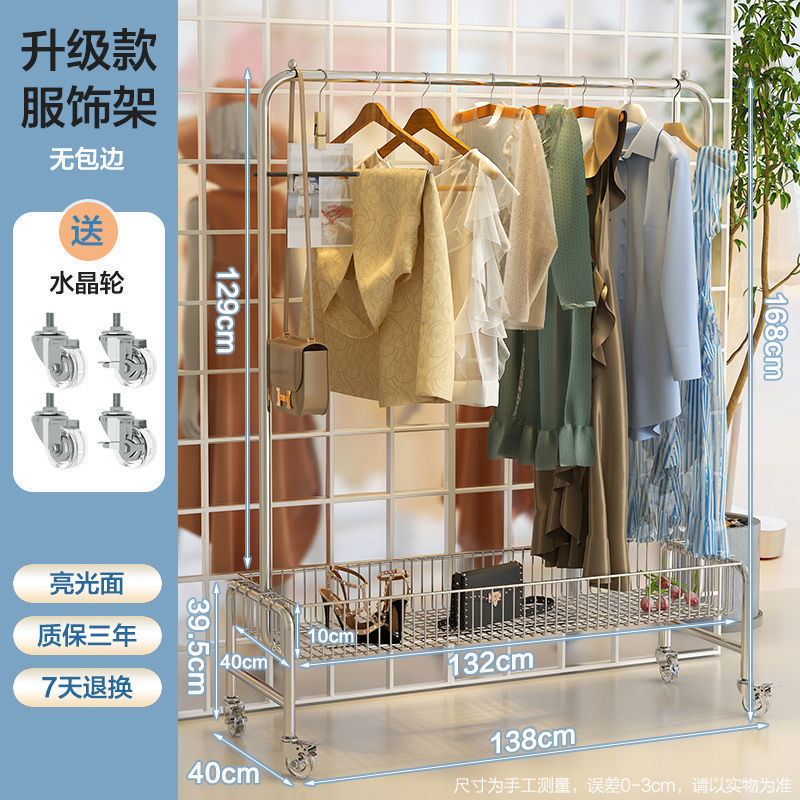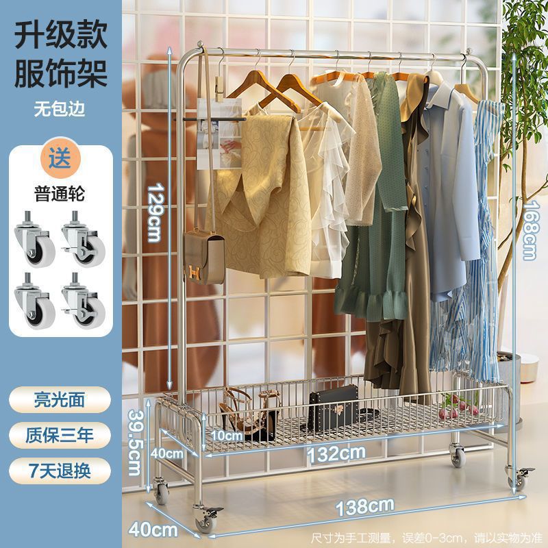 스테인레스 스틸 바닥 걸이 옷걸이 이동식 다기능 스토리지 랙 의류 매장 빨간색 침실 바구니 스토리지 랙스토어 가기