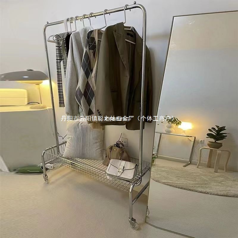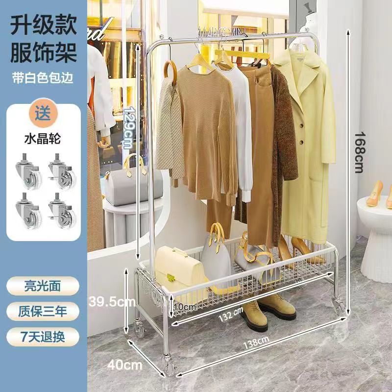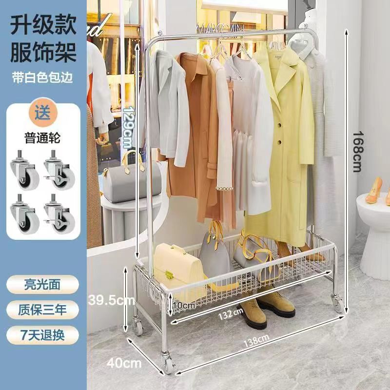 스테인레스 스틸 바닥 걸이 옷걸이 이동식 다기능 스토리지 랙 의류 매장 빨간색 침실 바구니 스토리지 랙