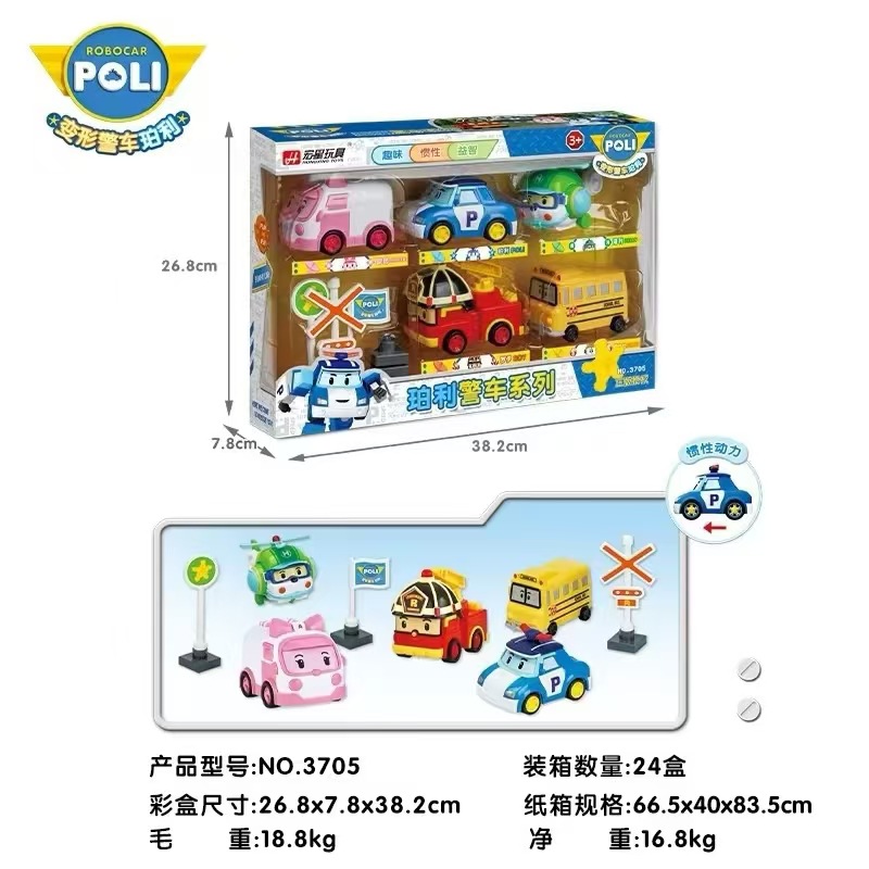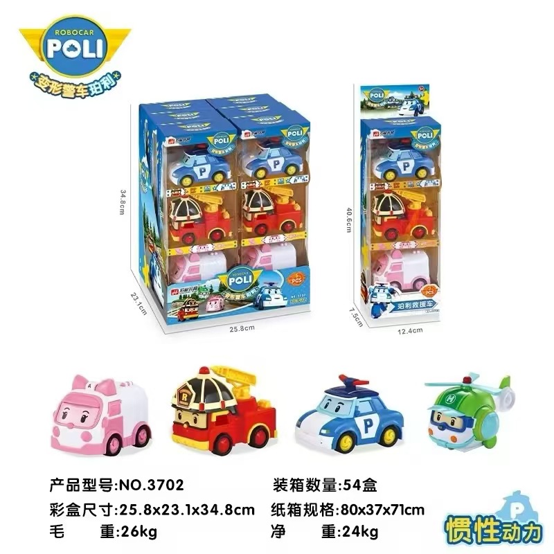 변형 경찰차, 퍼리 구조차, 로이 소방차, 암바 구급차, 헬리콥터, 관성차, 어린이 장난감