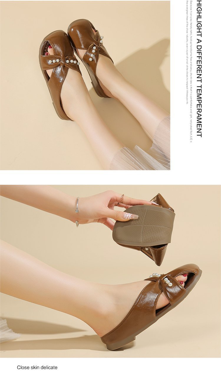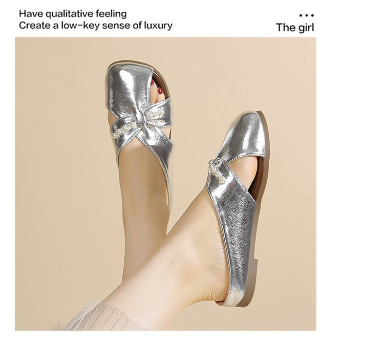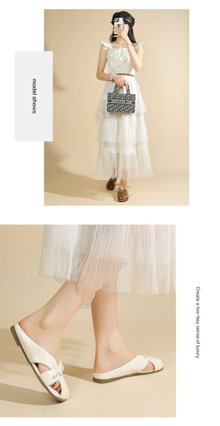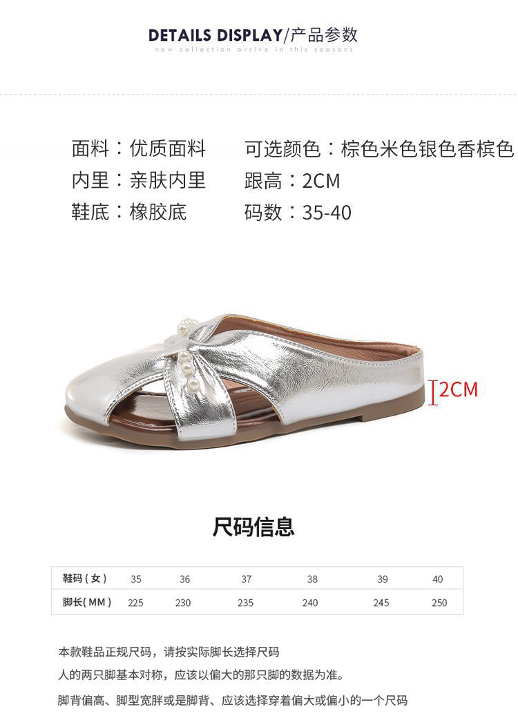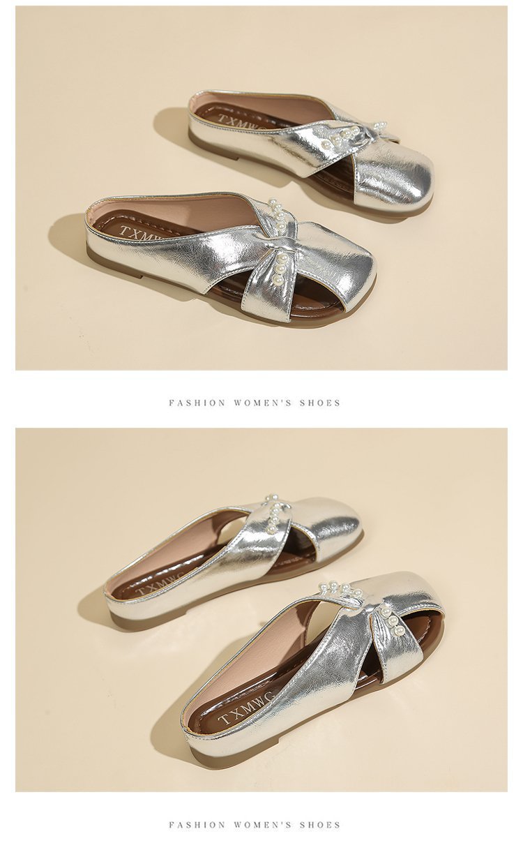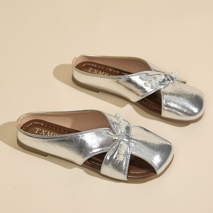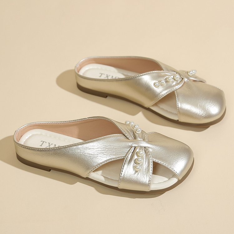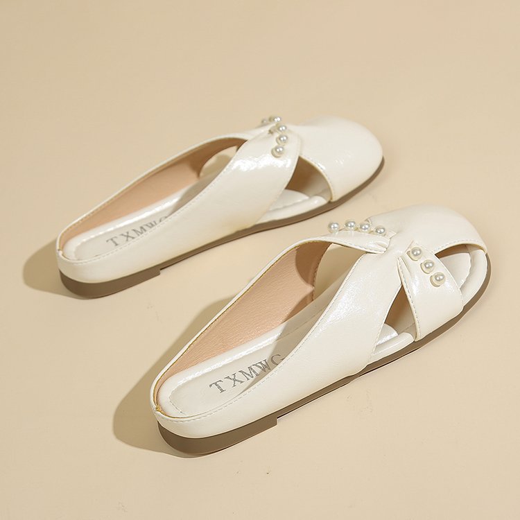 여성용 바오터우 하프 슬리퍼 2025 신상 여름 아우터 게으른 슬립온 부드러운 진주 플랫 캐주얼 샌들스토어 가기