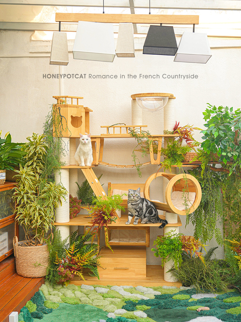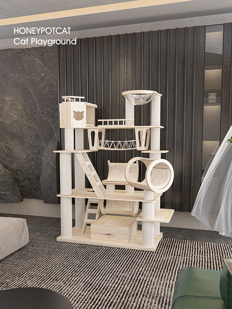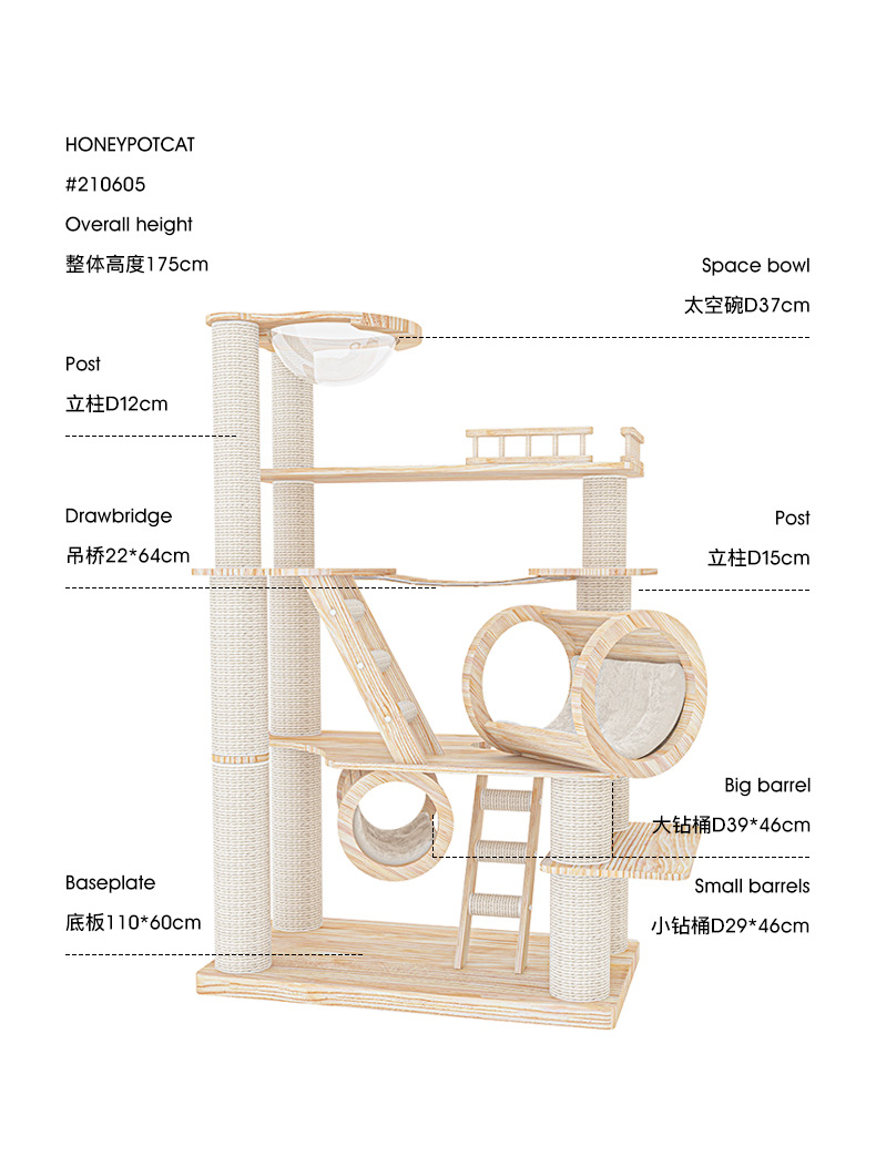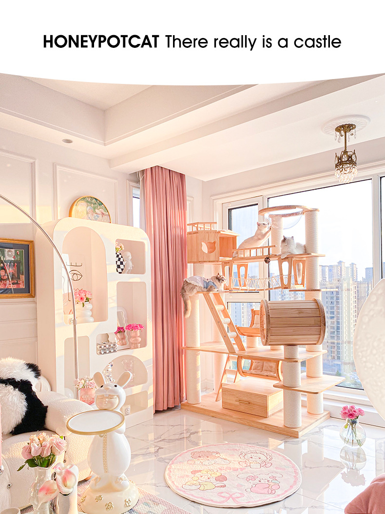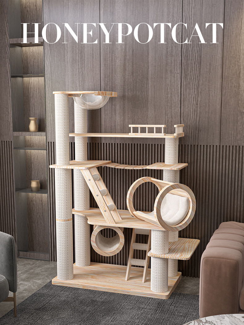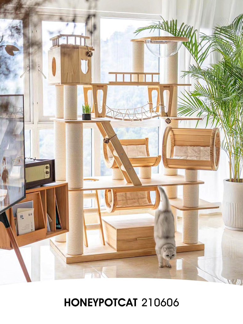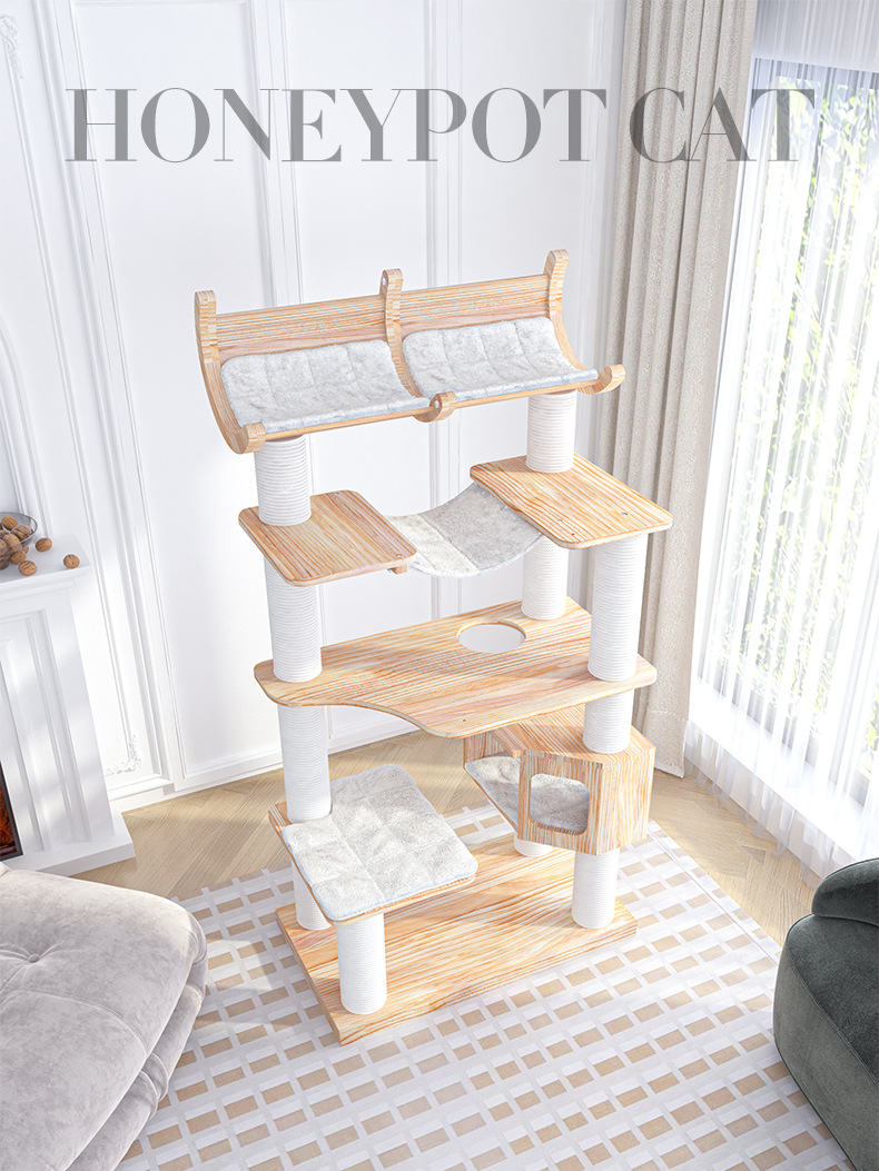 허니팟 고양이 클라이밍 프레임 고양이 둥지 고양이 트리 일체형 초대형 원목 고양이 성 고양이 나무 고양이 프레임 고양이 빌라 210606