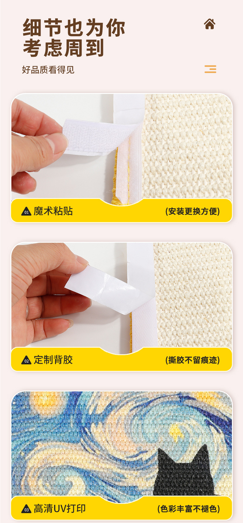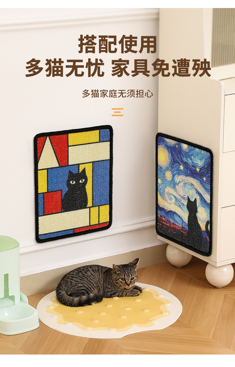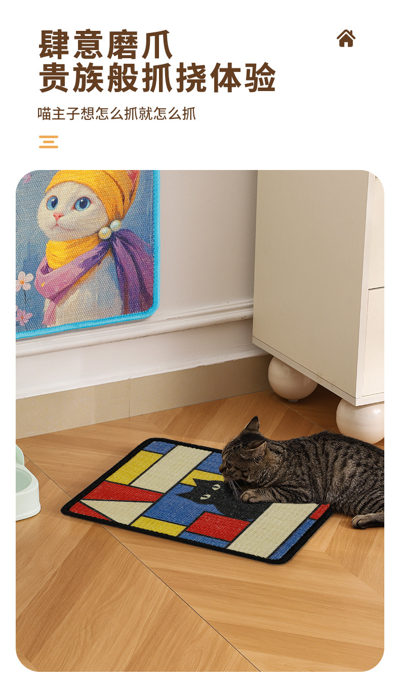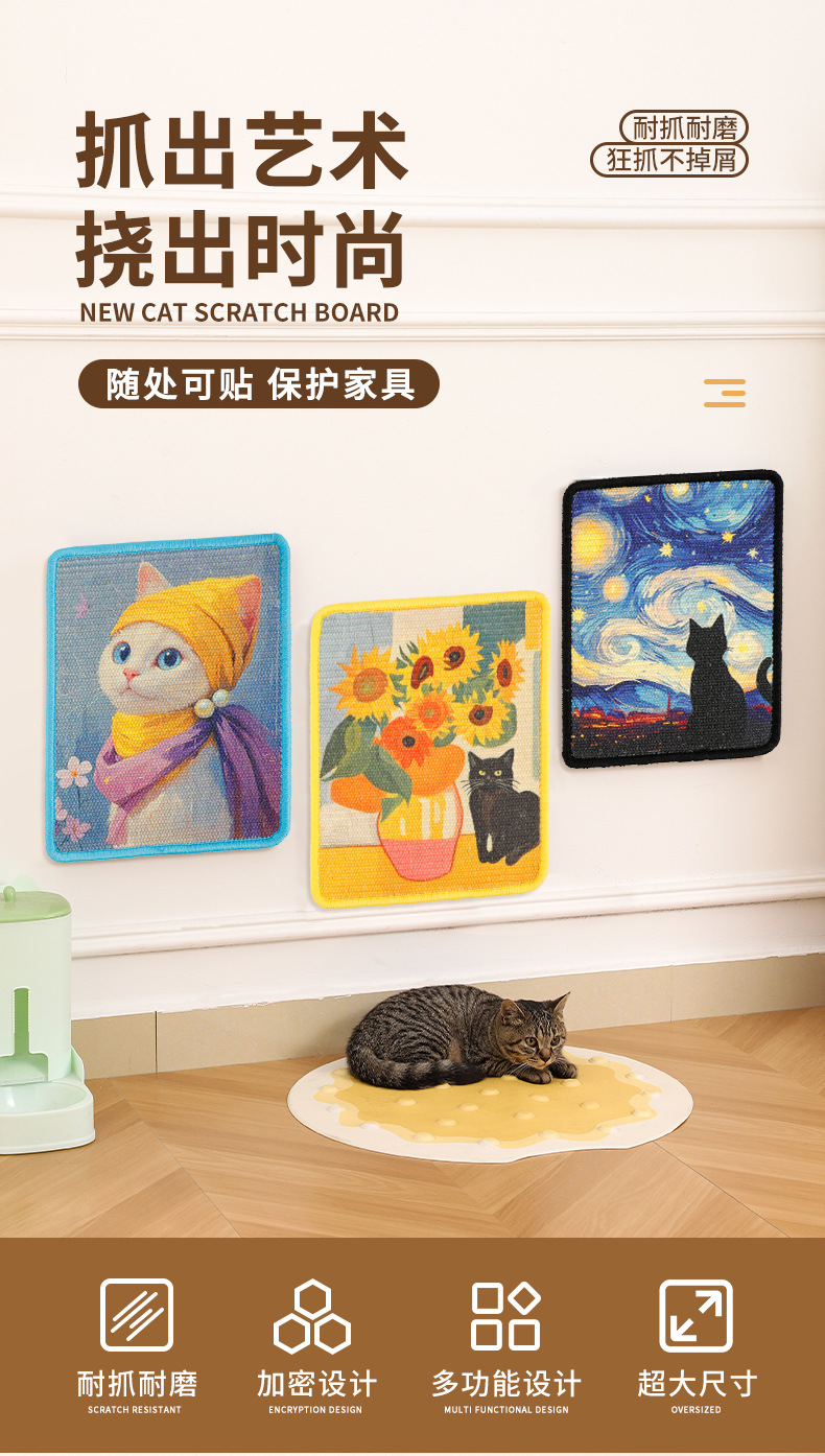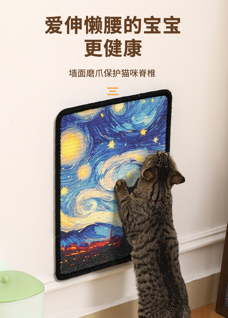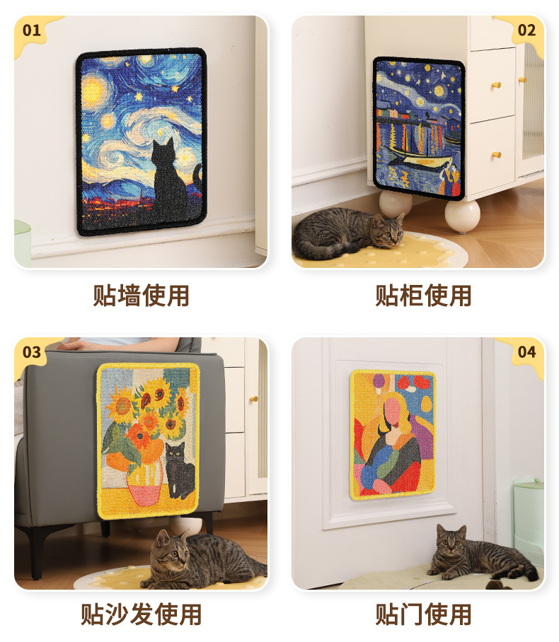 特点3:做成油画样式,图案丰富,使用的颜料也多为无毒环保型,对猫咪健康无危害,也符合环保理念,能作为装饰融入家居环境,兼具实用性与美观性产品规格:38*30*0.5cm