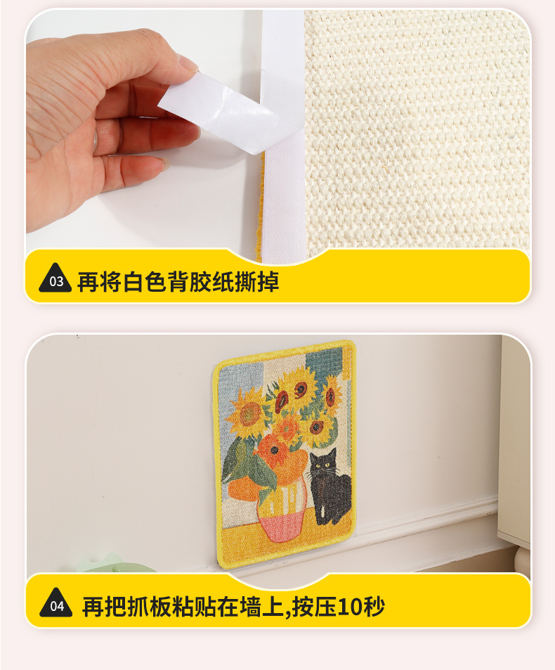 特点2:表面有粗糙纹理,能深度满足猫咪磨爪需求,尤其适合喜欢 “纵向抓挠”(站立抓挠)的猫咪,还可保护家具侧面不被抓挠。
