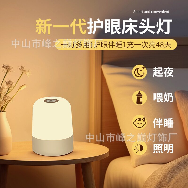 충전식 야간 조명, 침실 수면 부드러운 빛 터치 침대 옆 램프, 아기 수유, 수면 동반자, 눈 보호, 긴 배터리 수명 야간 조명
