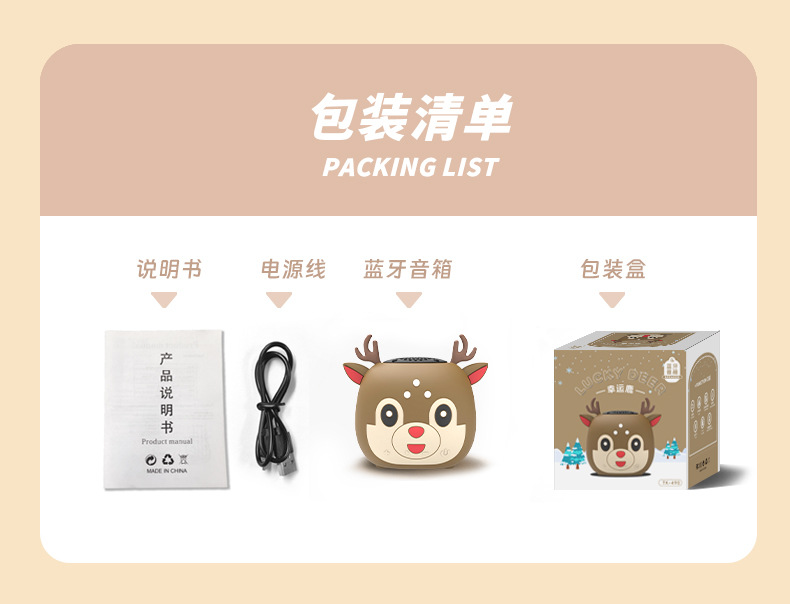 새로운 만화 귀여운 행운의 사슴 블루투스 스피커 오디오 휴대용 작은 오디오 선물 선물 작은 스피커스토어 가기