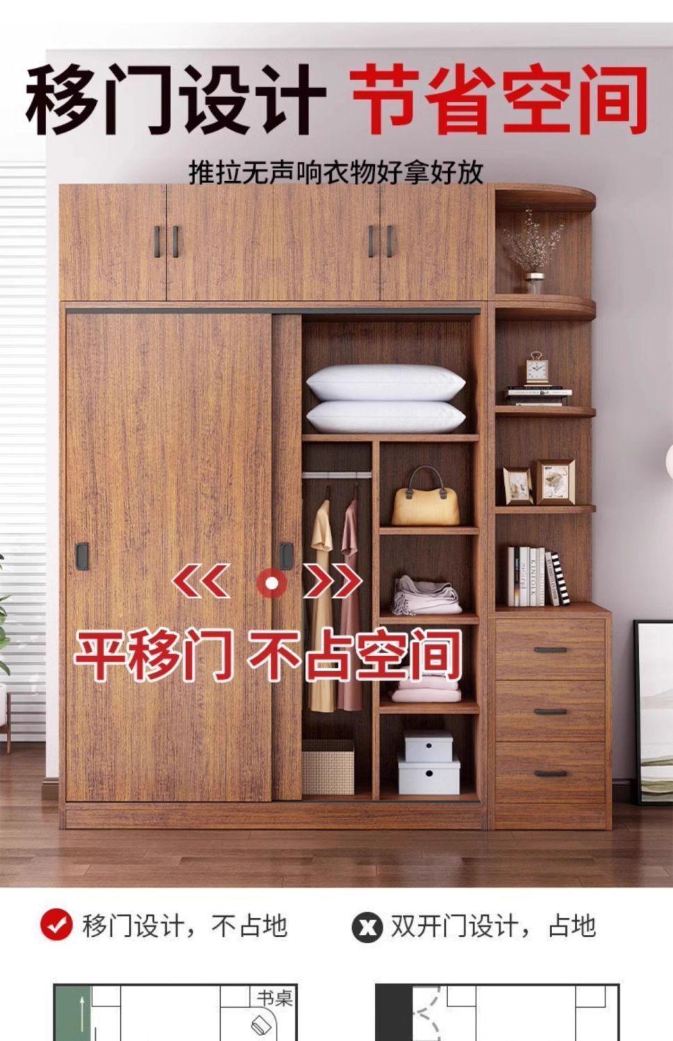 Jmo 간단한 캐비닛 대형 옷장 경제적 인 옷장 침실 슬라이딩 도어 옷장 임대실 보관함스토어 가기