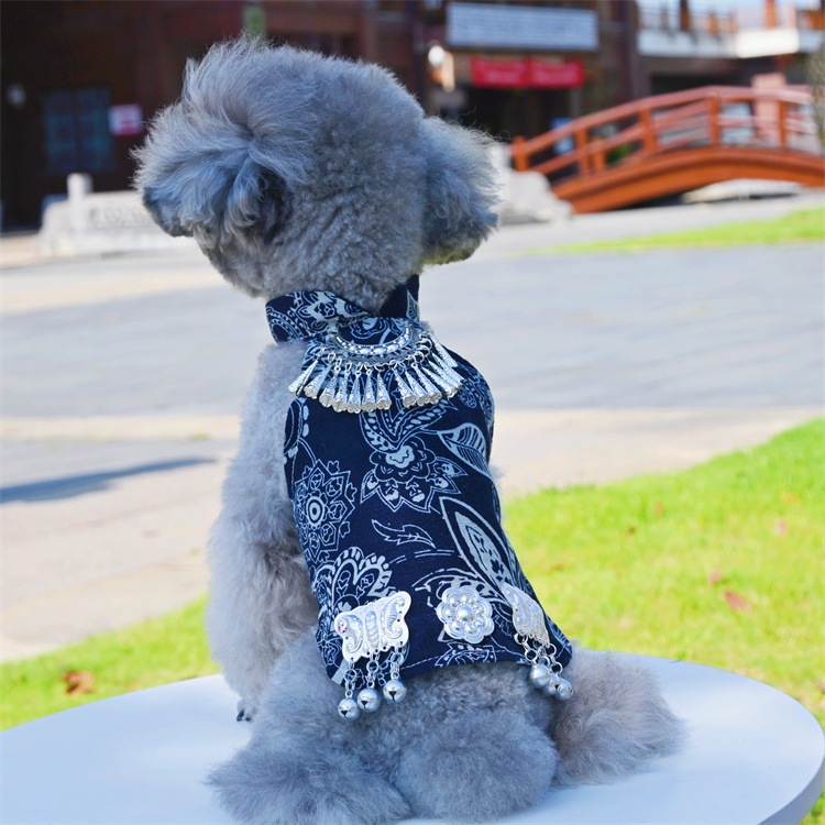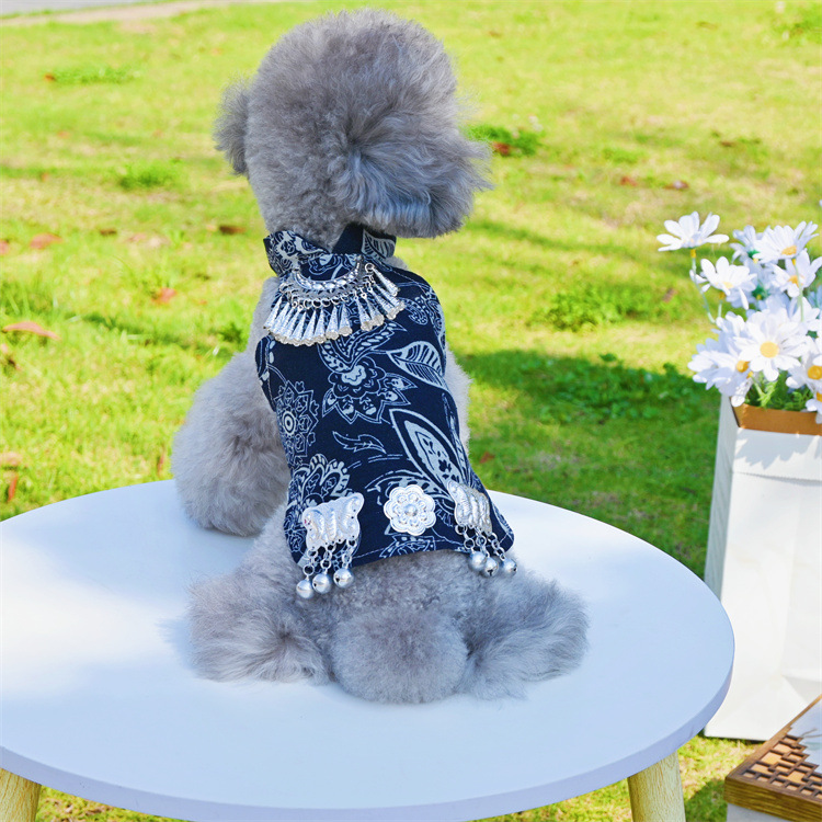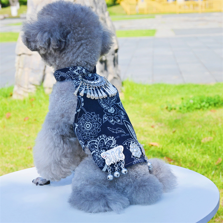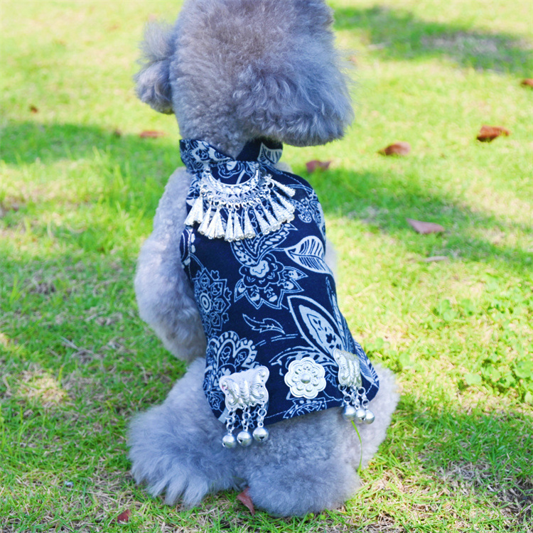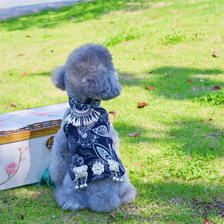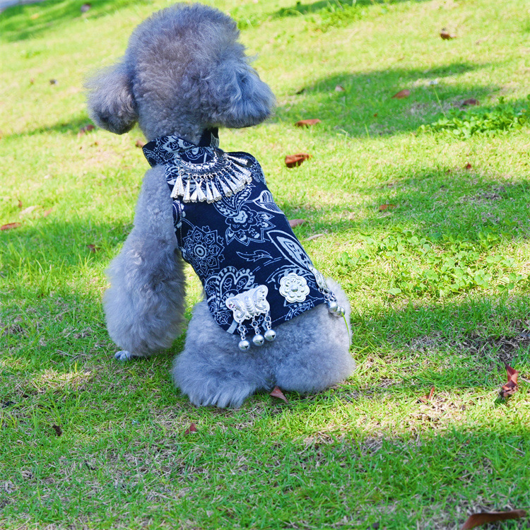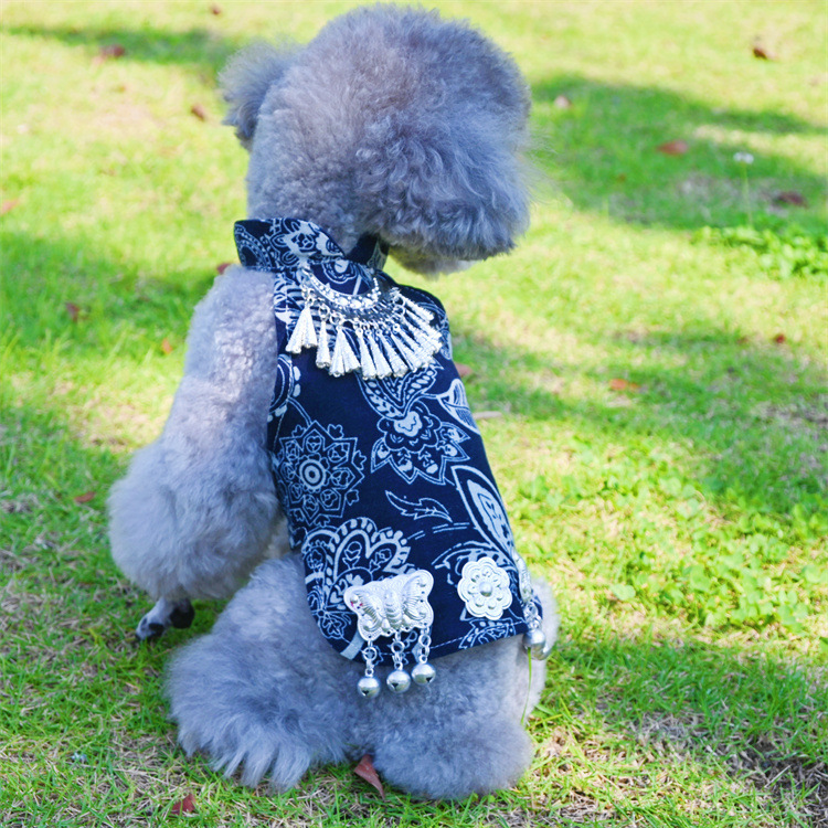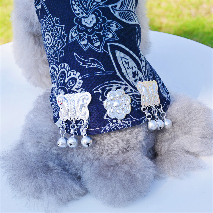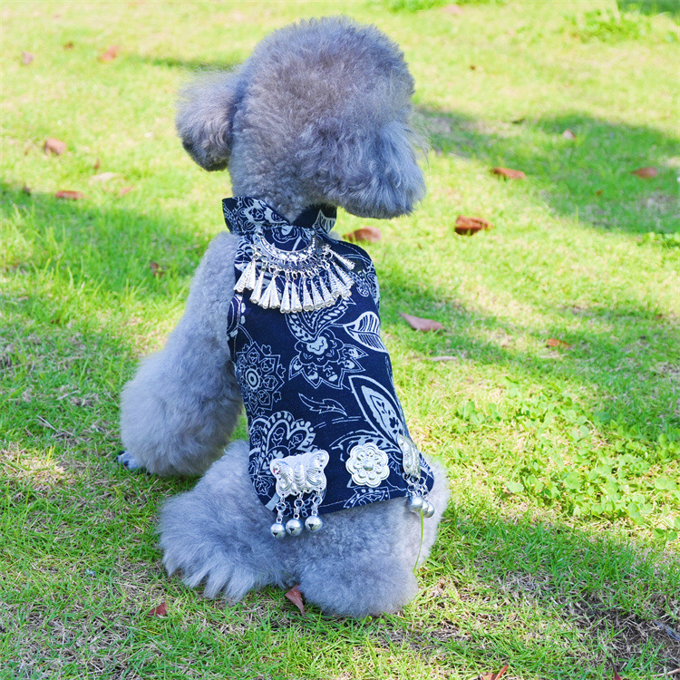 XXL胸围 55 背长 40 脖围37建议16斤以内新款宠物民族服装,棉麻数码印花面料,复古民族风苗族仿苗银饰品搭配,做工细致!店铺仅支持七天无理由!有质量问题的商品请7天内与客服联系,过期不予处理!现货一般48小时内发出,默认申通快递!印花面料每件衣服图案不唯一,介意慎拍!