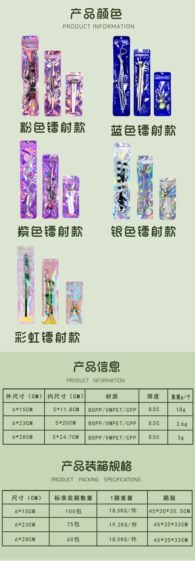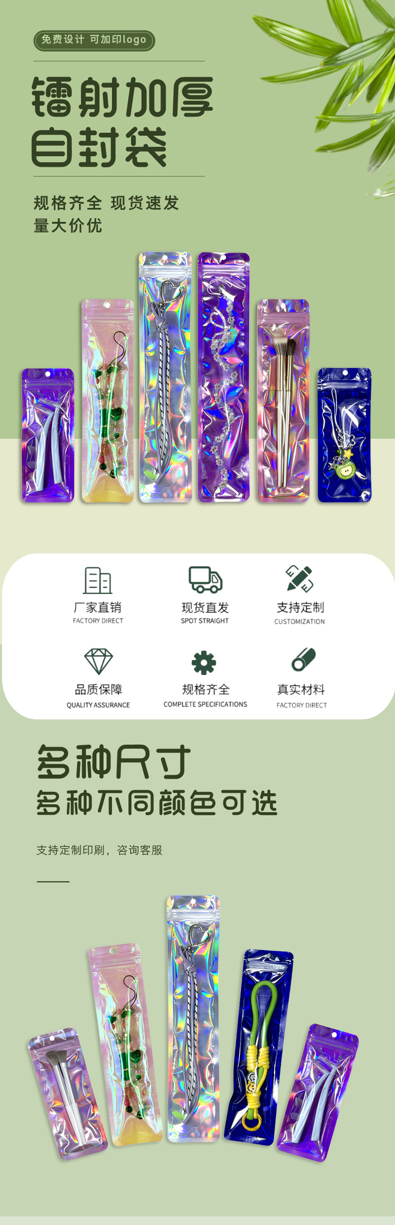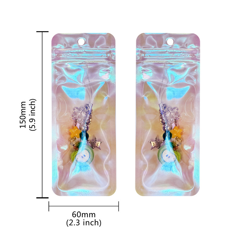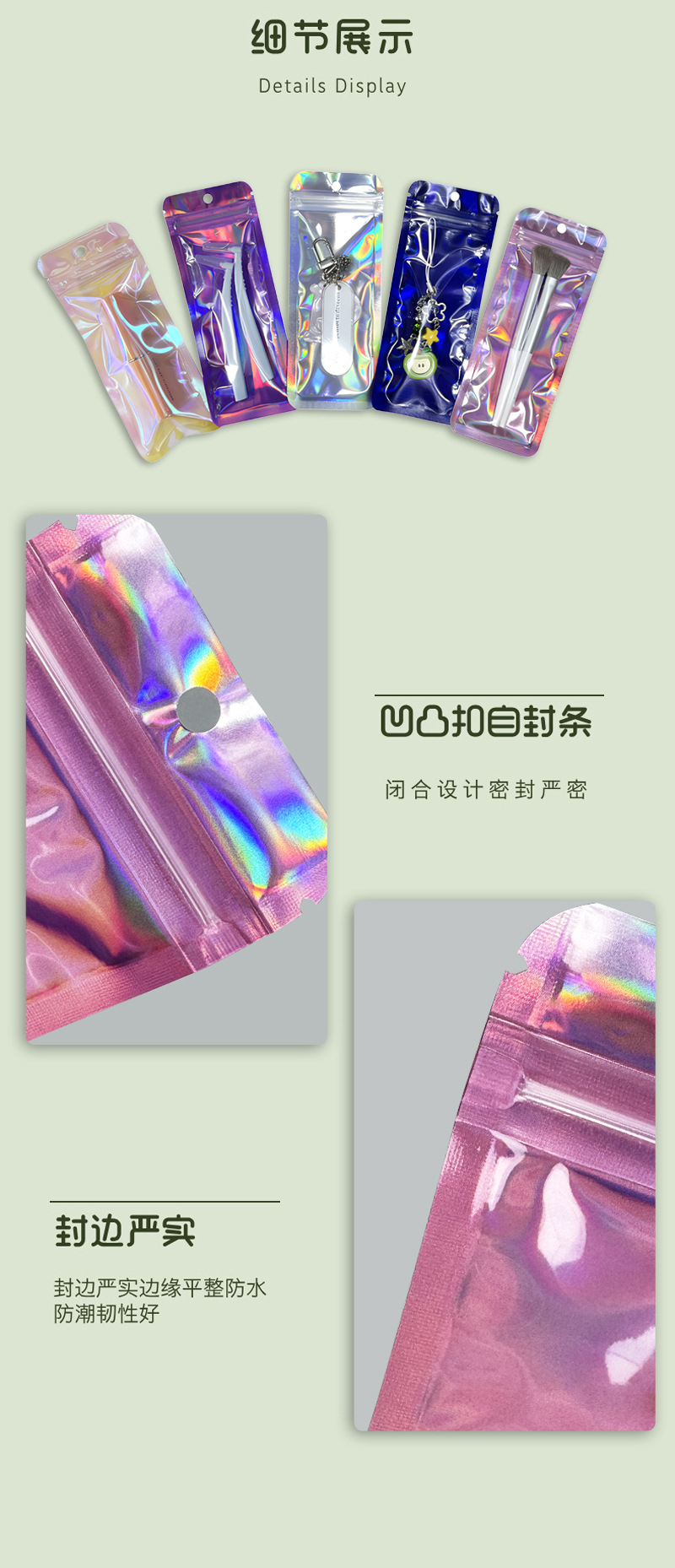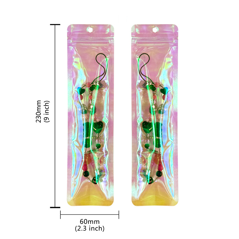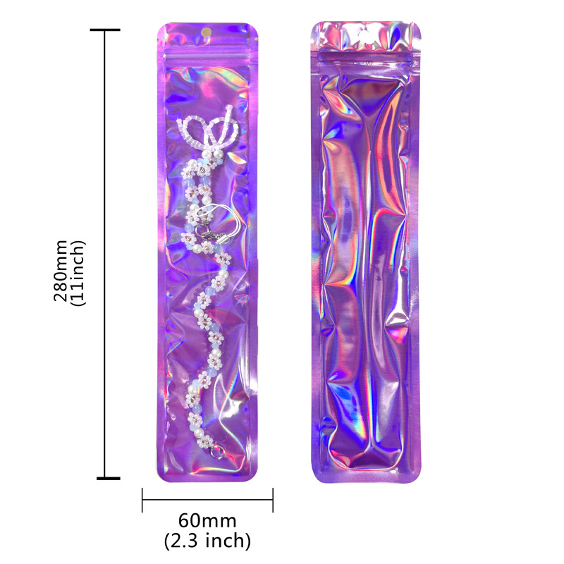 걸이 구멍이 있는 긴 밀봉 백, 두꺼운 레이저 반투명 음양 지퍼백, 보석 데이터 케이블, 메이크업 브러쉬 포장 백스토어 가기