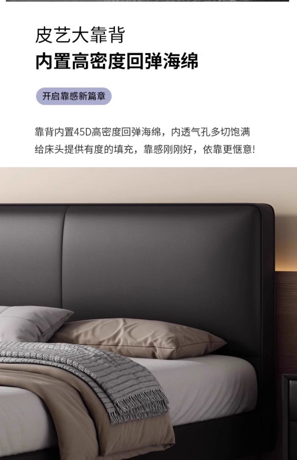 북유럽 가벼운 고급 가죽 침대, 현대적이고 심플한 마스터 침실 더블 침대, 고급스럽고 분위기 있는 가정용 부드러운 패키지 단단한 나무 대형 침대 웨딩 침대스토어 가기