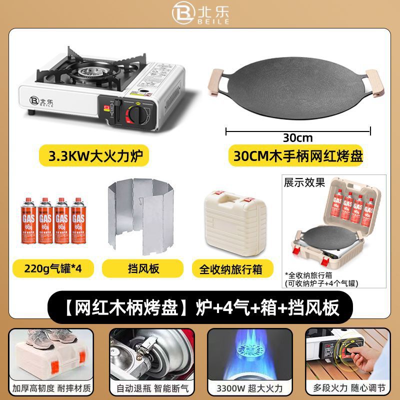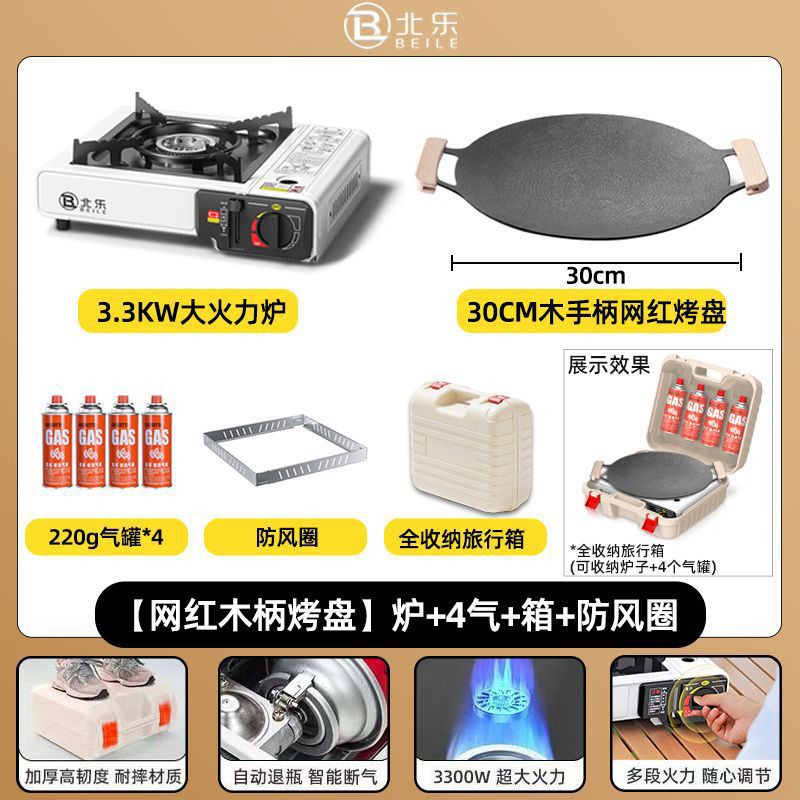 • ↑[나무 손잡이 베이킹 팬] 강한 스토브 + 가스 4개 + 상자 + 방풍 링---느린 손