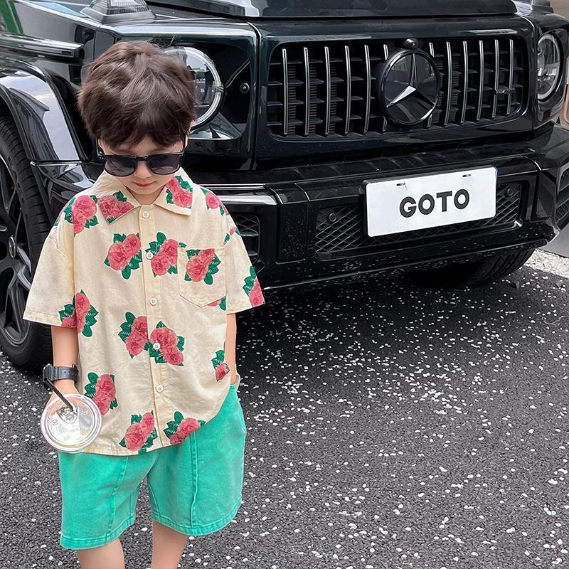 소년 셔츠 여름 셔츠 반팔 반바지 정장 잘 생긴 2025 홍콩 스타일 소년 해변 휴가 어린이 트렌드스토어 가기