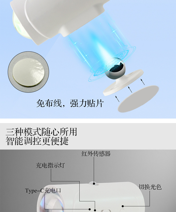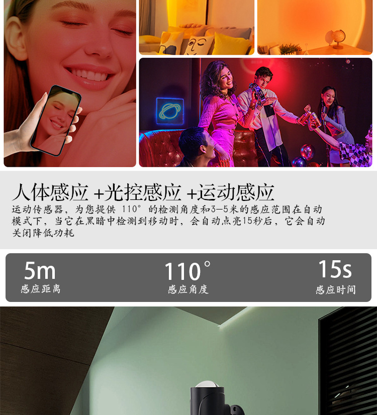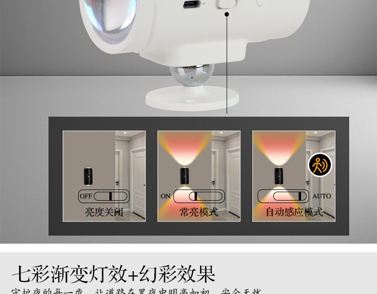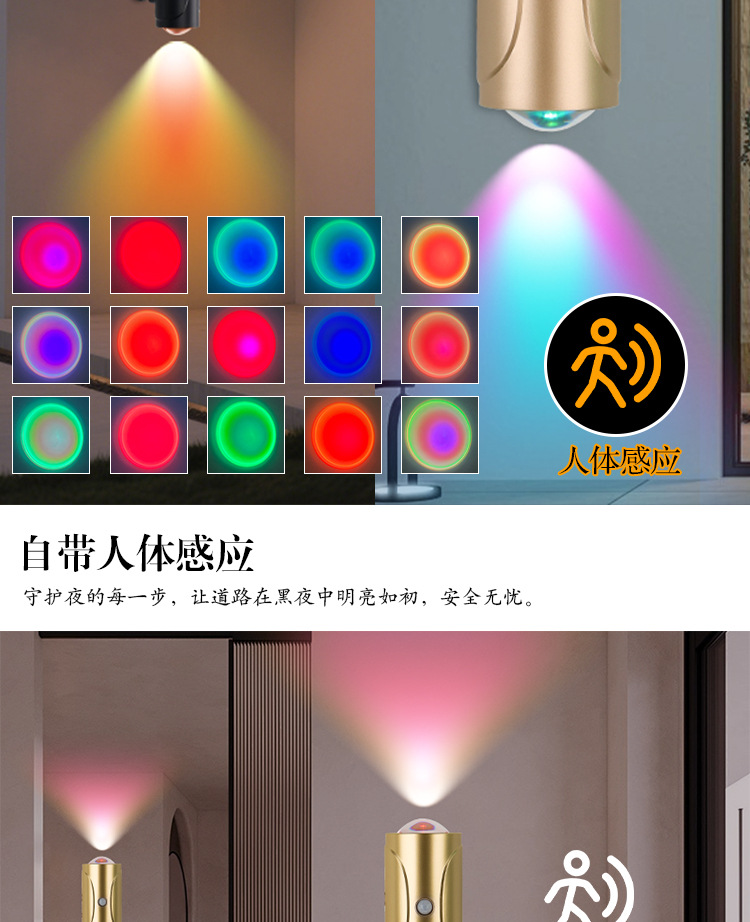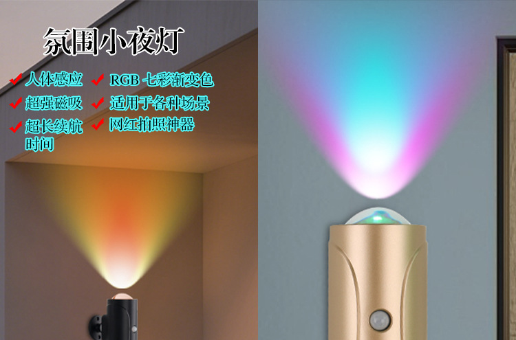 새로운 국경 간 다채로운 그라데이션 램프 분위기 야간 조명 지능형 인체 유도 충전식 자기 매직 컬러 벽 램프