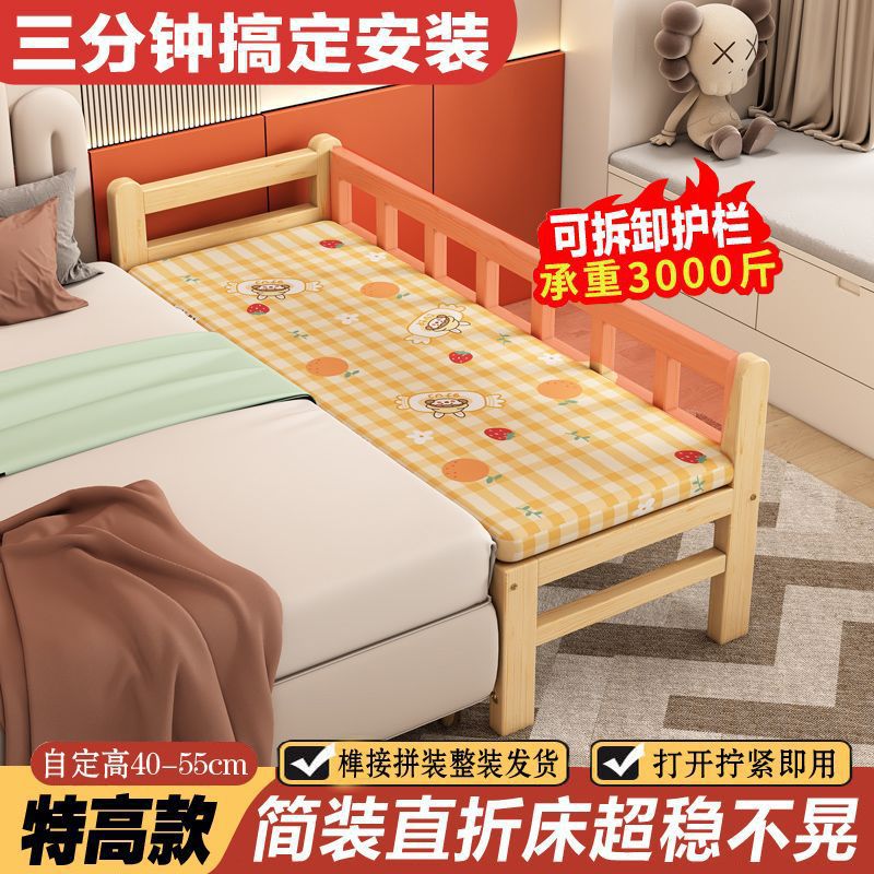 단단한 나무 성인 접합 침대 접이식 침대 설치가 필요 없음 가드 레일 포함 어린이 침대 소년 소녀 접합 대형 침대 유아용 침대스토어 가기