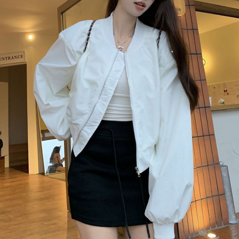 2025 루즈한 봄 작은 흰색 짧은 캐주얼 한국 스타일 새 야구 재킷 여성 재킷 탑