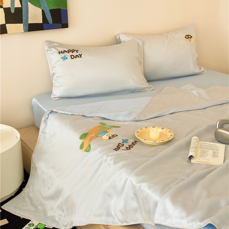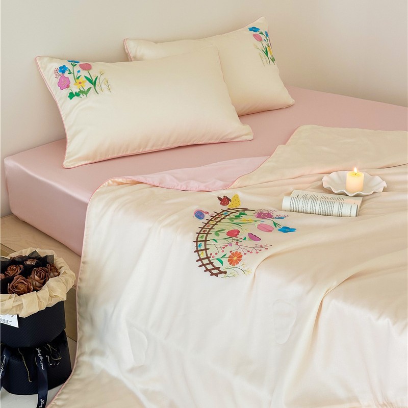 A类丝滑沁凉60支兰精天丝刺绣夏被/夏被四件套