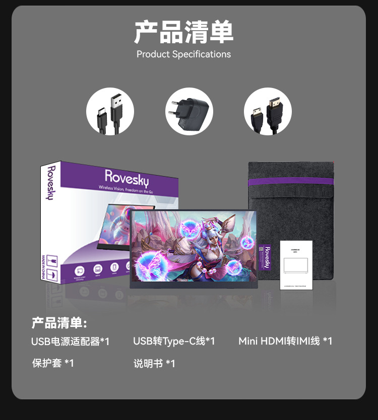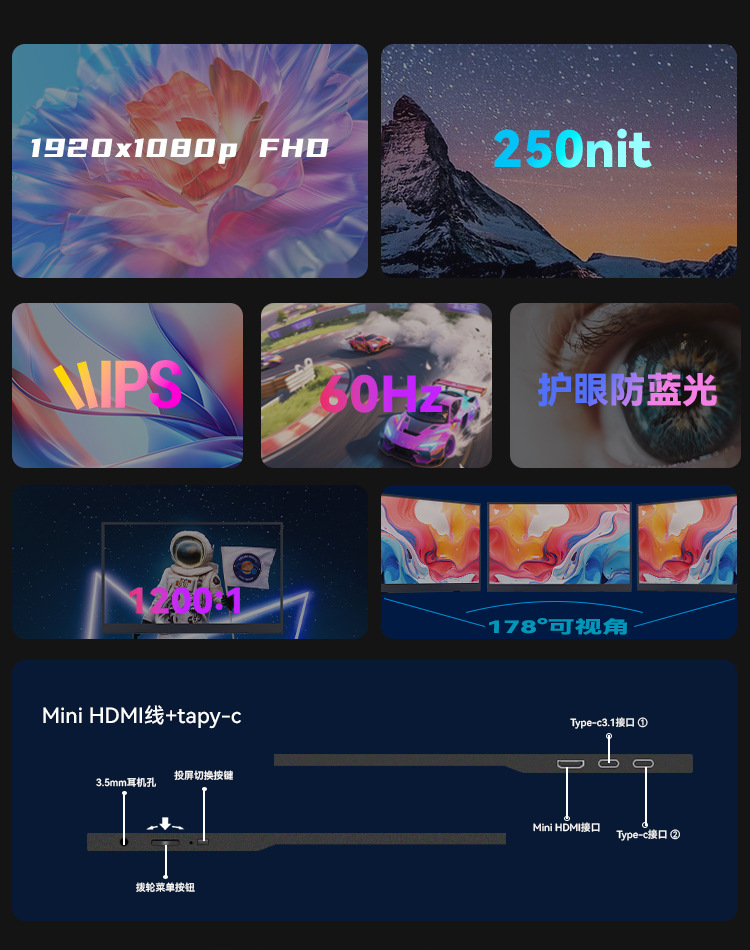 휴대용 화면 사용자 정의 무선 휴대용 1080*1920 LCD 무선 디스플레이 제조업체 지연 게임 화면 없음