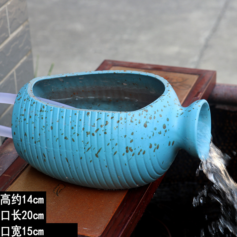 # 고대 생태 수조, 복고풍 흐르는 물 냄비, 안뜰 바닥 조경 장식품, 창의적인 구식 물통 연꽃