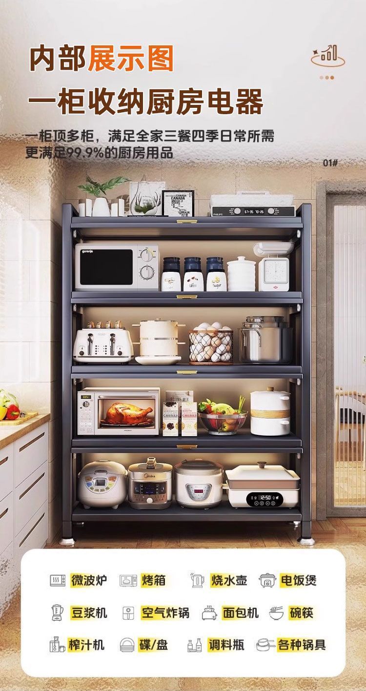 주방 캐비닛 강철 다층 보관 캐비닛 밥솥 전자 레인지 보관 랙 가정용 방진 캐비닛 찬장 보관 캐비닛