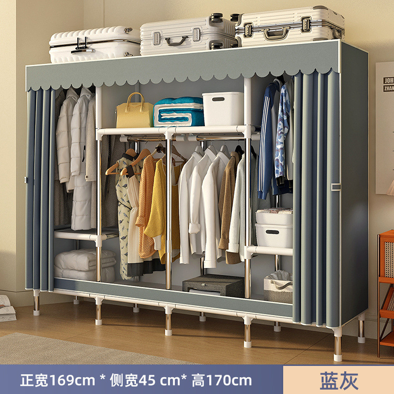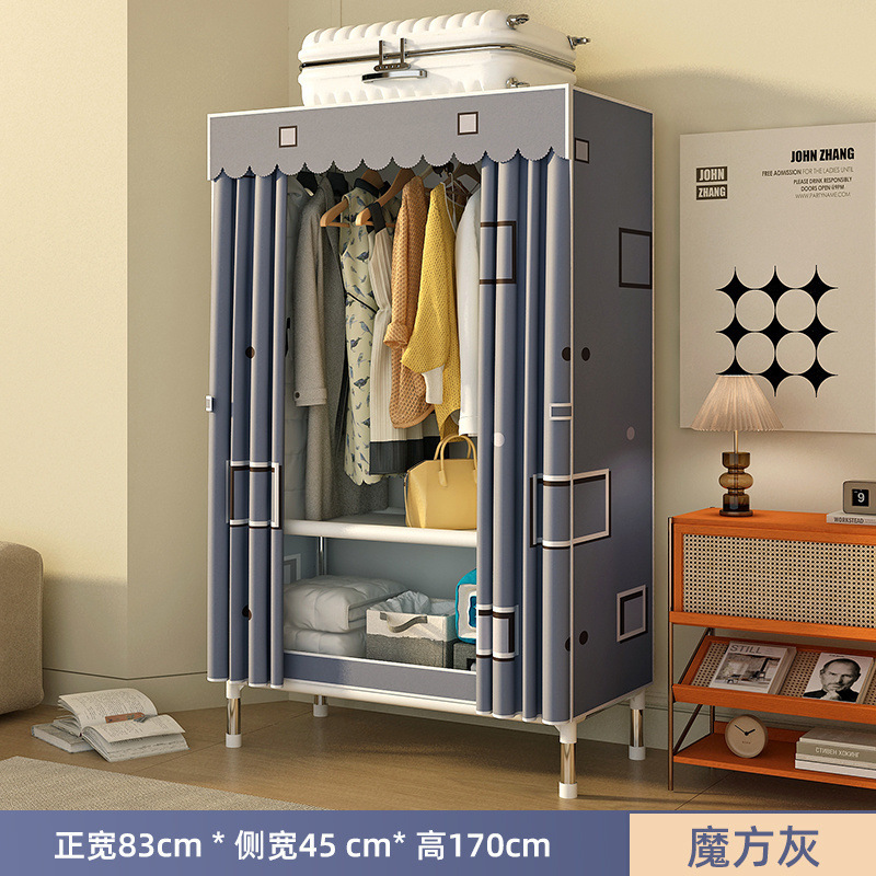 가정용 침실용 간단한 옷장 강철 프레임 두꺼운 강철 파이프 조립 천 옷장 임대실 튼튼하고 내구성이 뛰어난 캐비닛