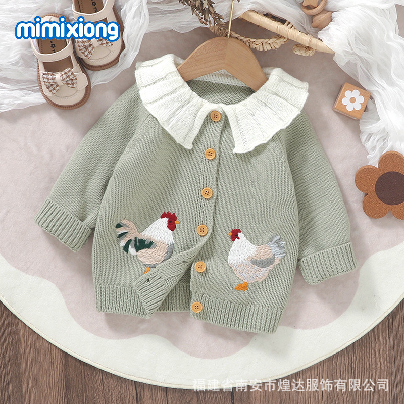 INS 뜨거운 판매 가을, 겨울 새로운 스타일 유아 옷깃 귀여운 병아리 수 놓은 니트 재킷 아기 소녀 다목적 탑스토어 가기