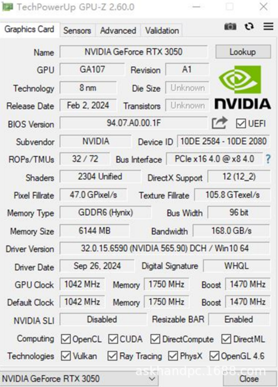 그래픽 카드 RTX3050 6G 데스크탑 업그레이드 게임 독립 디스플레이 e-스포츠 라이트 추적 라이브 방송 전문 디자인 게임