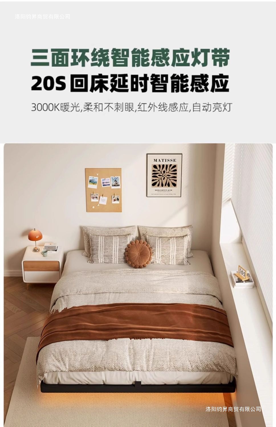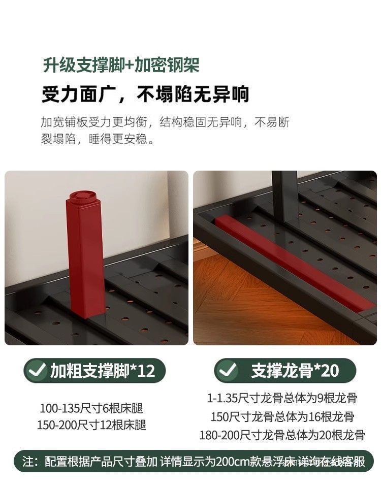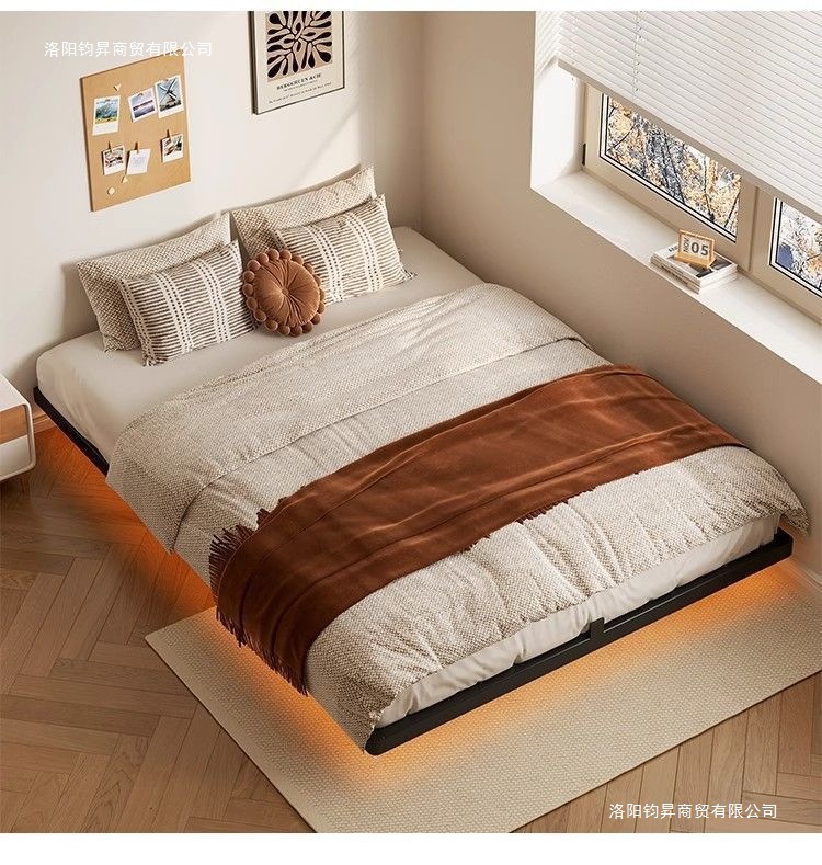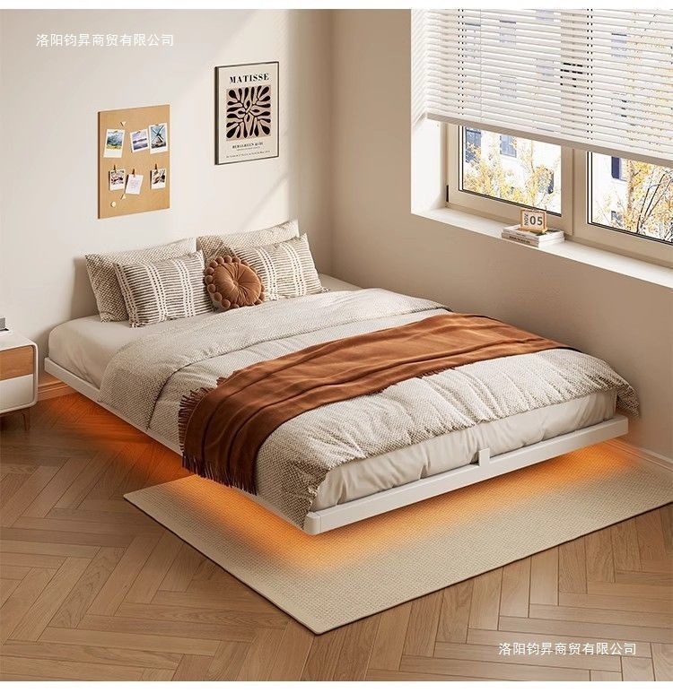철제 침대, 공중에 뜨는 침대, 현대적이고 단순한 가정용 더블 침대, 철제 침대, 두껍고 강화된 탄소강 다다미 철제 프레임 침대스토어 가기